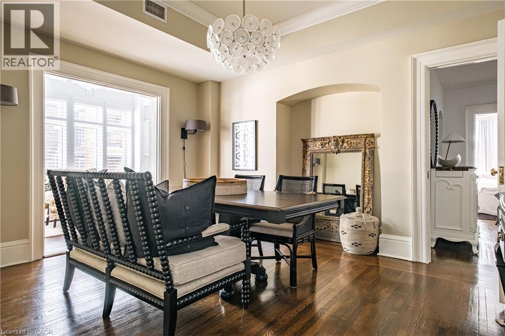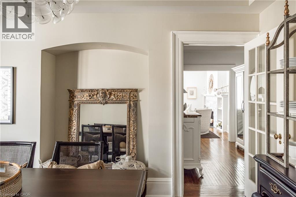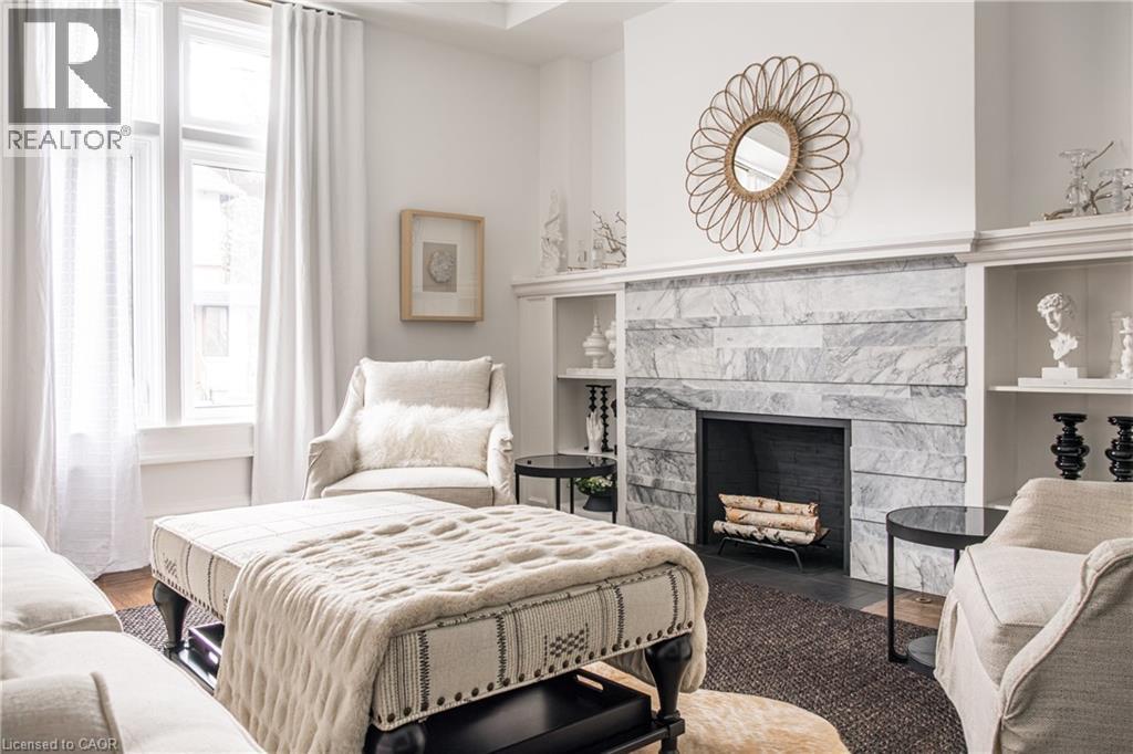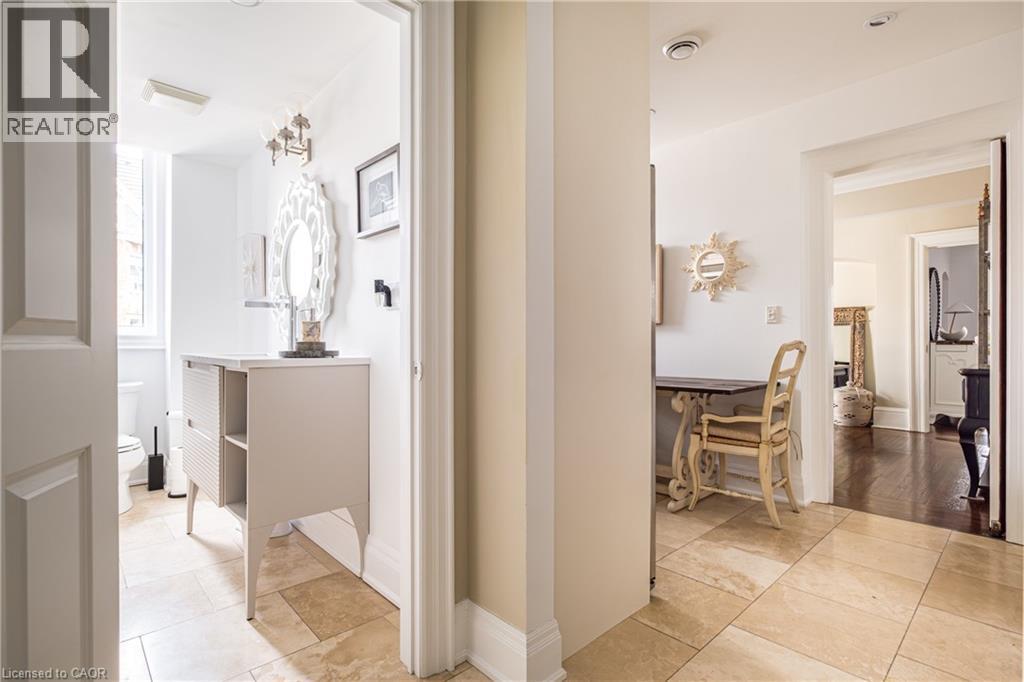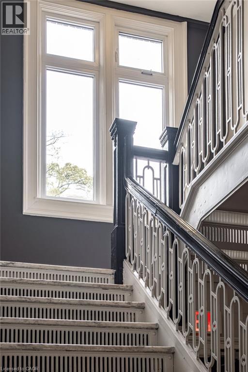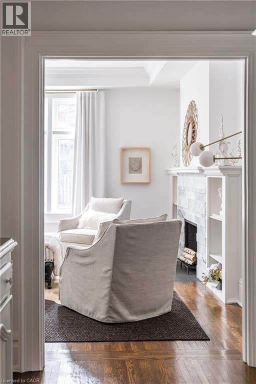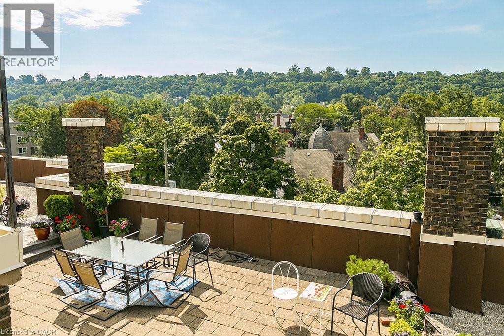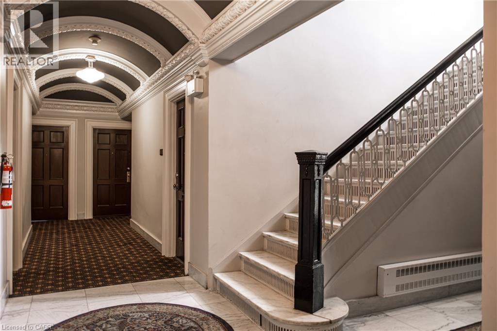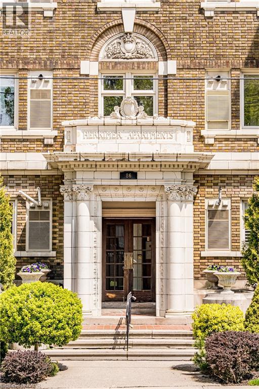 $1,040.06 MonthlyWelcome to the historic “Herkimer Apartments”, one of Hamilton’s most prestigious condo conversions, located in the heart of the Durand neighbourhood. Designed by renowned architect William Palmer Witton and built in 1915, this landmark was once the pinnacle of luxury living, featuring marble staircases, ornate moldings, steam heating, and Canada’s first elevator and central vac system. It remains Ontario’s last standing building with a terracotta portico. Today, Herkimer Apartments continues to captivate with 23 exquisite condo’s including this stunning 1,728 sq ft unit, which retains its original floorplan and offers two separate entrances. Inside, you'll find gleaming dark hardwood floors, soaring high ceilings, 10” baseboards, crown molding, and elegant finishes throughout. The original servant’s door, steps into a discreet back entry with storage, a stunning 2-piece bath, laundry, and utility room. The bright, spacious kitchen features granite countertops, stainless steel appliances, butler pantry station, and original swinging door leading to the formal dining room, ideal for hosting dinner parties and family gatherings. An adjacent sunroom features built-in bookcases and is the perfect space for a den or home office. The formal front entrance invites you into a spacious hallway and elegant living room featuring a fireplace with stunning Carrara marble surround and built-in bookshelves and the perfect place to relax or entertain. The bedroom wing boasts a newly renovated 4-piece bath with marble floors and two spacious bedrooms, including the primary with walk-in closet. Residents have access to a rooftop terrace with panoramic city views to enjoy. Updates incl furnace (2020) washer & dryer (2019) both bathrooms (2019). Just steps from St. Joseph’s Hospital, Locke Street S, parks, trails, GO Station and Hwy 403 access makes this is an extraordinary opportunity for the sophisticated buyer seeking a home with timeless elegance and historical significance. RSA. (id:51158)