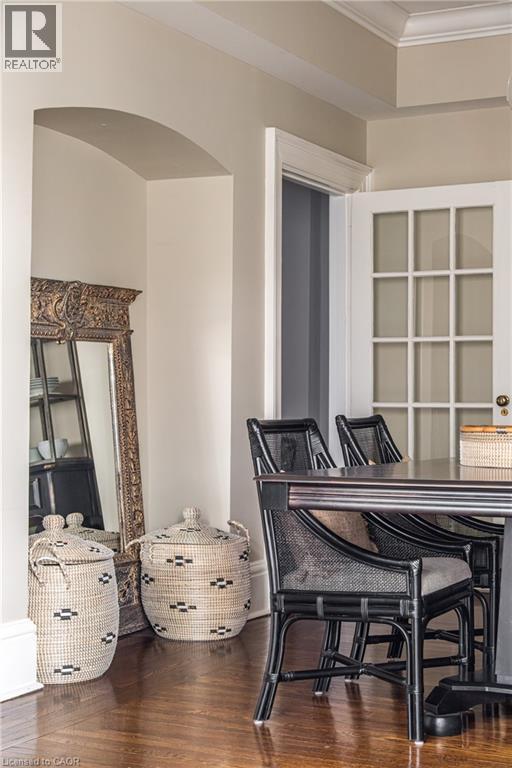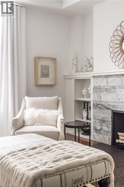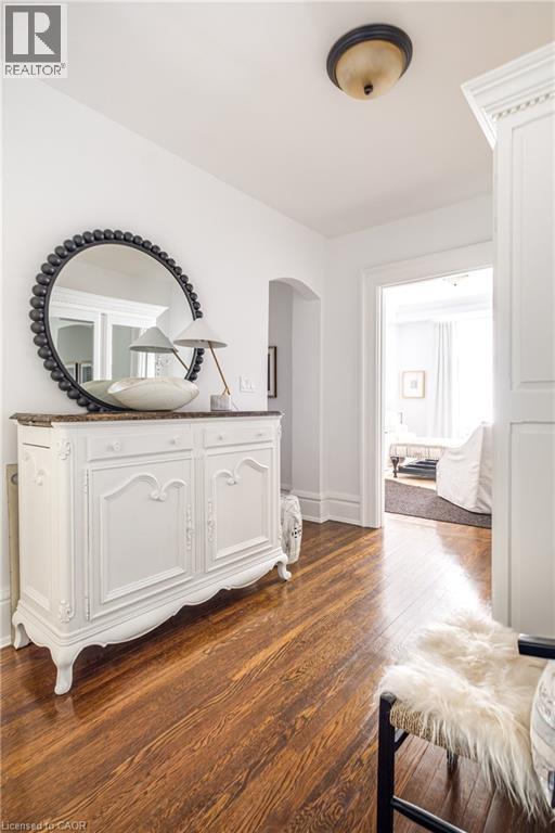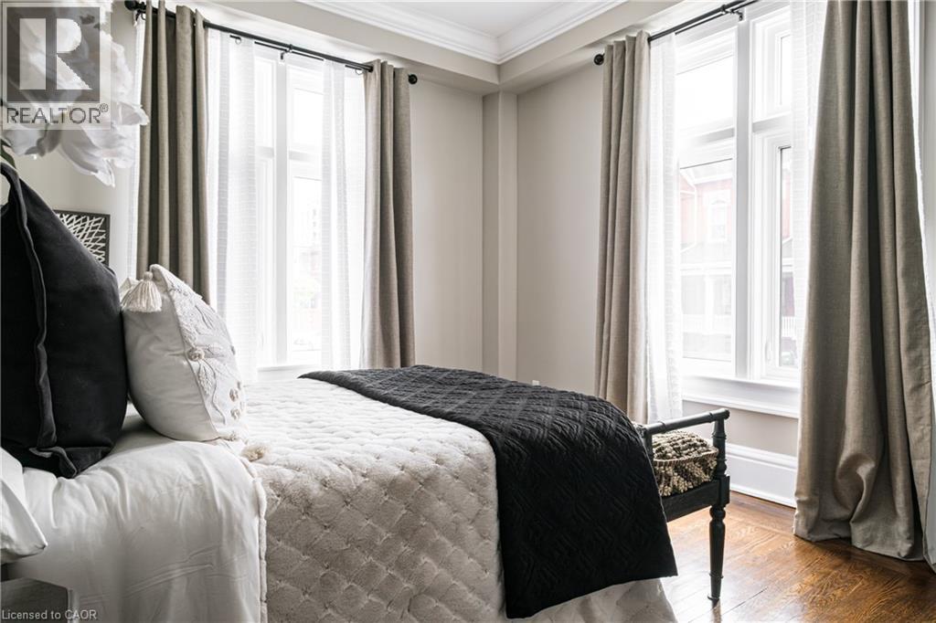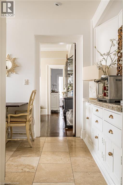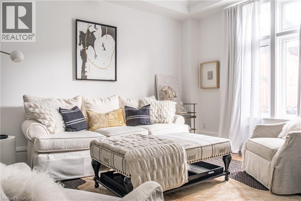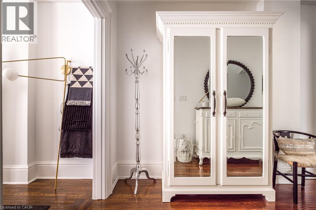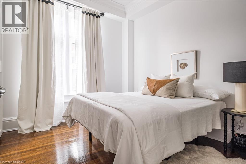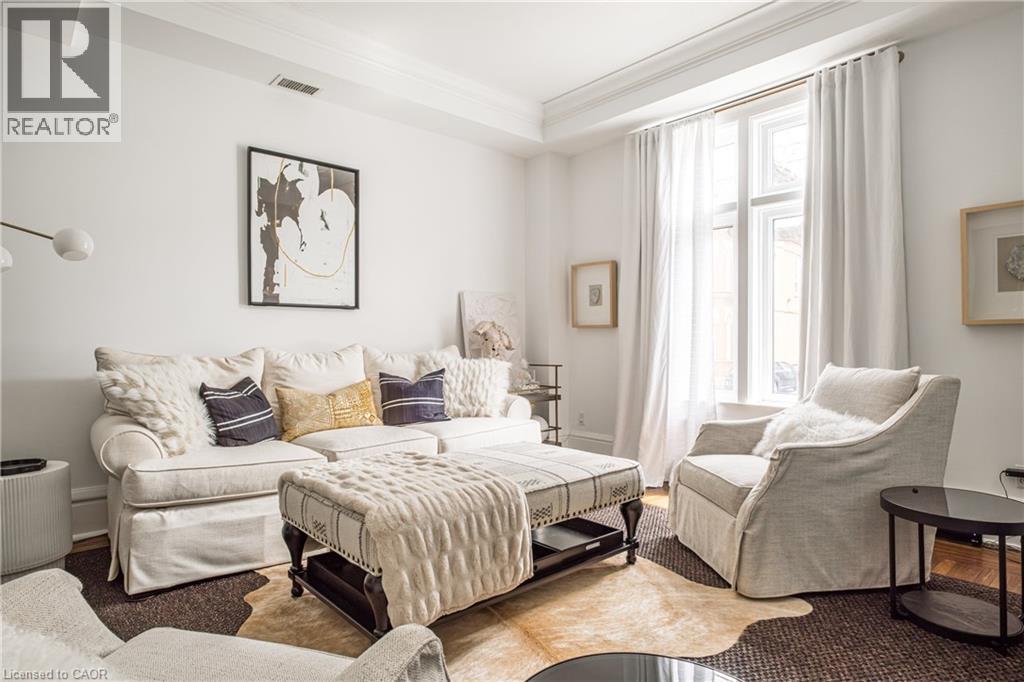 $1,040.06 MonthlyWelcome to the historic “Herkimer Apartments”, one of Hamilton’s most prestigious condo conversions, located in the heart of the Durand neighbourhood. Designed by renowned architect William Palmer Witton and built in 1915, this landmark was once the pinnacle of luxury living, featuring marble staircases, ornate moldings, steam heating, and Canada’s first elevator and central vac system. It remains Ontario’s last standing building with a terracotta portico. Today, Herkimer Apartments continues to captivate with 23 exquisite condo’s including this stunning 1,728 sq ft unit, which retains its original floorplan and offers two separate entrances. Inside, you'll find gleaming dark hardwood floors, soaring high ceilings, 10” baseboards, crown molding, and elegant finishes throughout. The original servant’s door, steps into a discreet back entry with storage, a stunning 2-piece bath, laundry, and utility room. The bright, spacious kitchen features granite countertops, stainless steel appliances, butler pantry station, and original swinging door leading to the formal dining room, ideal for hosting dinner parties and family gatherings. An adjacent sunroom features built-in bookcases and is the perfect space for a den or home office. The formal front entrance invites you into a spacious hallway and elegant living room featuring a fireplace with stunning Carrara marble surround and built-in bookshelves and the perfect place to relax or entertain. The bedroom wing boasts a newly renovated 4-piece bath with marble floors and two spacious bedrooms, including the primary with walk-in closet. Residents have access to a rooftop terrace with panoramic city views to enjoy. Updates incl furnace (2020) washer & dryer (2019) both bathrooms (2019). Just steps from St. Joseph’s Hospital, Locke Street S, parks, trails, GO Station and Hwy 403 access makes this is an extraordinary opportunity for the sophisticated buyer seeking a home with timeless elegance and historical significance. RSA. (id:51158)