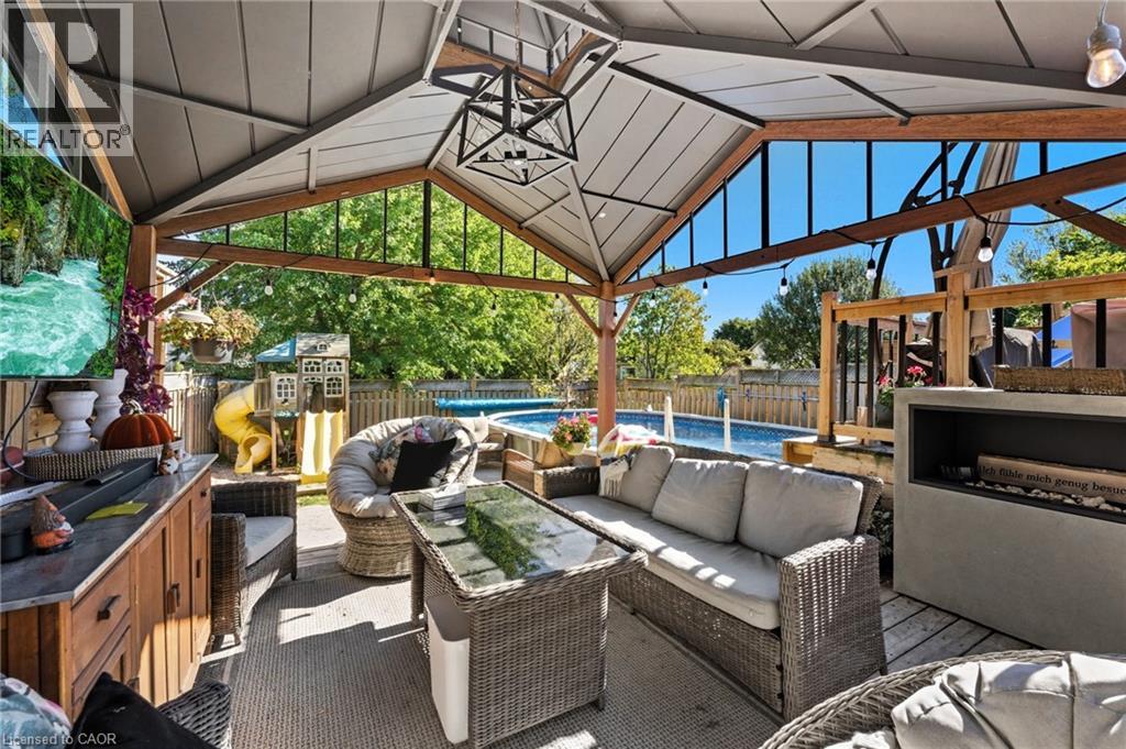 Welcome to 86 Sugar Maple, a bright and inviting raised bungalow featuring a dreamy backyard oasis with a pool! Step into an open-concept living space, bathed in natural light, perfect for family enjoyment. The spacious kitchen will impress, equipped with stainless steel appliances and ample room for family dining. The main level offers a full bathroom and three bedrooms, including a primary bedroom with two spacious closets. The finished lower level provides even more great living space, with a large and wonderful rec room, a second bathroom and an additional area perfect for a home office. Enjoy extra features such as a laundry room, abundant storage and a two-car garage, ideal for keeping cars snow-free or for a potential workshop or home gym. The star of this property is undoubtedly the backyard oasis, your perfect daily family retreat and vacation without having to leave home! Slide open the patio doors from the kitchen to a large deck, ideal for relaxing or entertaining on summer evenings and the perfect spot for grilling! Friends and family will love the heated swimming pool with a waterslide, a large lower deck with an oversized gazebo perfect for entertaining and watching sports and a children’s play set to complete the fun. With three-car driveway parking, this property is ready to accommodate all your needs. Located close to excellent schools, parks, and trails, as well as the shops and delicious restaurants of the vibrant Boardwalk plaza, this home is truly special. Book your private showing today! (id:51158)