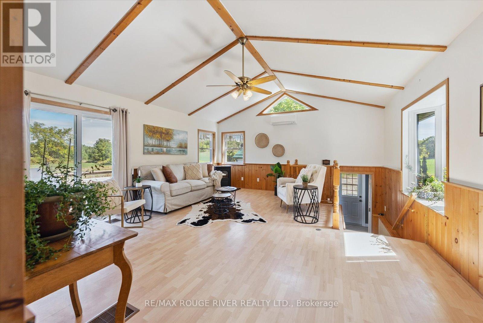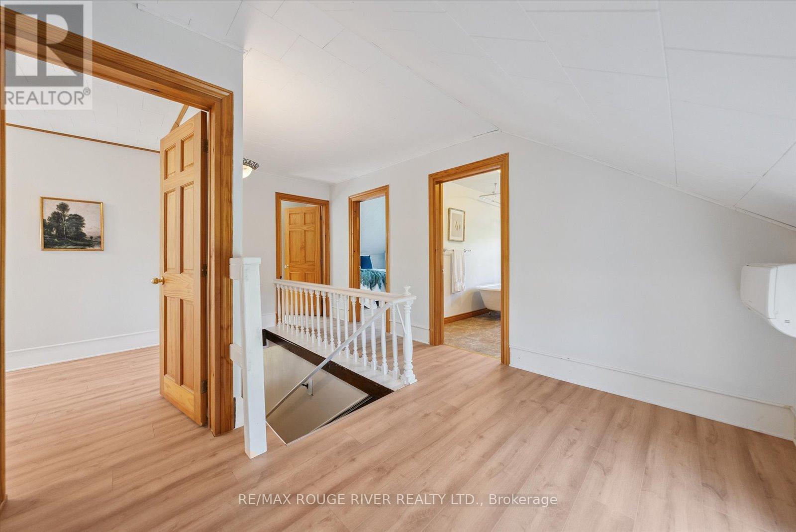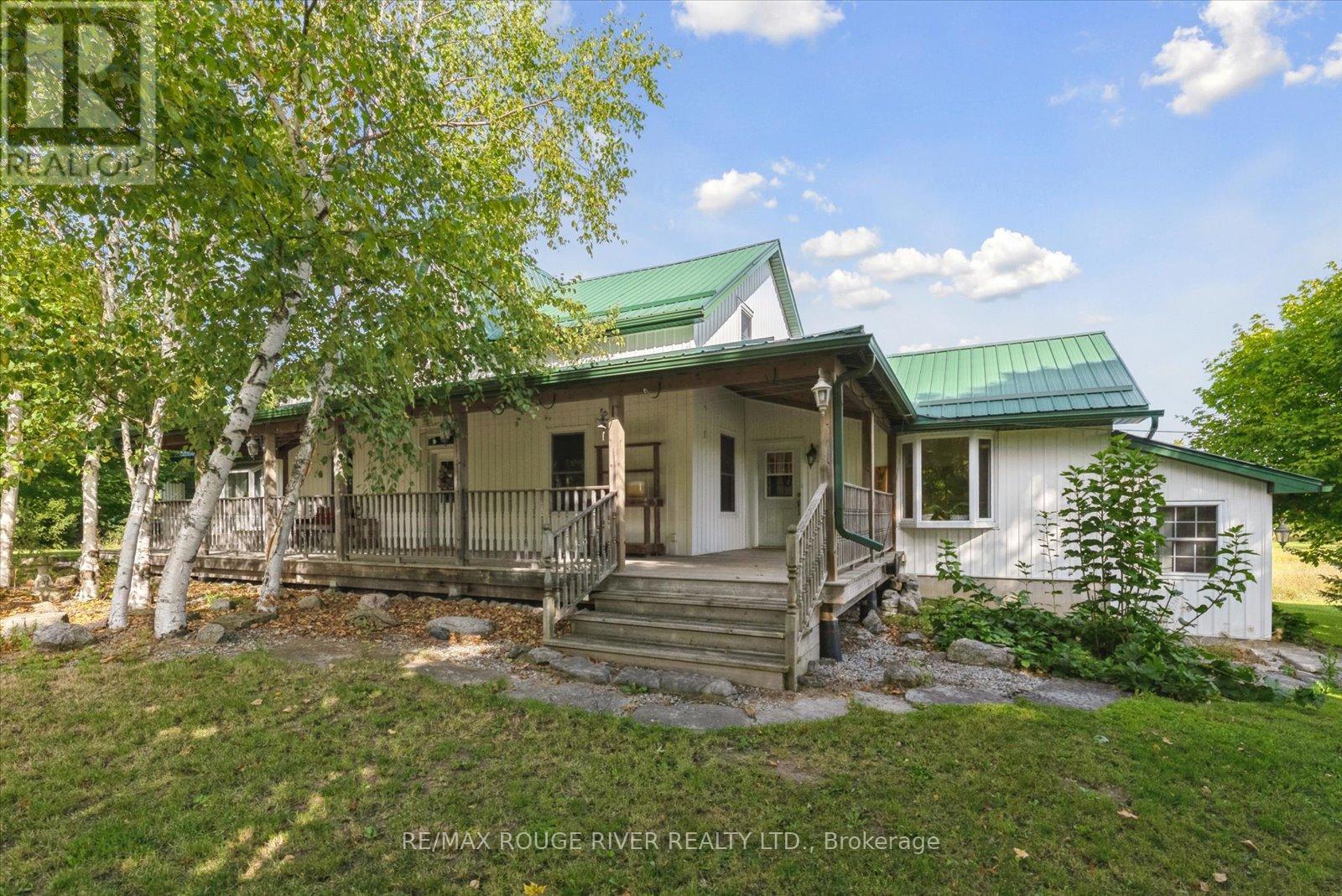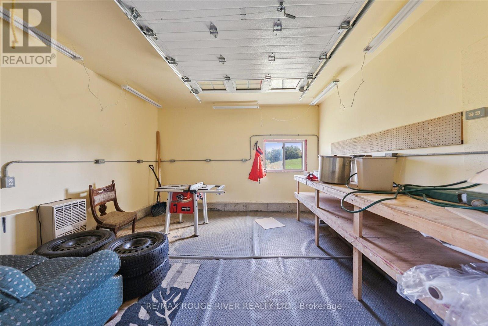 Set on 100 acres with approx. 60 acres of workable land, this century farmhouse offers space, privacy, two frontages, and severance potential. Whether you're looking to sell a portion of the property, create a multi-family retreat, or enjoy the full acreage yourself, the potential here is hard to match. The 5-bedroom, 2.5-bath home has been thoughtfully updated throughout, blending modern conveniences with its original character. The kitchen features modern cabinetry, granite countertops, and two deep farm sinks, while the formal dining room showcases its original hardwood floors. A pellet stove in the living area adds comfort as you take in the countryside views. Upstairs, you'll find spacious bedrooms and walk-in closets. Multiple walkouts lead to decks and a covered porch that connects the home to its surroundings. The property features two road frontages, offering easy access and attractive severance potential. The 38 x 34 ft 3-door garage with heated workshop is ideal for projects and storage, and the 31 x 23 ft barn adds even more flexibility. With several upgrades throughout, a mix of farmland and forest, and development possibilities, this property is a rare opportunity in a beautiful rural setting. (id:51158)