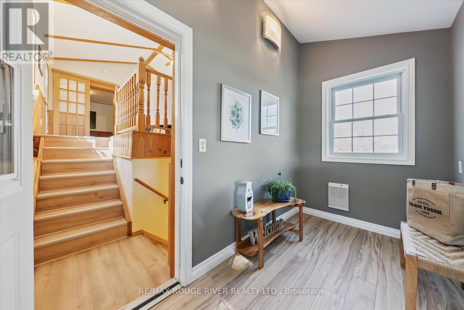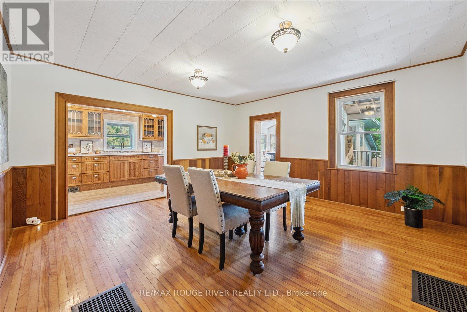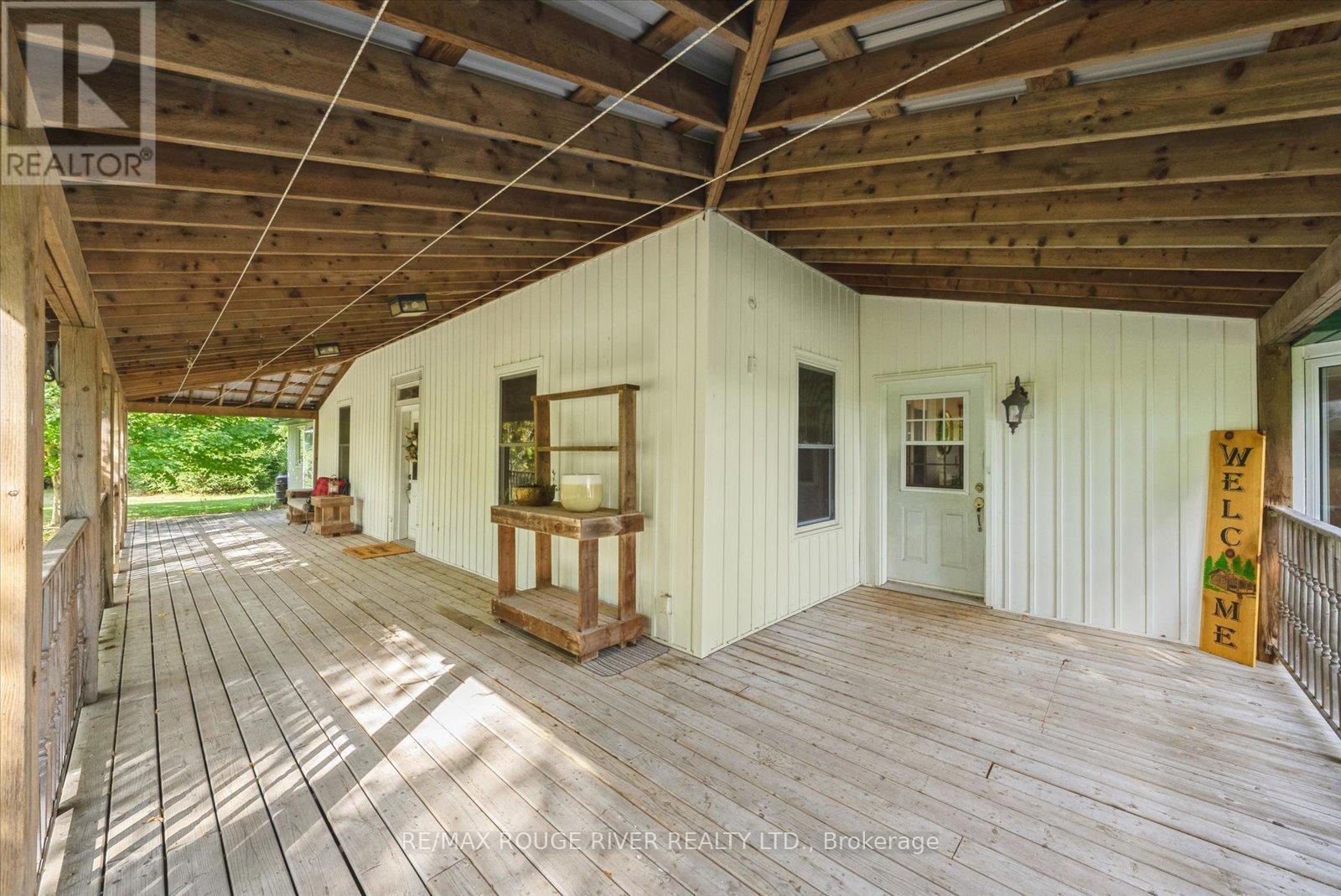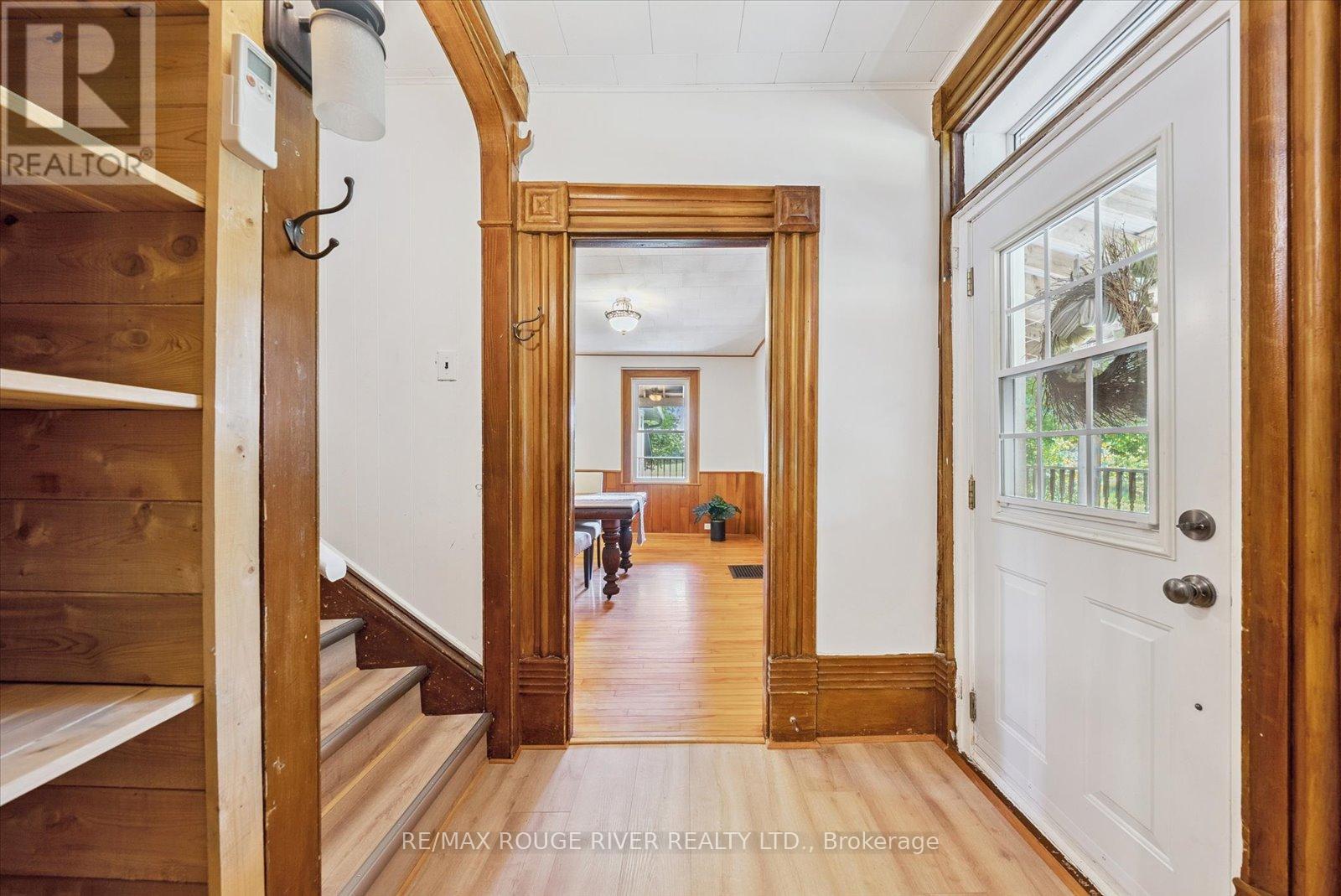 Set on 100 acres with approx. 60 acres of workable land, this century farmhouse offers space, privacy, two frontages, and severance potential. Whether you're looking to sell a portion of the property, create a multi-family retreat, or enjoy the full acreage yourself, the potential here is hard to match. The 5-bedroom, 2.5-bath home has been thoughtfully updated throughout, blending modern conveniences with its original character. The kitchen features modern cabinetry, granite countertops, and two deep farm sinks, while the formal dining room showcases its original hardwood floors. A pellet stove in the living area adds comfort as you take in the countryside views. Upstairs, you'll find spacious bedrooms and walk-in closets. Multiple walkouts lead to decks and a covered porch that connects the home to its surroundings. The property features two road frontages, offering easy access and attractive severance potential. The 38 x 34 ft 3-door garage with heated workshop is ideal for projects and storage, and the 31 x 23 ft barn adds even more flexibility. With several upgrades throughout, a mix of farmland and forest, and development possibilities, this property is a rare opportunity in a beautiful rural setting. (id:51158)