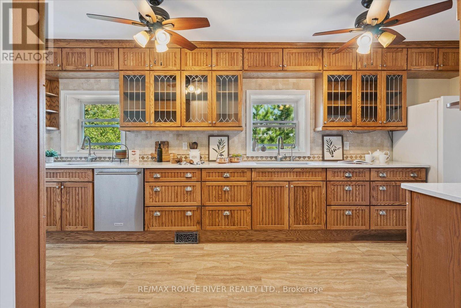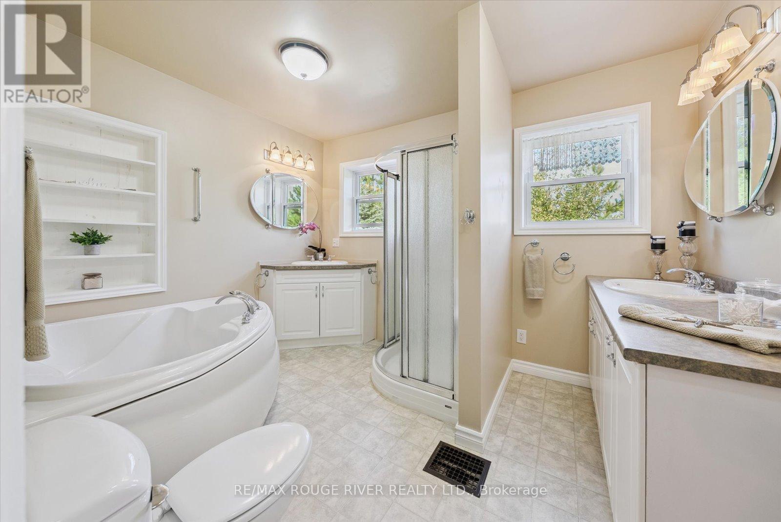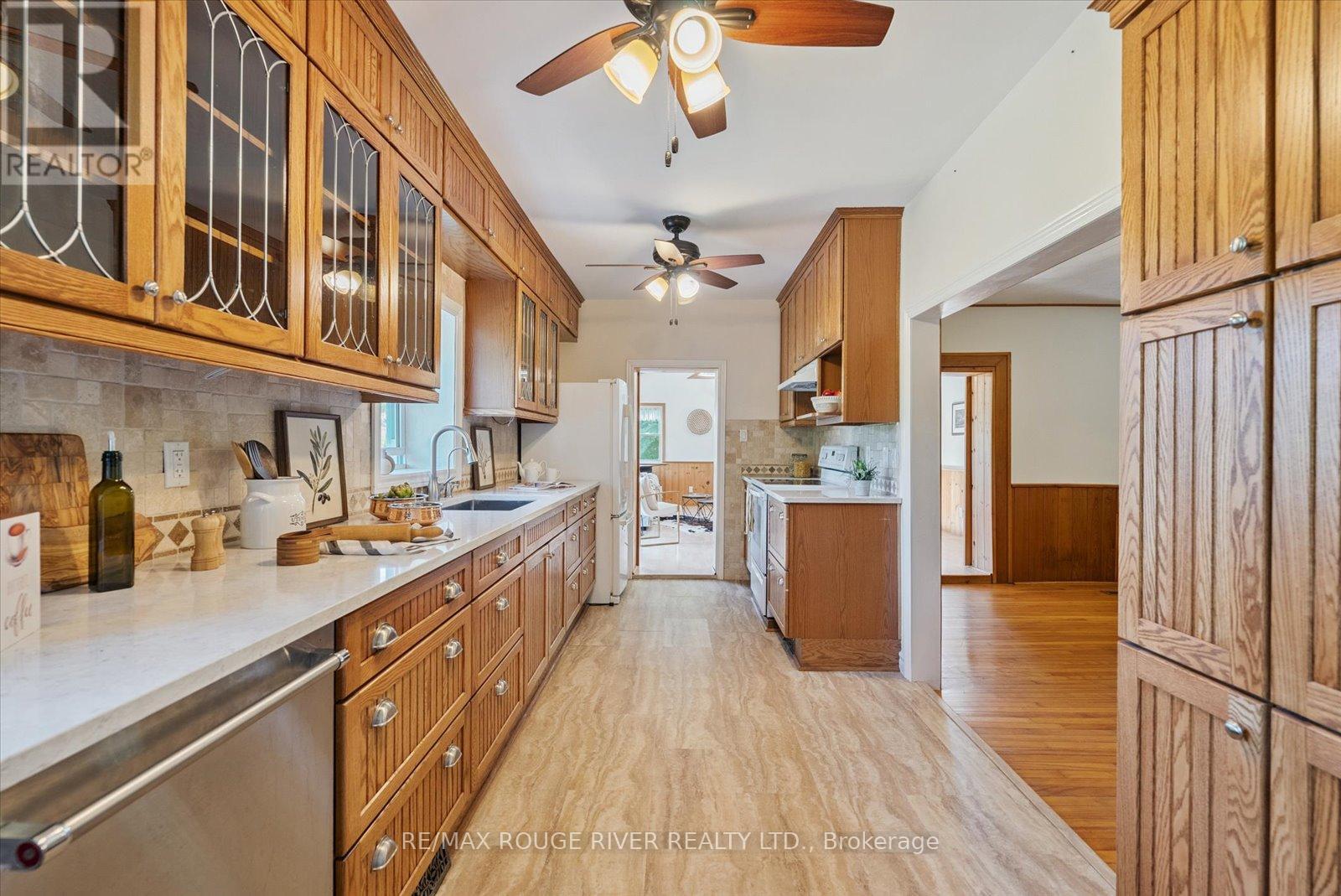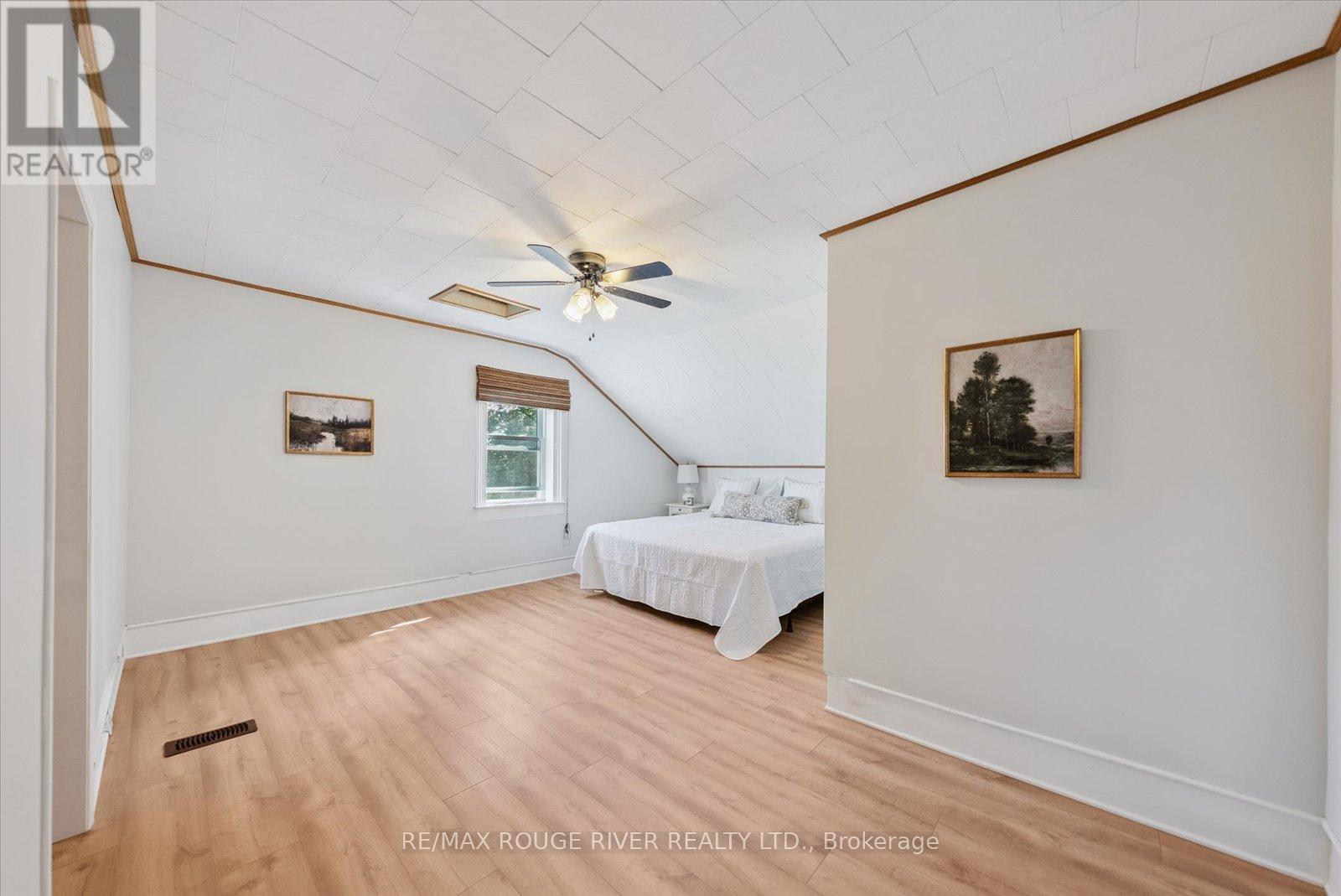 Set on 100 acres with approx. 60 acres of workable land, this century farmhouse offers space, privacy, two frontages, and severance potential. Whether you're looking to sell a portion of the property, create a multi-family retreat, or enjoy the full acreage yourself, the potential here is hard to match. The 5-bedroom, 2.5-bath home has been thoughtfully updated throughout, blending modern conveniences with its original character. The kitchen features modern cabinetry, granite countertops, and two deep farm sinks, while the formal dining room showcases its original hardwood floors. A pellet stove in the living area adds comfort as you take in the countryside views. Upstairs, you'll find spacious bedrooms and walk-in closets. Multiple walkouts lead to decks and a covered porch that connects the home to its surroundings. The property features two road frontages, offering easy access and attractive severance potential. The 38 x 34 ft 3-door garage with heated workshop is ideal for projects and storage, and the 31 x 23 ft barn adds even more flexibility. With several upgrades throughout, a mix of farmland and forest, and development possibilities, this property is a rare opportunity in a beautiful rural setting. (id:51158)