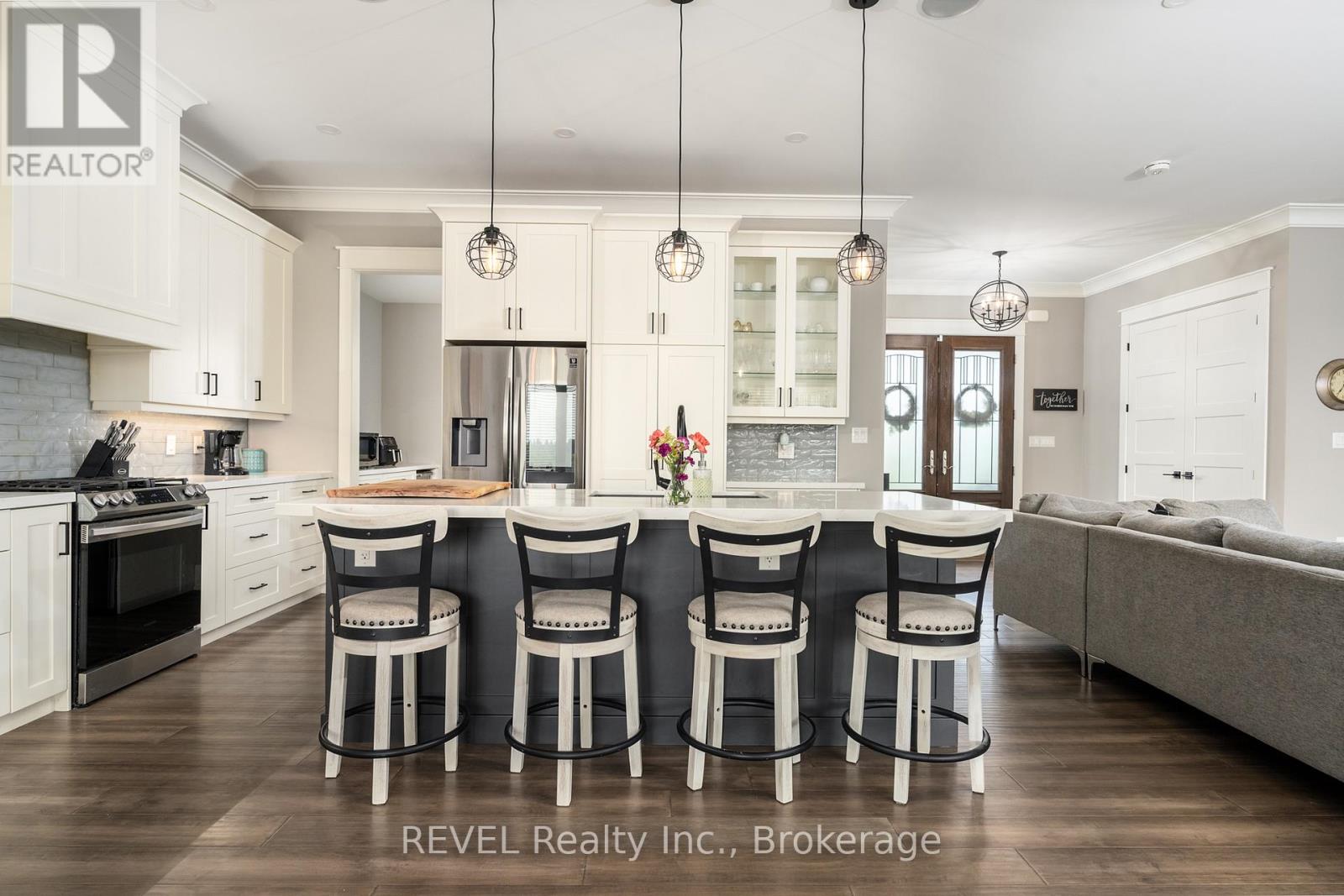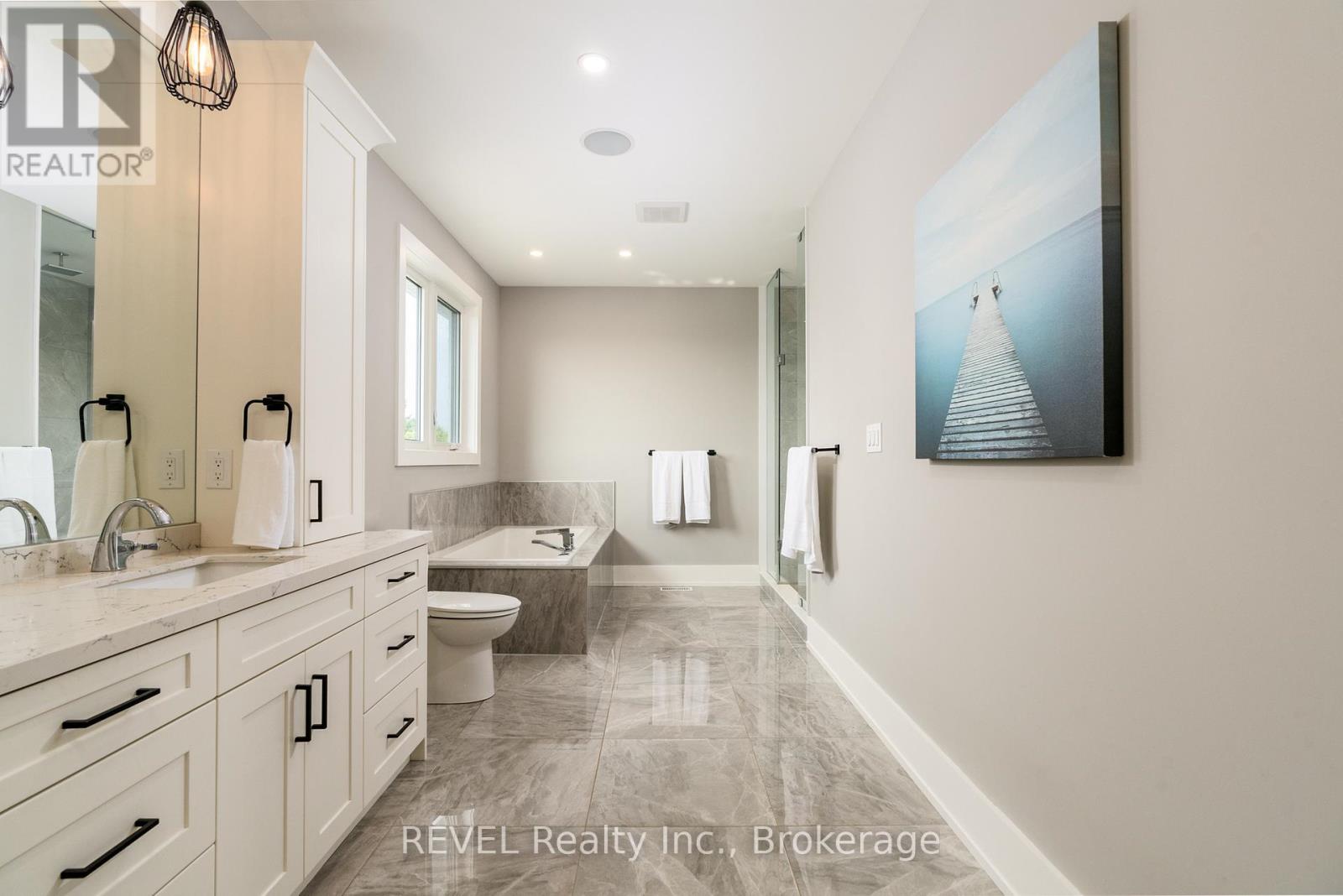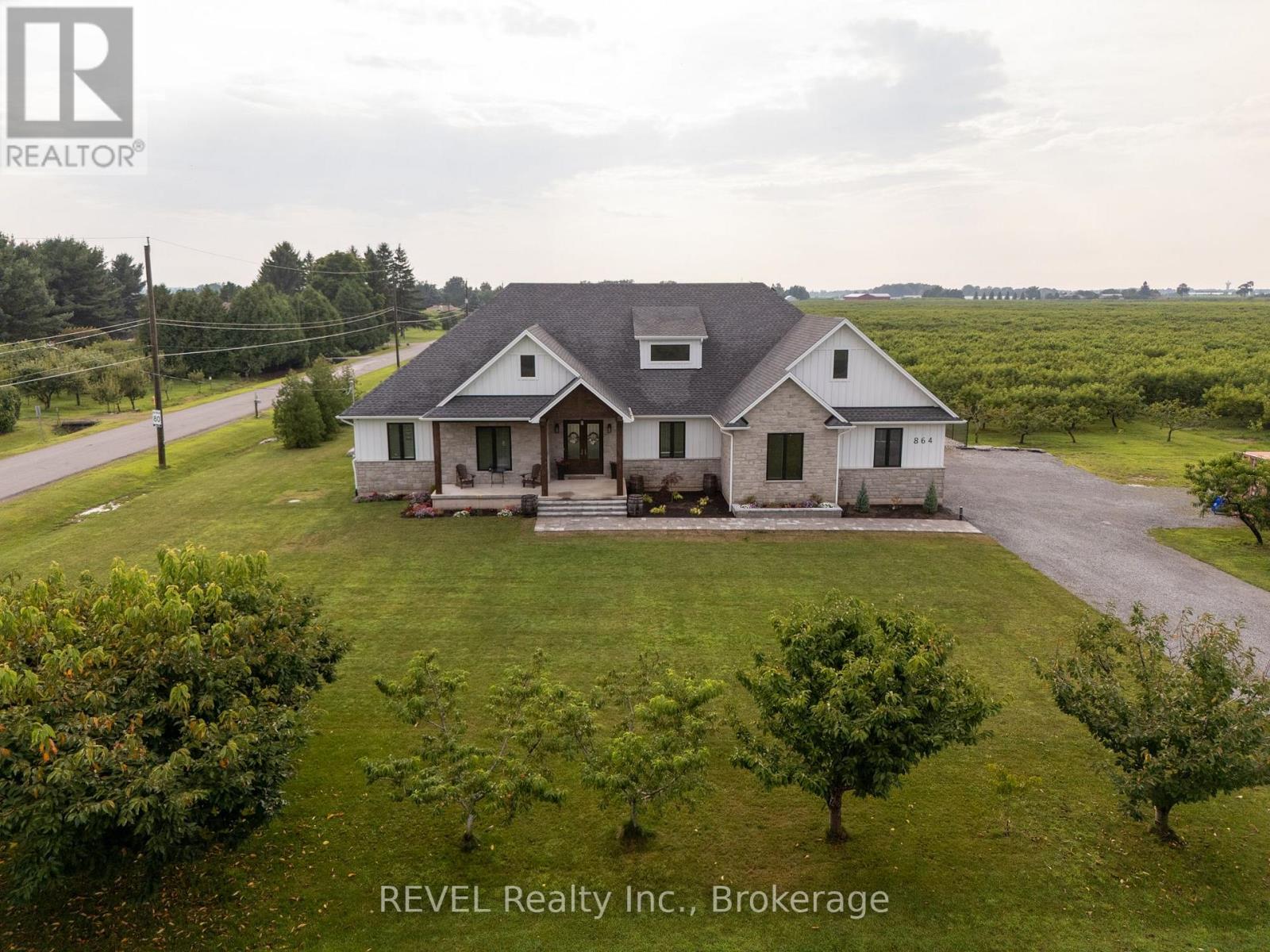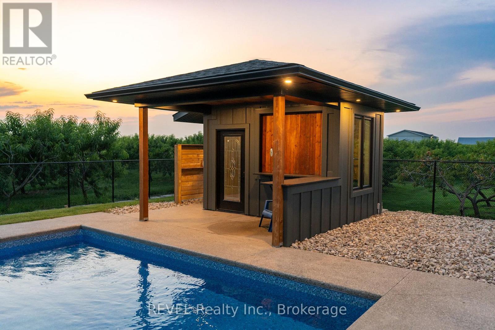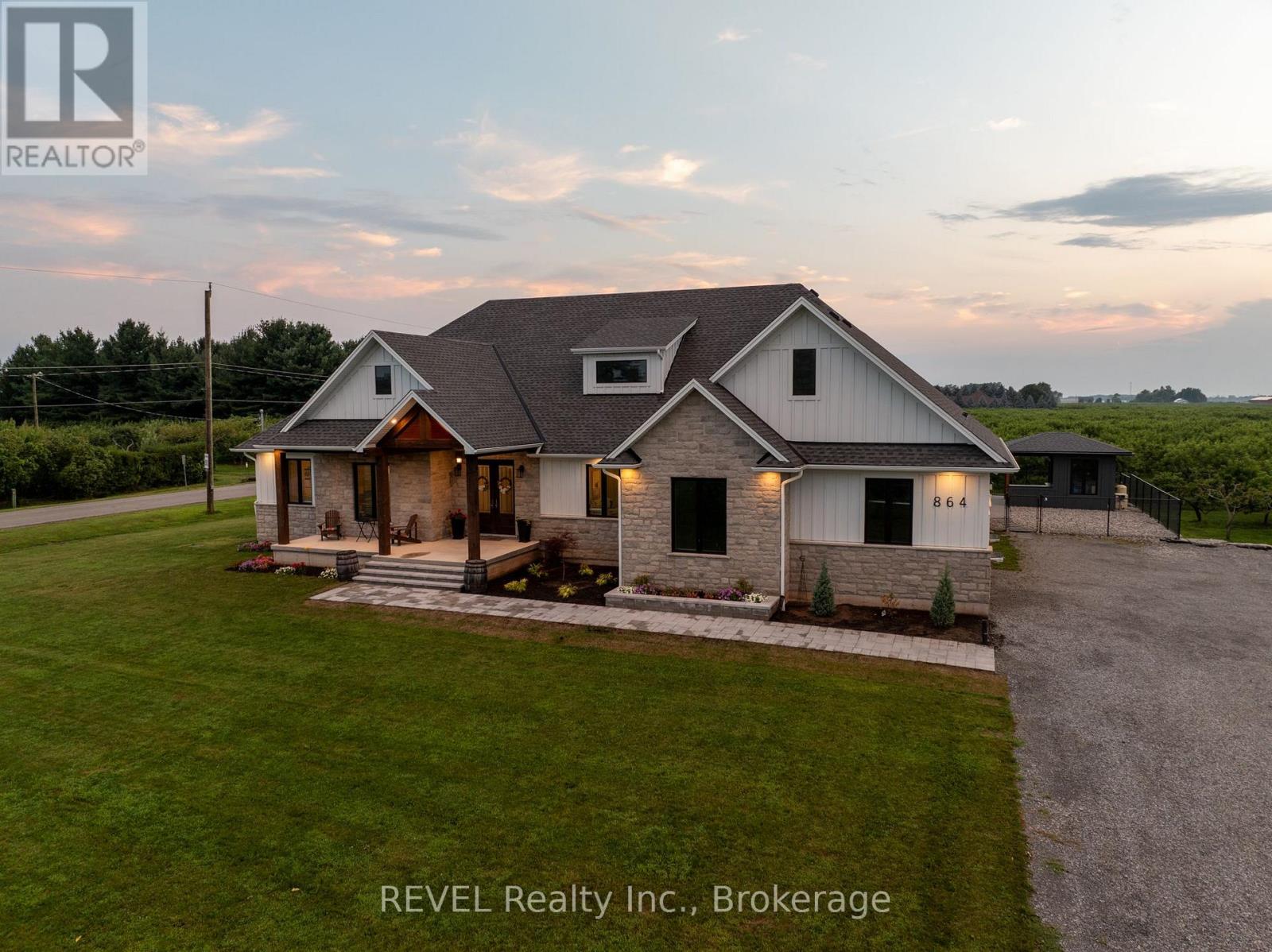 Welcome to this stunning 2,945 sq. ft. bungalow, expertly crafted with a blend of stone and Hardie board exterior. From the moment you step inside, you'll be greeted by the expansive open concept living area, featuring soaring 10-ft ceilings and no carpets. The heart of the home is the gourmet kitchen, boasting Quartz countertops throughout, a large island with bar stool seating, stainless steel appliances, abundant counter and cupboard space, and a spacious pantry. The main floor master bedroom wing is a true retreat, complete with a coffered ceiling, a generous walk-in closet, and a luxurious 5-piece ensuite. Enjoy private access to the rear yard from your master bedroom. The main floor also offers a versatile office (or potential fourth bedroom), two additional bedrooms with walk-in closetsone with a private 4-piece ensuite and the other with ensuite privilegeand a 2-piece powder room off the foyer. The mudroom off the garage features a laundry area and barn-style roller door. The fully finished basement includes a large rec room with a kitchenette, an additional bedroom, and a 3-piece bathroom with a spacious glass shower. With 9-ft ceilings and a heated slab, the basement is as comfortable as it is functional. Outdoor living is equally impressive, with a covered rear patio complete with TV hookup, BBQ line, and pull-down privacy screens. Relax in the inground heated saltwater pool, unwind in the hot tub, or enjoy the fully fenced, landscaped yard with a stone wall surround. The property, just under an acre, is surrounded by picturesque vineyards and fruit farms. Additional features include an insulated 2-car garage with hot water hookup, city water, an interior and exterior wired-in speaker system, a security system, and central vac. This exquisite home offers the perfect blend of luxury, comfort, and tranquility. (id:51158)