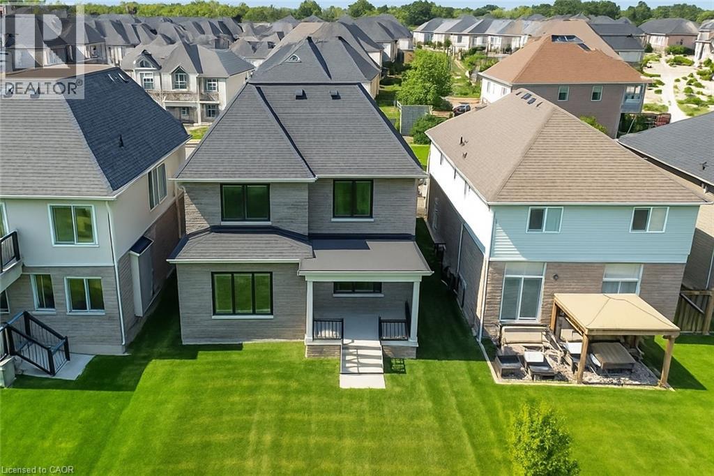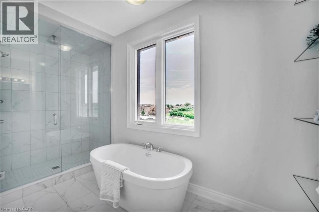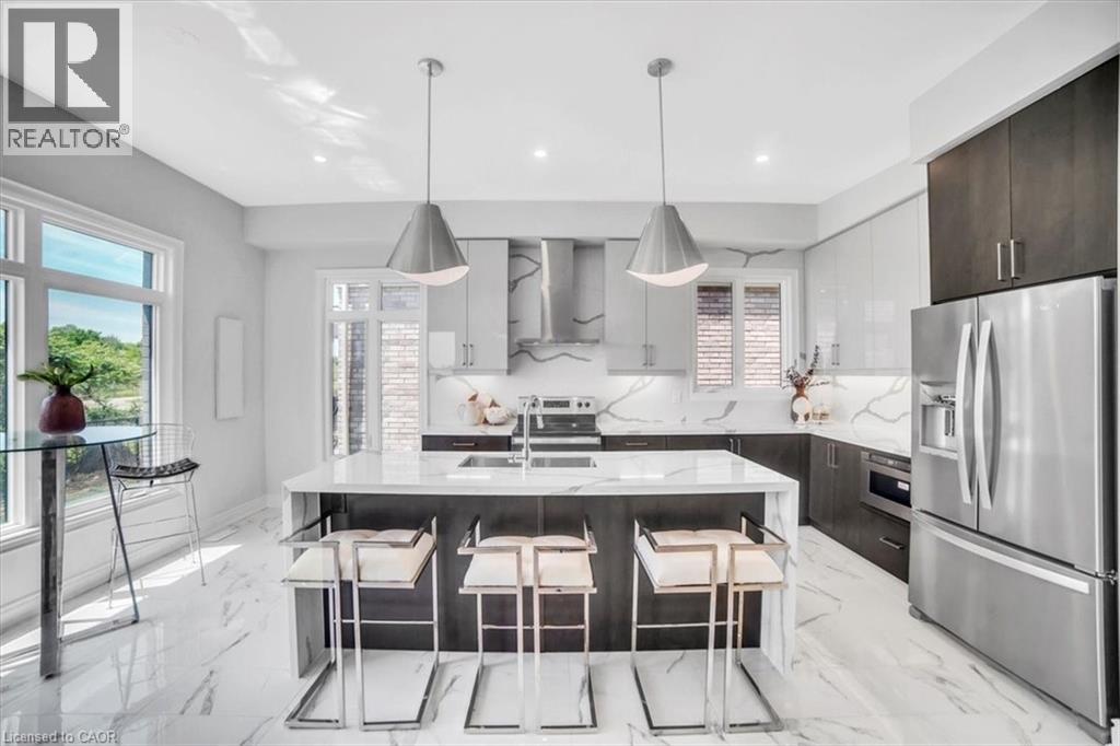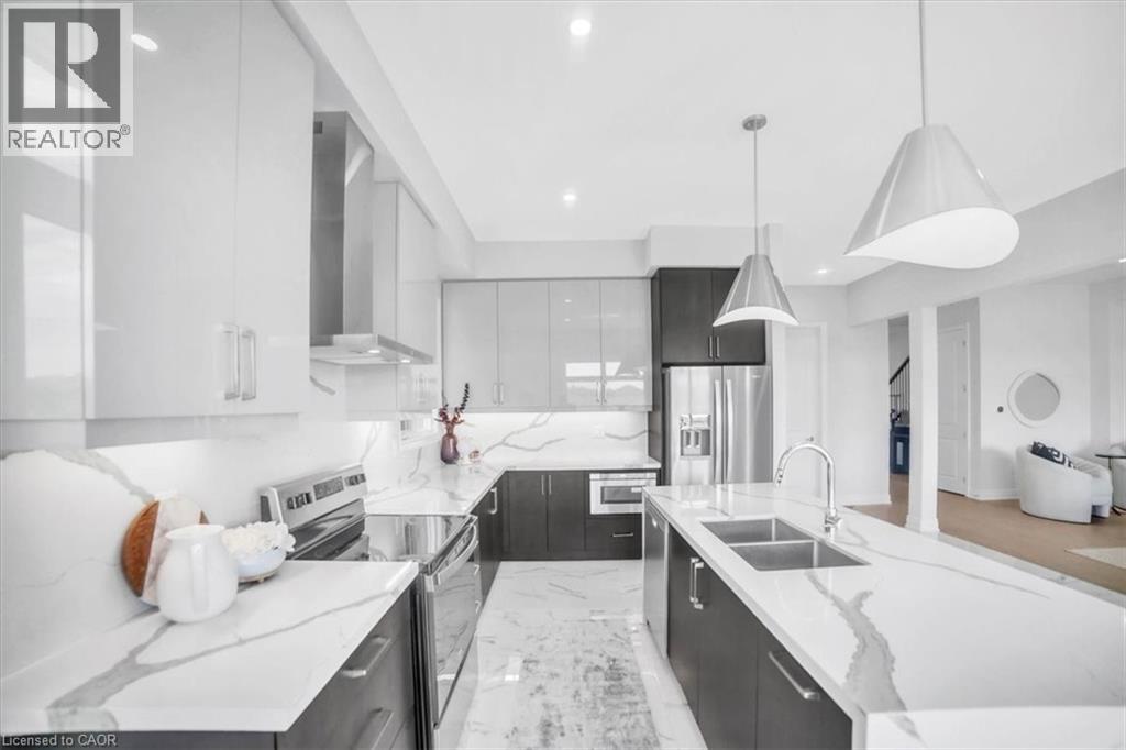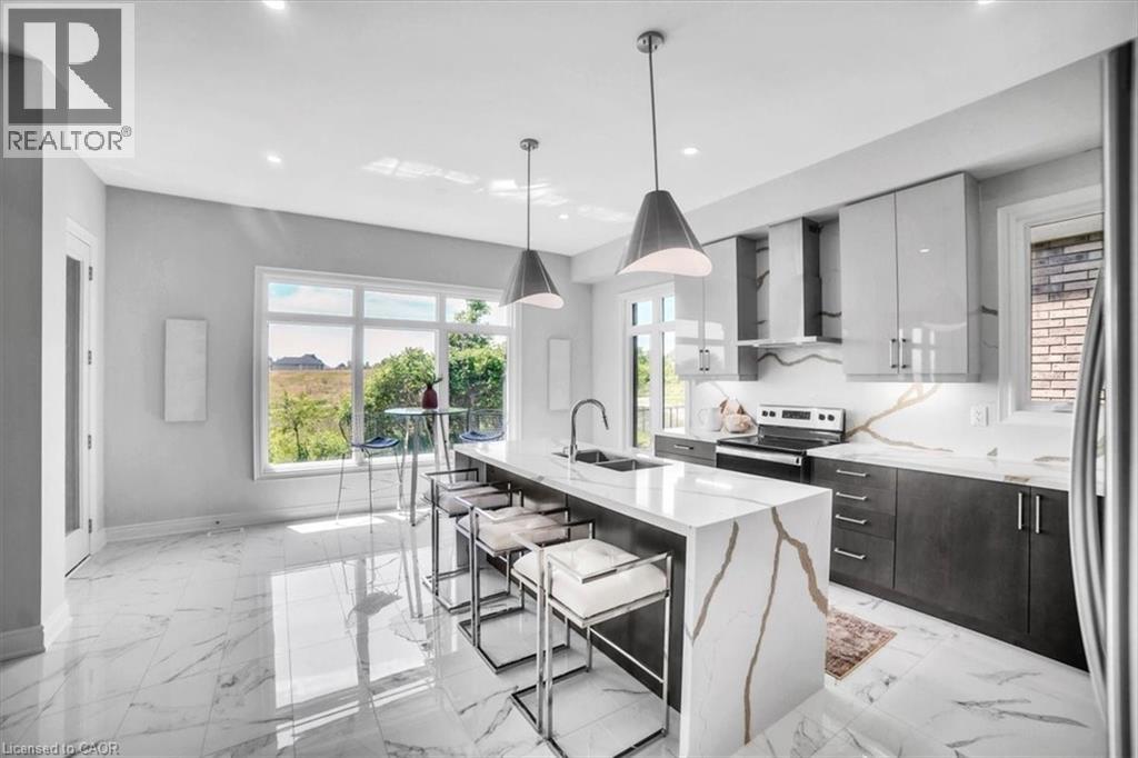 Introducing one of the most distinguished homes in the sought-after Stonegate Park community—welcome to 87 Aquasanta Crescent. Set on a premium lot backing directly onto a naturalized park and open space, this Capri Grande luxury model is a rare opportunity to own one of Hamilton’s most scenic west mountain homes, where tranquil surroundings and breathtaking sunsets become part of your daily experience. With 2,505 square feet of impeccably designed space, this fully detached home features a 10-foot main floor, smooth ceilings, and a seamless blend of premium porcelain tile and 6-inch oak hardwood flooring. The open-concept layout is anchored by a spacious great room with a linear fireplace and custom lighting, flowing effortlessly into a chef’s kitchen outfitted with two-tone urban cabinetry, taller uppers, pots & pans drawers, deep fridge cabinet, chimney-style hood, stainless steel appliances, and an extended island with integrated sink, recycling drawer, and built-in microwave drawer. A walk-in pantry and main floor laundry complete the convenience. Expansive windows bathe the interior in natural light and draw you toward the covered loggia, perfect for quiet coffee mornings or sunset wine evenings overlooking the natural landscape behind. Upstairs, the oak staircase leads to four spacious bedrooms. Two share a stylish Jack & Jill ensuite, one enjoys its own private ensuite, and the primary suite spans the rear of the home with serene park views, a spa-like ensuite with freestanding tub, glass shower, and private water closet. This home is move-in ready in as little as 30 days and located minutes from amenities, top schools, and major transit routes. Luxury. Nature. Community. This is 87 Aquasanta. (id:51158)