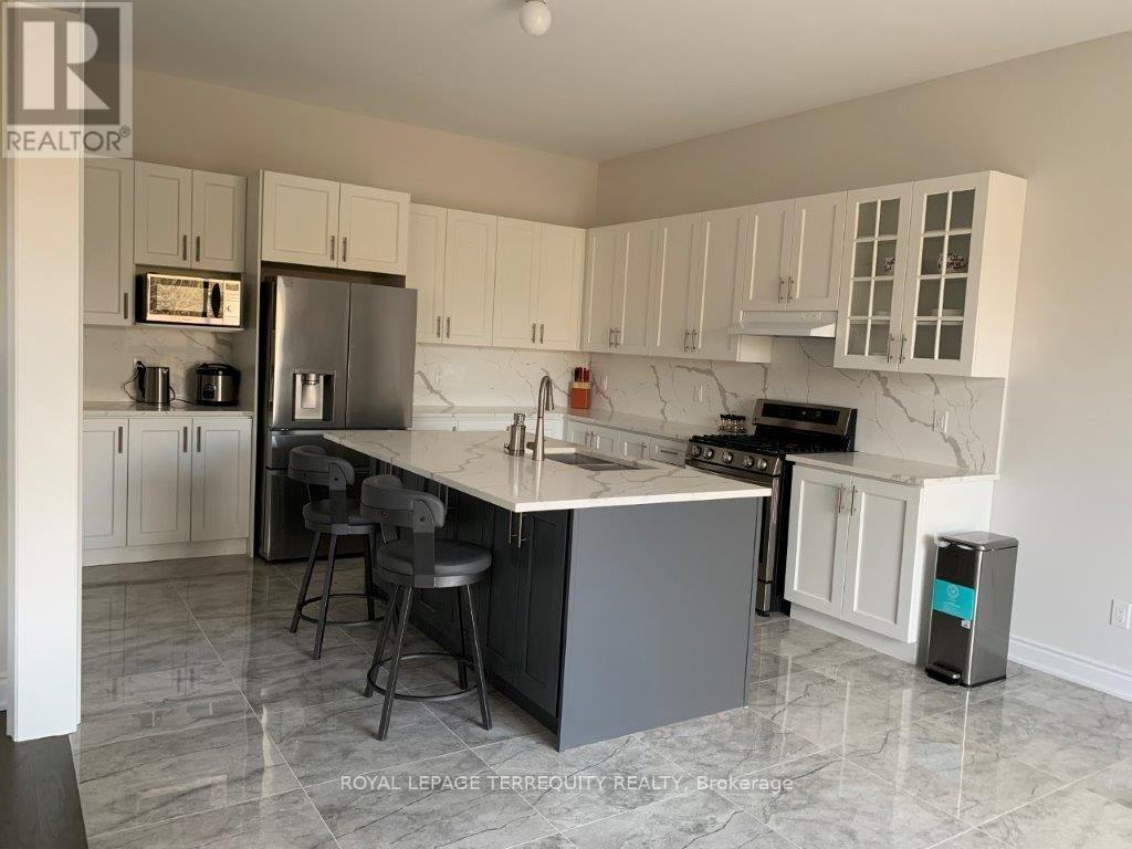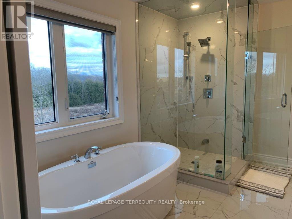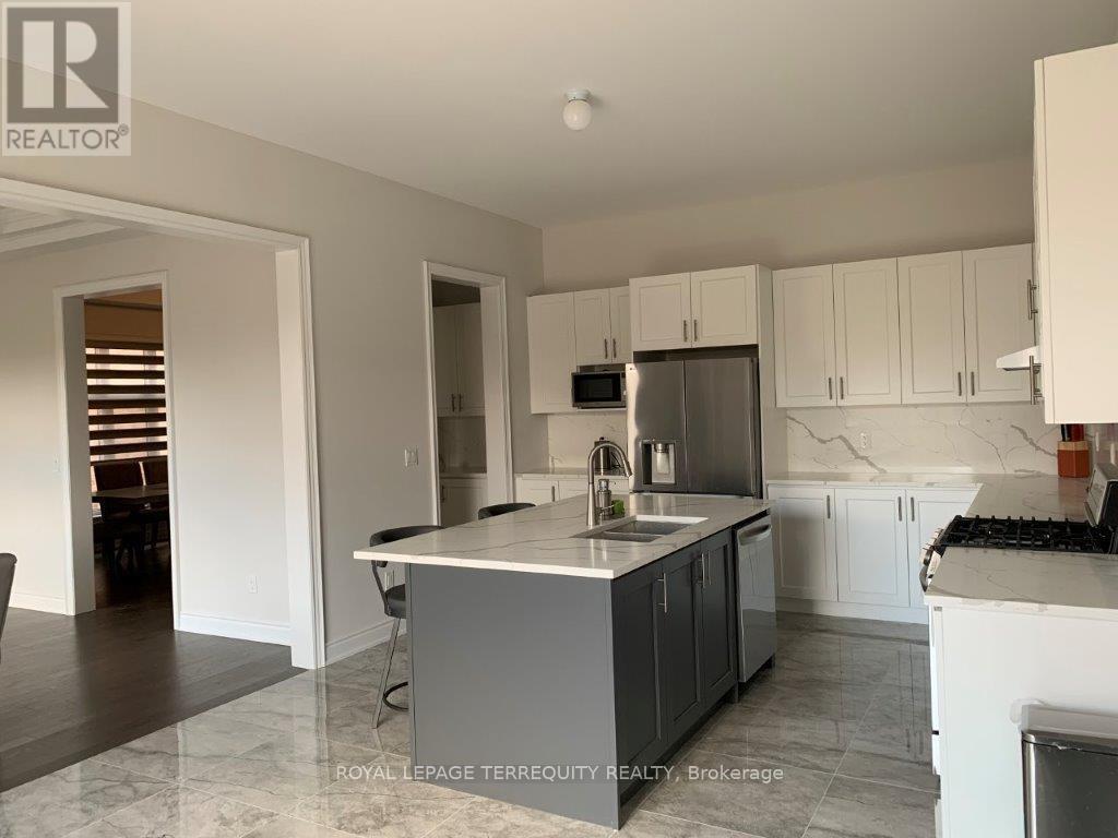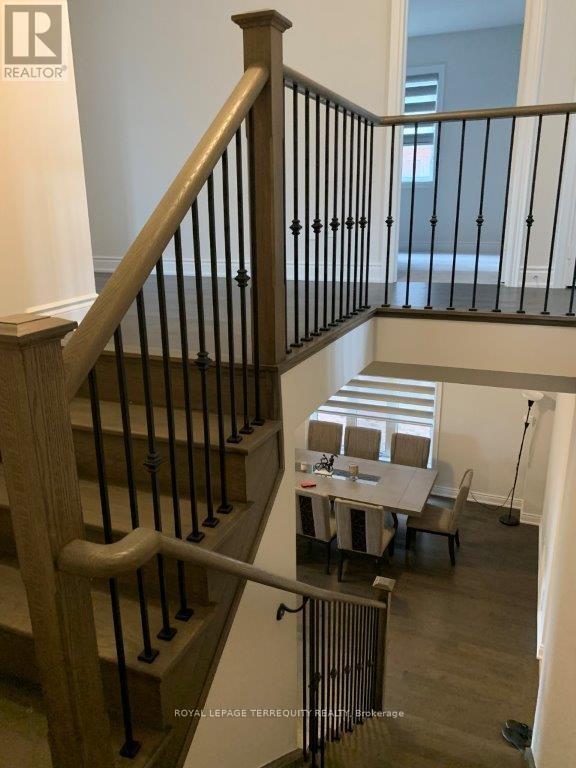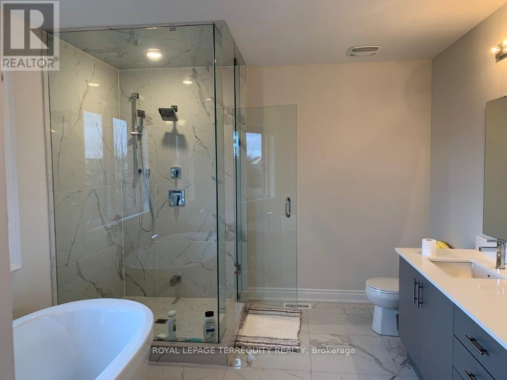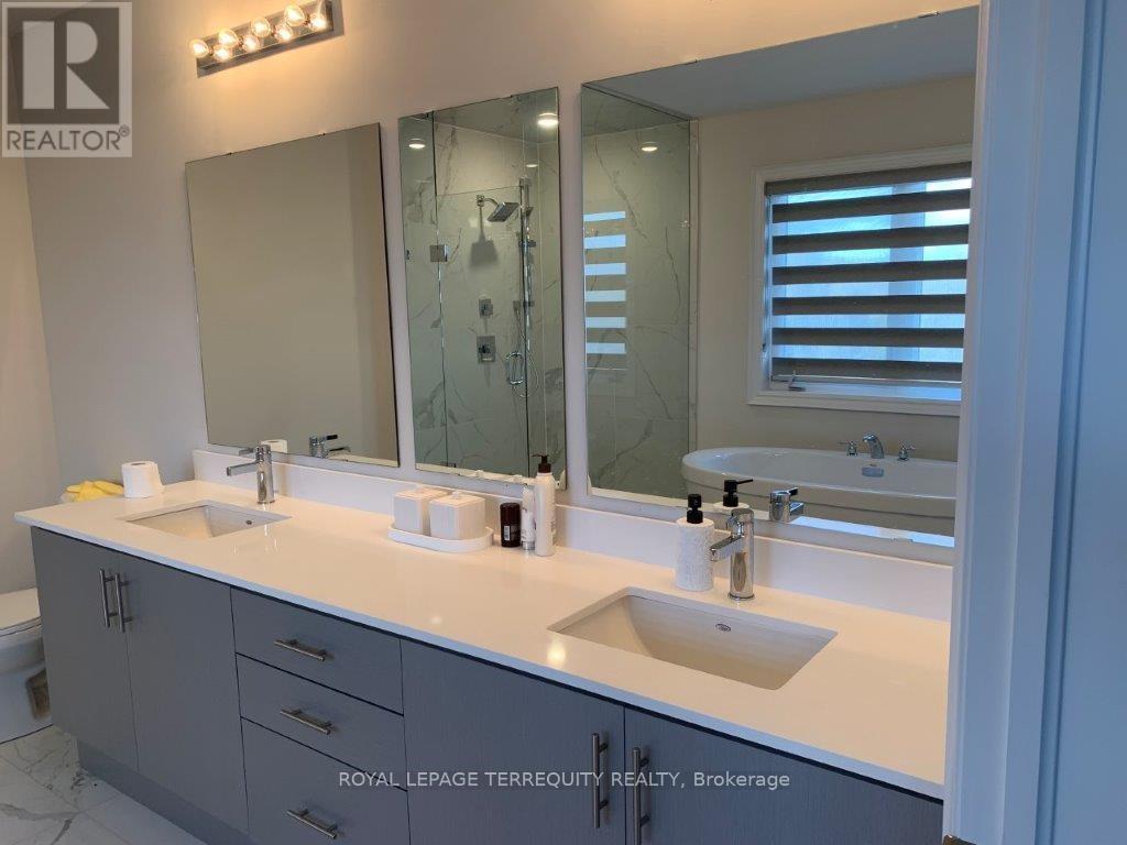 Welcome to this elegant home situated in a quiet setting in close proximity to lake and many beaches, scenic trails. This stunning 4 bedroom boasts 3,088 Sq Ft with modern elevation, covered porch, 2nd floor balcony and walk out basement built by Ballymore homes. Owner paid over $200K on interior upgrades and $85K builder's premium ravine lot overlooking into the forest, owner upgraded approx. 10'-0" ceiling height in main floor with 8'-0" high exterior front door/rear patio door, windows with transoms, 8'-0" high interior doors, 8'-0" high flat archways and smooth ceiling in all main floor rooms, upgraded approx. 9'-0" high walk out basement with high windows, upgraded 4 3/8" smooth stained hardwood flooring in great room, dining room, main hall, library and upper hall, upgraded stained stairs/railings, waffle ceiling in great room with pot lights, coffered ceiling in dining room, upgraded cabinetry in kitchen/pantry, upgraded floor tiles in kitchen/breakfast, foyer and powder room, upgraded 3cm quartz countertop in kitchen with full height quartz backsplash, cabinets with clear glass doors, waterline for fridge in the kitchen, gas line to stove in kitchen, upgraded floor tiles, tub and shower wall tiles, upgraded quartz counters with undermount sinks in all bedroom washrooms, additional bank of drawers between sinks in primary bedroom, upper cabinets in laundry, floor drain in laundry room, rough-in for washroom plumbing in basement, backwater valve at basement drain. Located near both elementary and high schools, as well as an arena and curling rink. Close to nearby plazas for food joints, Shoppers, Home hardware, banks and grocery stores. Recreational bike trail at the back of property. (id:51158)