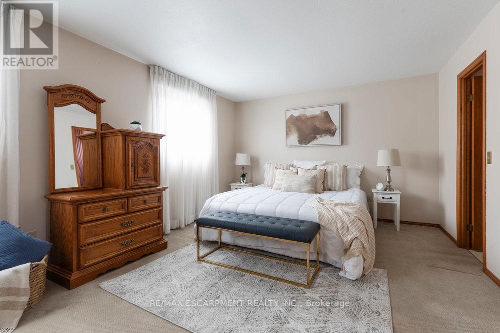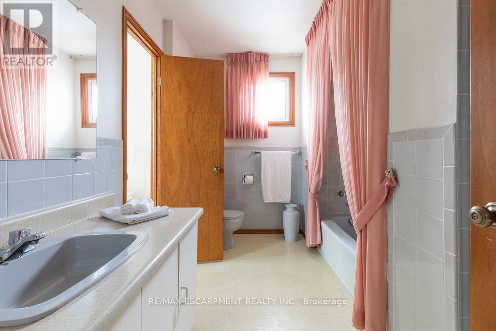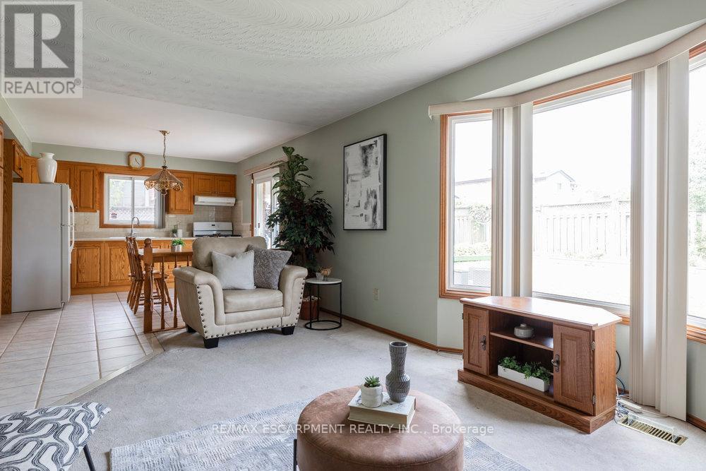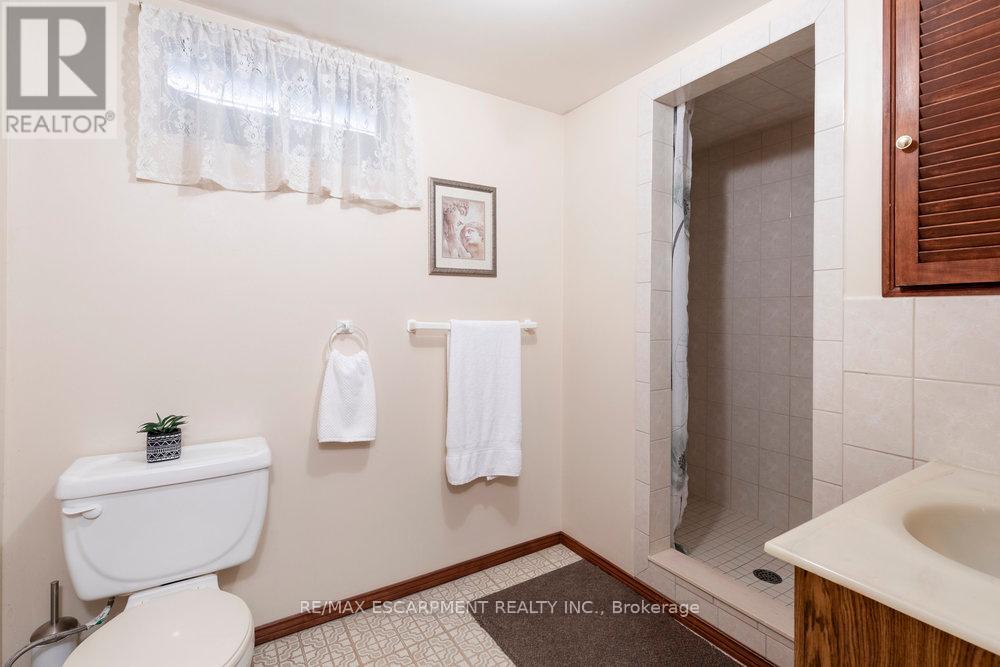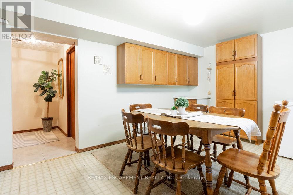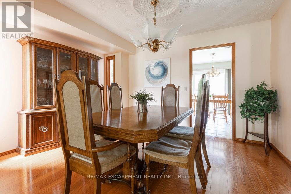 Welcome to this beautifully maintained detached family home, featuring 4+1 bedrooms, 2.5bathrooms, and an ideal in-law suite setup. Nestled in a quiet and highly sought-after neighborhood in Lower Stoney Creek, this home offers easy access to schools, shopping, amenities, and major highways-perfect for families and commuters alike. The main floor boasts formal living and dining area with rich hardwood flooring, an inviting eat-in kitchen with walk-out access to the backyard, and a cozy family room centered around a gas fireplace. For added convenience, you'll also find a powder room, laundry area, and direct access to the attached garage on this level. Upstairs, you'll discover four spacious bedrooms and a well-appointed 4-piece bathroom. The fully finished basement is a standout feature-perfect for multi-generational living or extended guests. It includes a full eat-in kitchen, a 3-piecebathroom, a generous rec room that could easily serve as a fifth bedroom or shared living space, and abundant storage throughout. Step outside to enjoy the large, fully fenced backyard offering complete privacy, mature garden beds, a patio perfect for entertaining, and handy storage shed. The double-wide driveway accommodates up to 4 vehicles, with an additional parking spot available in the attached garage. Lovingly cared for by the same owner for nearly 40 years, this home is ready to welcome a new family to make their own lasting memories. (id:51158)