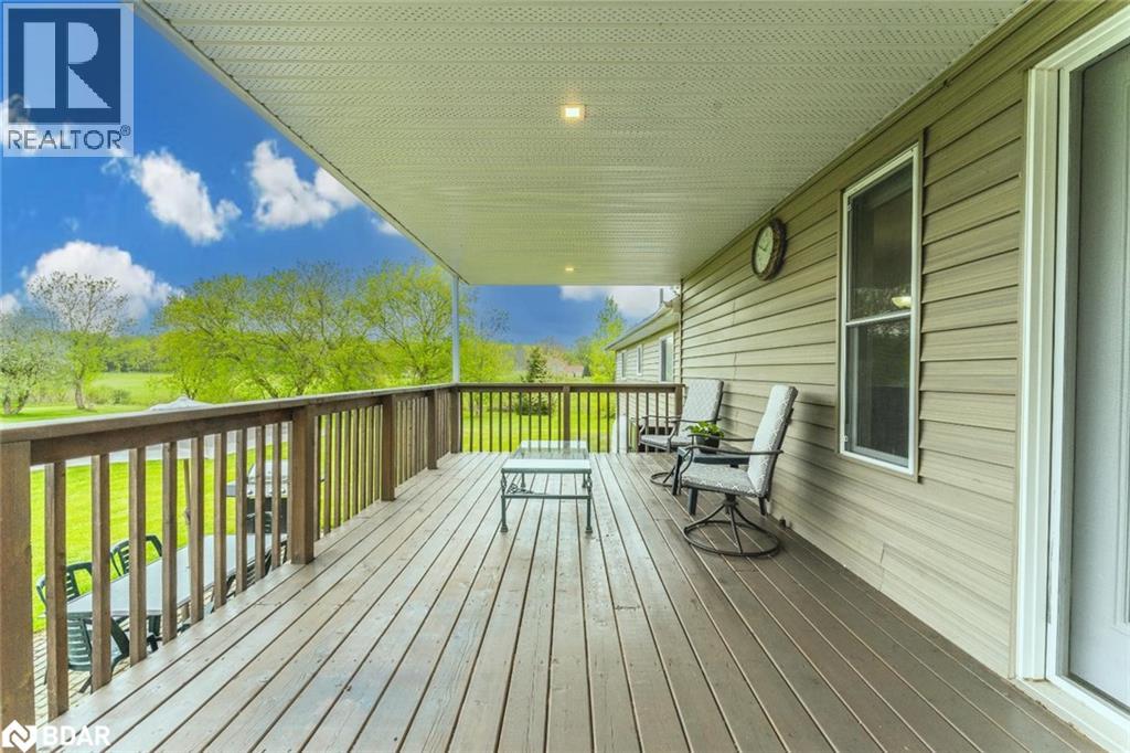 OVER 3,000 SQ FT BUNGALOW FEATURING IN-LAW POTENTIAL NESTLED ON 83.47 ACRES WITH WORKABLE LAND & MINUTES TO BARRIE! Nestled on an expansive 83.47 acres of fields and forest, this spacious bungalow offers a very private setting just a 5-minute drive from Barrie, close to golf courses and ski hills. Boasting agricultural and environmental protection zoning, the property features a diverse assortment of trees, including cherry, Cortland apple, lilac, crabapple, pear, McIntosh apple, and more. Approximately 35 acres of the land are dedicated to workable fields currently used as hay fields, while scenic walking trails wind through the forested areas, providing the chance to enjoy nature at its finest with an abundance of local wildlife. Step inside to discover over 3,000 square feet of finished living space, featuring hardwood and laminate flooring throughout most of the home. The generously sized eat-in kitchen presents ample cabinetry, stainless steel appliances, and a mosaic backsplash. The primary bedroom is complete with a walk-in closet and ensuite, while the main bathroom boasts a large soaker tub and separate shower. Descend to the finished basement, which features a separate entrance, in-law suite potential, and a bathroom rough-in. Enjoy the spacious covered back porch and patio area overlooking the tranquil property. Updates include newer shingles, attic insulation, a sump pump, and appliances. Multiple 100-amp electrical panels, a water softener, and a drilled well ensure convenience. With the included 8 x 10 shed for additional storage space, ample driveway parking for up to 20 vehicles, no rental items, and low property taxes, this property offers a rare opportunity to embrace country living without sacrificing convenience. (id:51158)