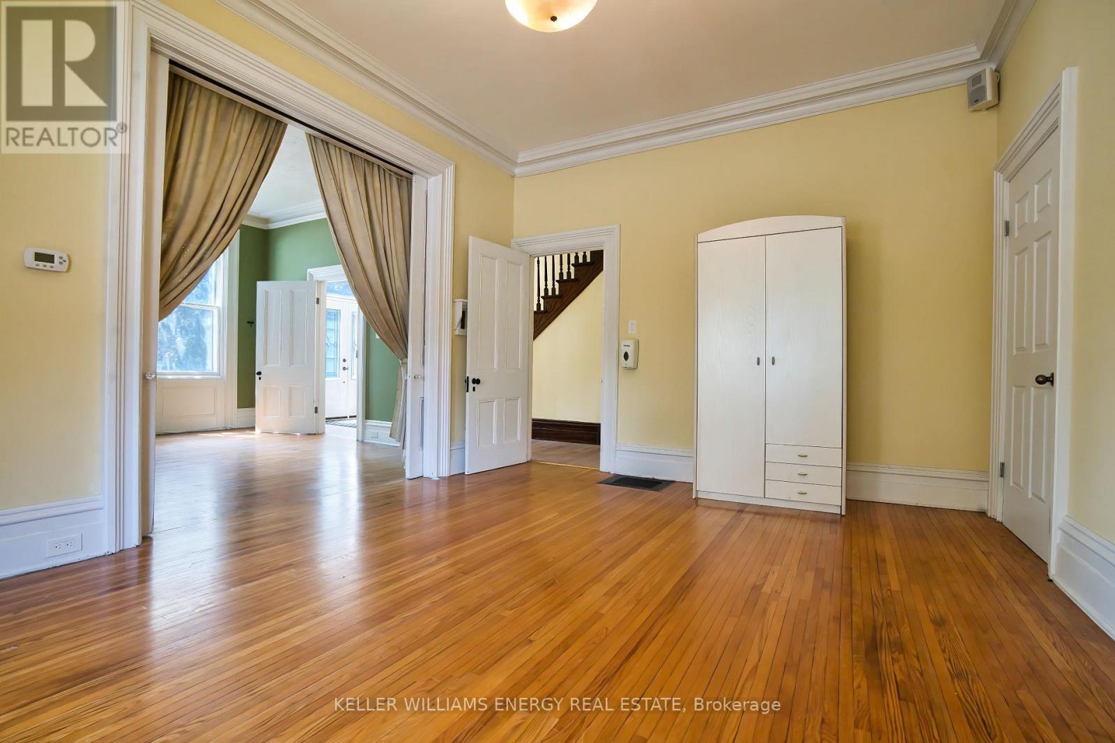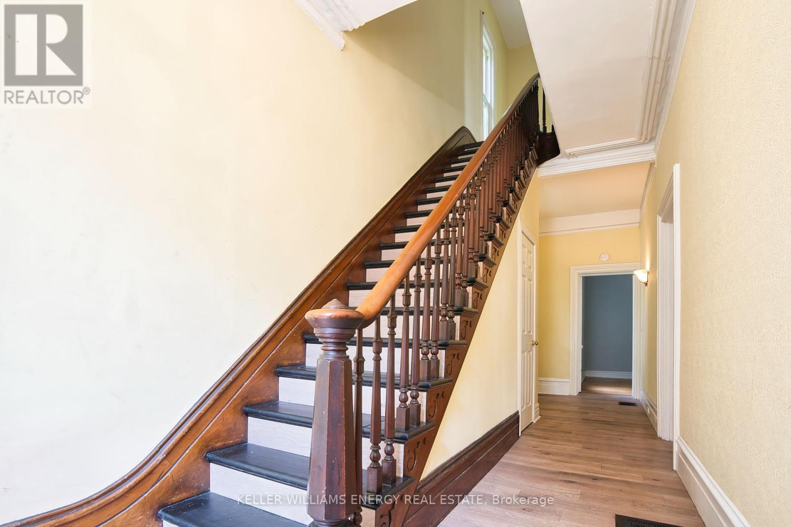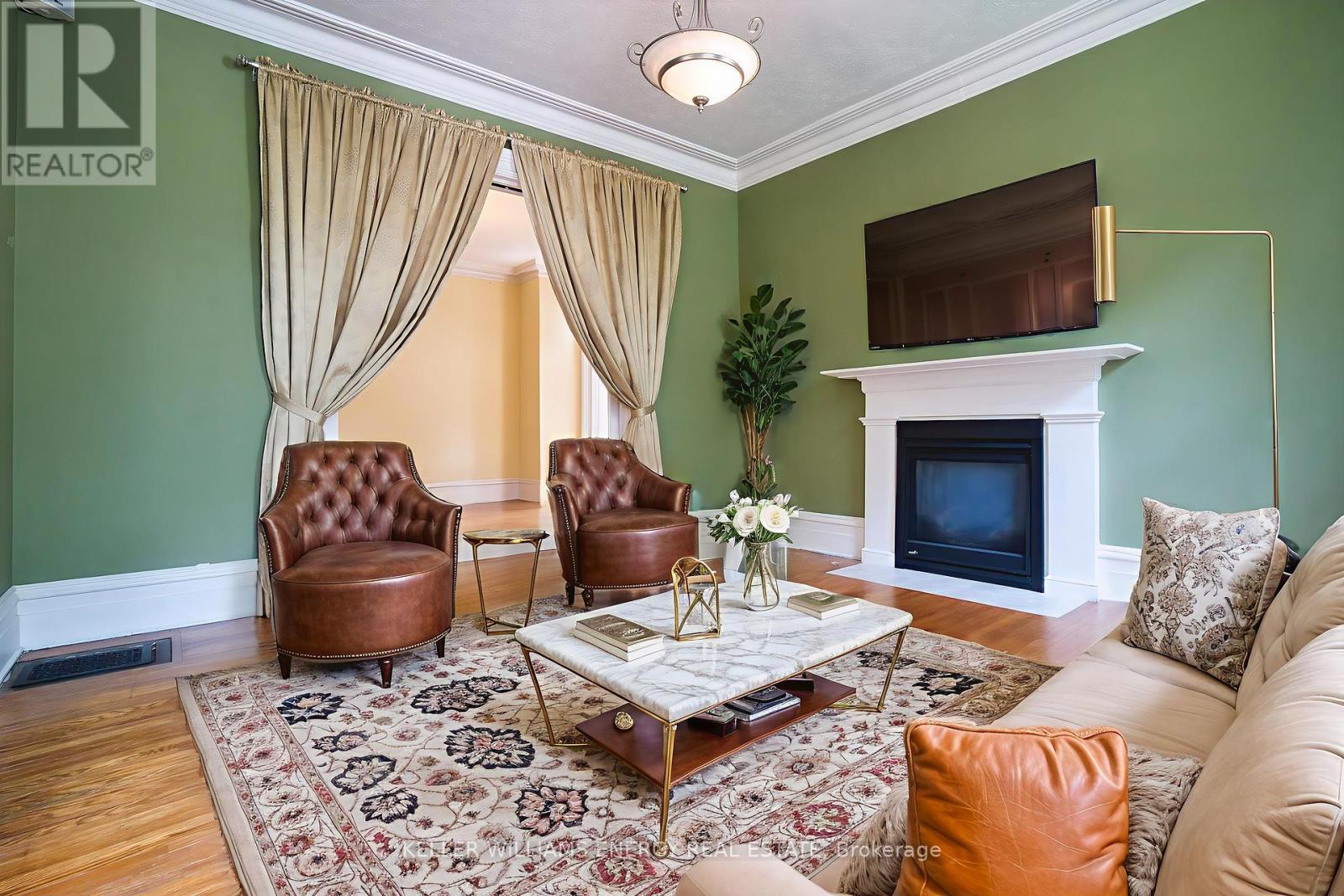 Step into History in the Heart of Woodstock. Built in 1875, this stately 4-bedroom, 2-bath century home offers over 2,600 sq ft of charming, light-filled living space on a generous 66x127 ft corner lot. From the moment you arrive, you're greeted by elegant curb appeal , a large entertainer's deck with built-in bench seating, and heritage brickwork that speaks to a bygone era. Inside, this two-storey gem blends classic architectural character with smart modern upgrades. Original pine flooring, 10-ft ceilings, deep crown moldings, and grand baseboards flow throughout the home, while spacious principal rooms including a formal dining room, library/sitting room, and a sun-filled living room with gas fireplace make this a true standout for those who crave space and style. Upstairs, four oversized bedrooms are paired with a luxurious bathroom featuring a soaker tub, glass shower, and double vanity. Enjoy the convenience of second-floor laundry and a sprawling layout perfect for family living or multi-use needs. The full basement includes spray foam insulation, and separate utility space. Zoned R2, this home allows for home occupations or duplex potential. Parking for 6+ vehicles and a garden shed with hydro add practicality to this timeless beauty. Whether you're drawn to its historic charm, prime location, or flexible zoning, 88 Wellington St N is a rare opportunity to own a piece of Woodstock's heritage with all the comforts of modern living. ***Some Photos have been virtually staged*** (id:51158)