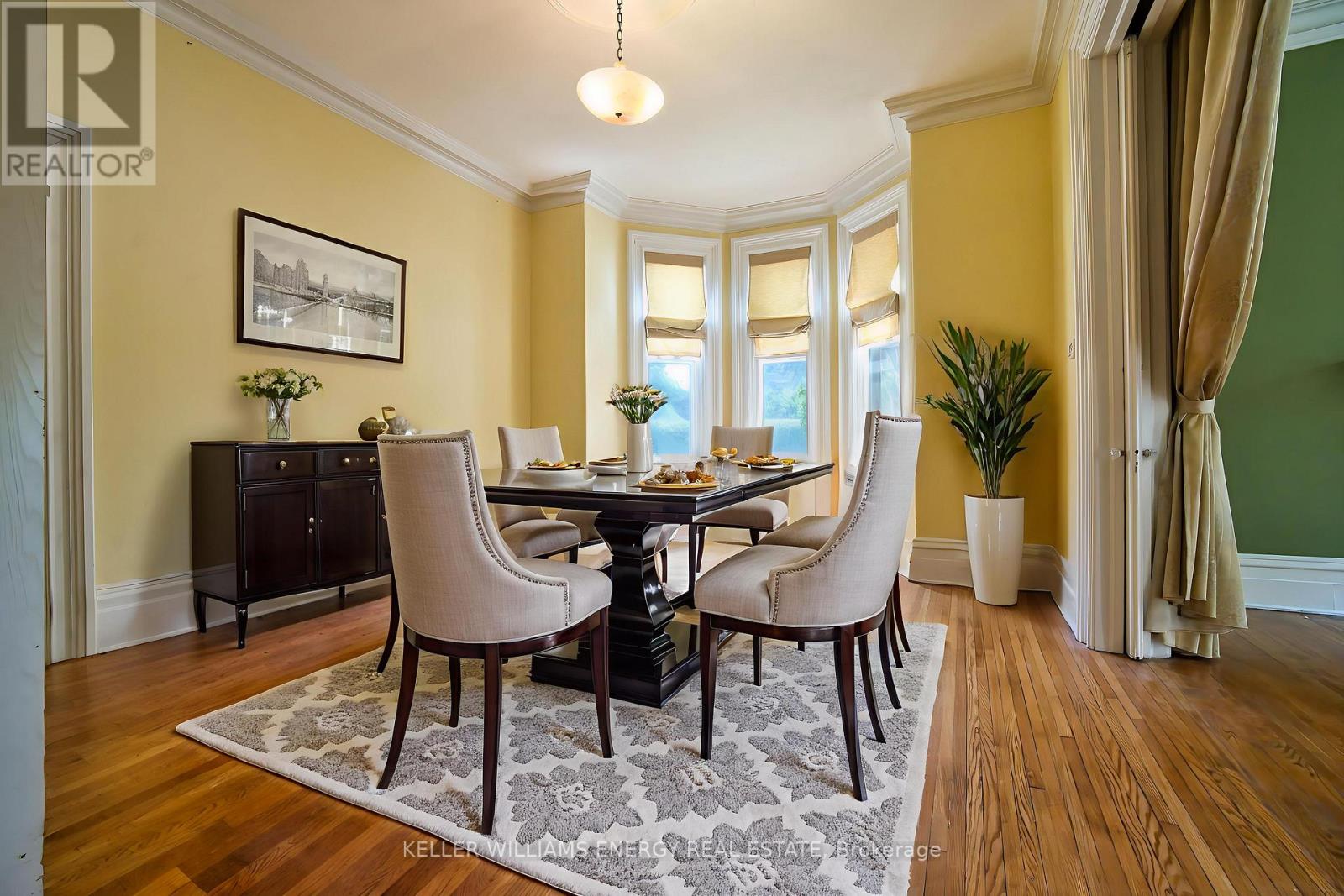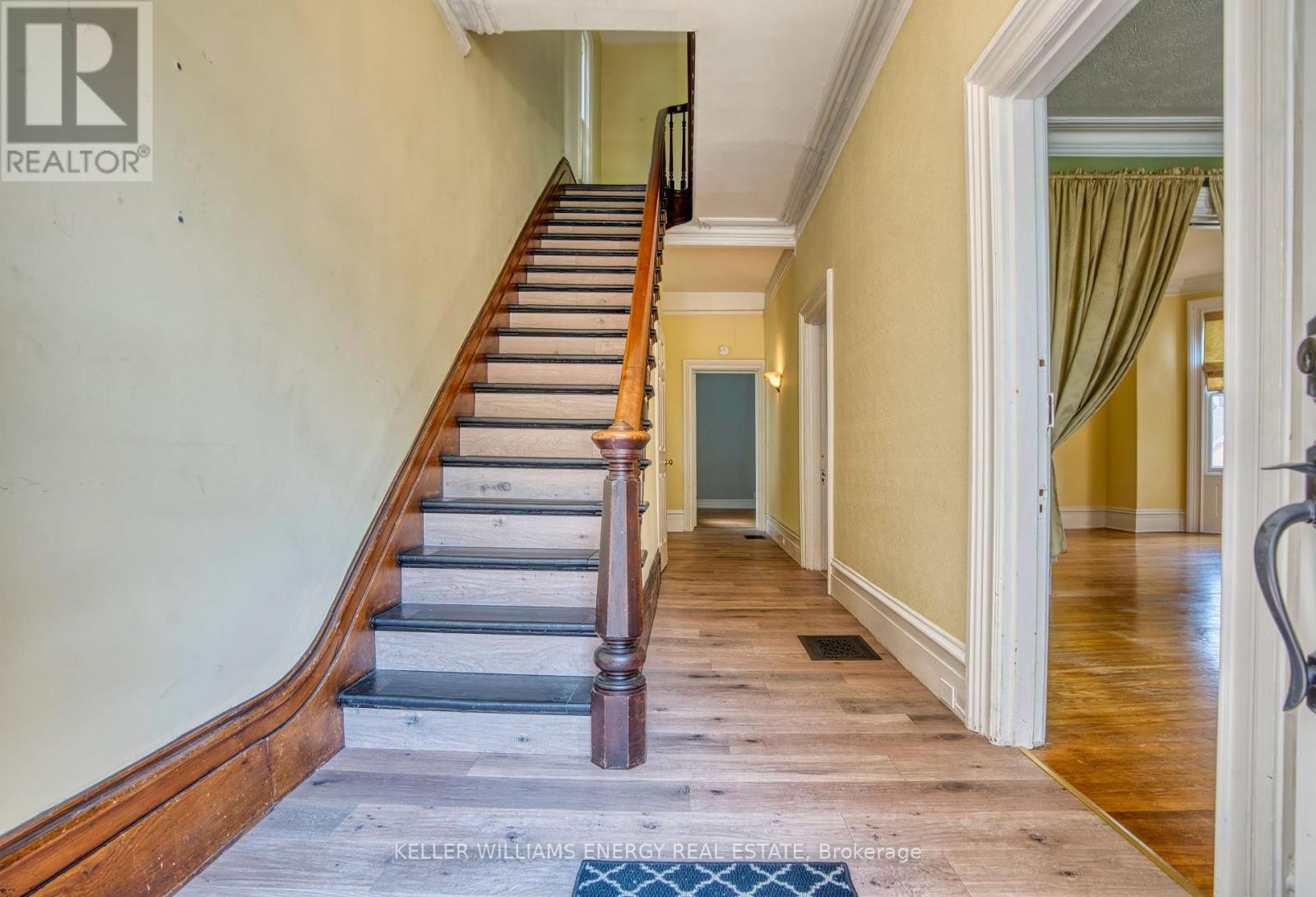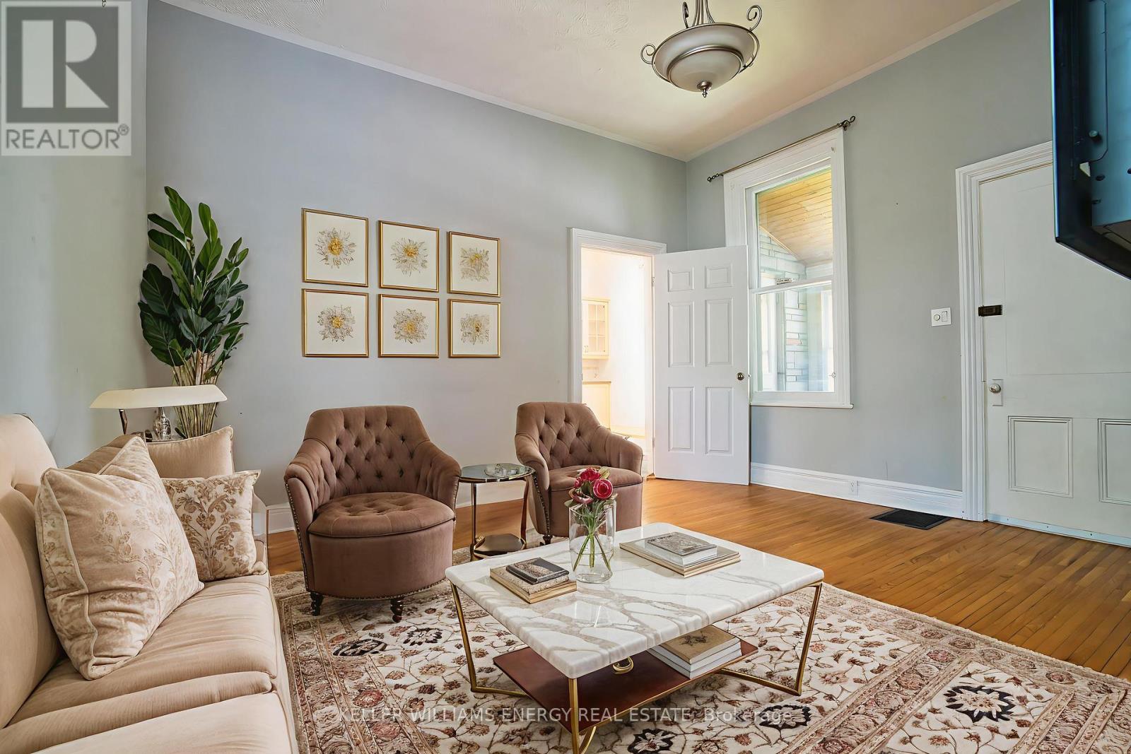 Step into History in the Heart of Woodstock. Built in 1875, this stately 4-bedroom, 2-bath century home offers over 2,600 sq ft of charming, light-filled living space on a generous 66x127 ft corner lot. From the moment you arrive, you're greeted by elegant curb appeal , a large entertainer's deck with built-in bench seating, and heritage brickwork that speaks to a bygone era. Inside, this two-storey gem blends classic architectural character with smart modern upgrades. Original pine flooring, 10-ft ceilings, deep crown moldings, and grand baseboards flow throughout the home, while spacious principal rooms including a formal dining room, library/sitting room, and a sun-filled living room with gas fireplace make this a true standout for those who crave space and style. Upstairs, four oversized bedrooms are paired with a luxurious bathroom featuring a soaker tub, glass shower, and double vanity. Enjoy the convenience of second-floor laundry and a sprawling layout perfect for family living or multi-use needs. The full basement includes spray foam insulation, and separate utility space. Zoned R2, this home allows for home occupations or duplex potential. Parking for 6+ vehicles and a garden shed with hydro add practicality to this timeless beauty. Whether you're drawn to its historic charm, prime location, or flexible zoning, 88 Wellington St N is a rare opportunity to own a piece of Woodstock's heritage with all the comforts of modern living. ***Some Photos have been virtually staged*** (id:51158)