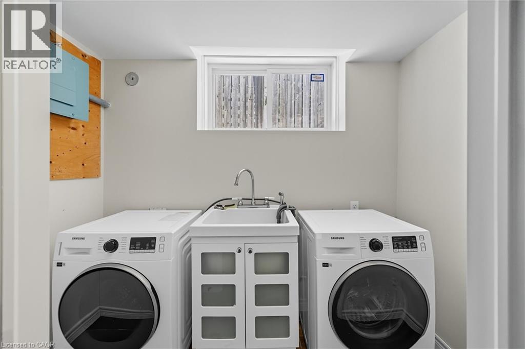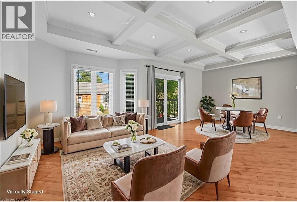 Enjoy the best of urban living in this spacious and updated home, ideally located close to Hamilton Harbour, the GO Station, and vibrant James Street North. The main floor features an expansive open-concept living and dining area with coffered ceiling, hardwood floors, recessed lighting, a front balcony, and access to the garden deck. The modern kitchen includes an island and brand new stainless steel LG French door fridge, LG ThinQ built-in dishwasher, over-the-range microwave, and stove. Upstairs, discover three bedrooms, including a primary suite with a 4-piece en-suite offering a jetted tub and separate shower. The entry level welcomes you with a large foyer, 2-piece washroom, and a convenient laundry room with brand new Samsung stackable washer and ductless dryer. All bathrooms are refreshed with new vanities, faucets, and mirrors. Additional updates include new faux wood blinds, carpet on the bedroom level, and a Nest thermostat. Direct access to the home is provided from the garage, which is equipped with an app-based do (id:51158)