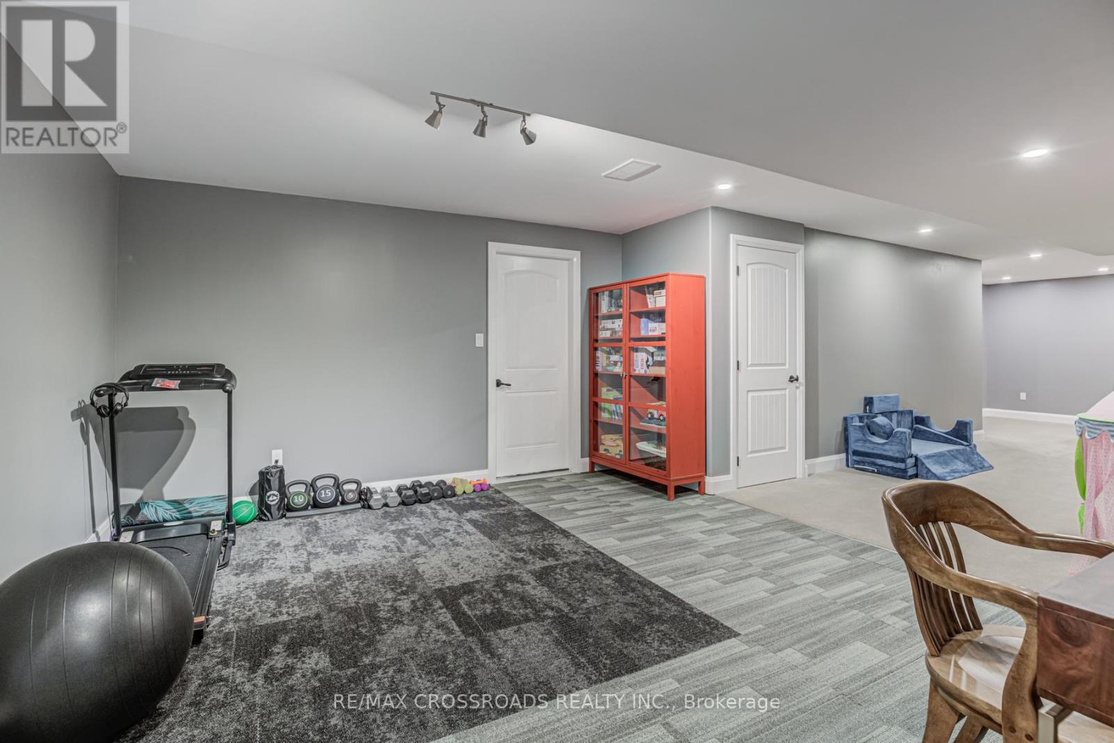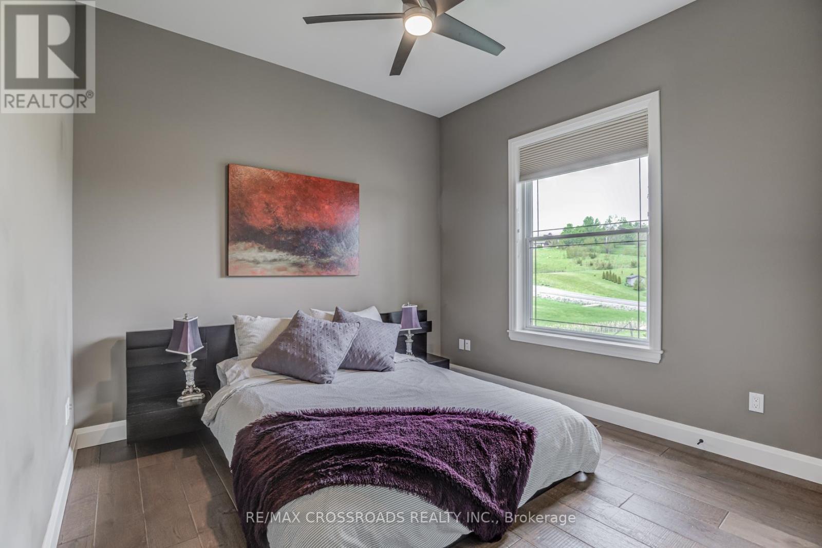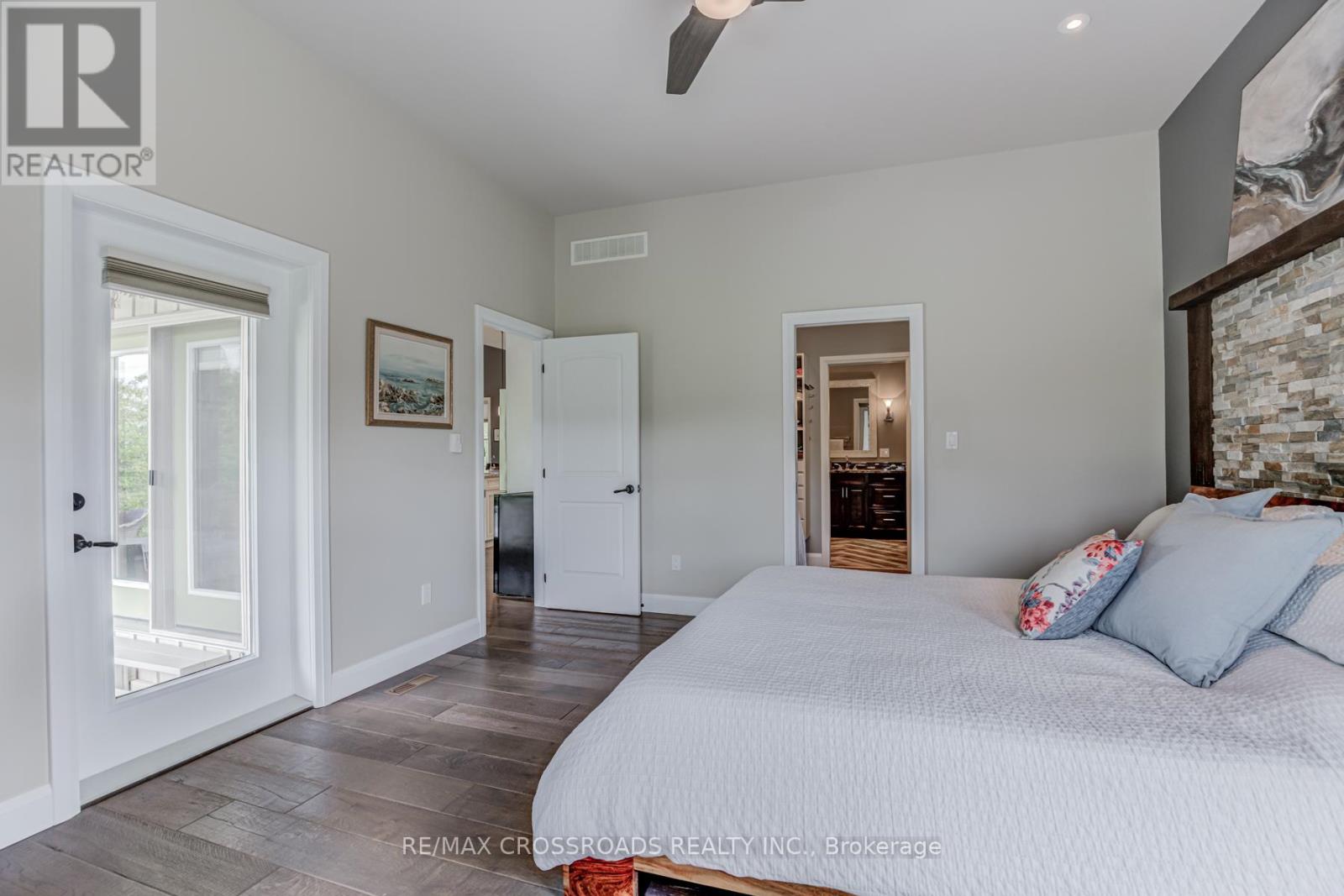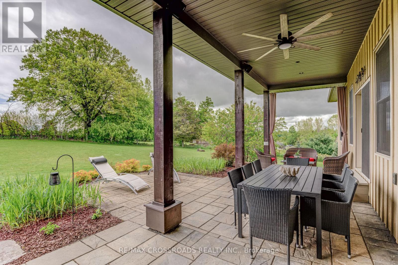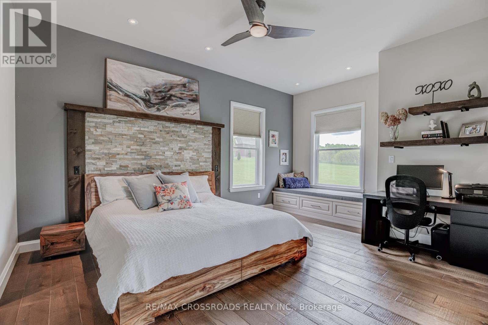 Now's your opportunity to own this exceptional sprawling custom-built bungalow with approx. 3600 sq ft of living space in the coveted Hearthstone Ridge Estates, just 10 minutes to the 401! This stunning home offers 3+1 spacious bdrms & blends luxury, comfort, & country charm in every detail. Upon arrival, you'll be charmed by the striking combination of stone and board-and-batten exterior that complements the rolling countryside along with the professionally designed landscaping & meticulous gardens that surround the home making it the crown jewel of the neighbourhood. Step inside and experience the bright and airy open concept layout. The living room with its soaring cathedral ceilings adorned with wood beams & gas fireplace set the tone for elegant rustic living. The ultimate chefs kitchen is a showstopper, featuring rich wood cabinetry, gleaming granite countertops, premium s/s appliances including a Thermador gas range & dishwasher, & a generous island perfect for entertaining. French doors & large windows throughout invite the outdoors in, offering views of the gardens from every room. The large primary suite is your private retreat with a cozy reading nook overlooking the garden, direct patio access, & a luxurious ensuite w/ quartz countertops, heated floors, & a spacious walk-in multi-jet shower. A huge w/i closet with custom cabinetry add to the suites appeal. On the opposite wing of the home, you'll find two additional well-sized bdrms & a stylish main bath. The fully finished basement expands your living space with a 4th bdrm, full bath, & ultimate man cave complete with billiards, darts, an acoustically treated home theatre area, & plenty of space for an office, gym, & playroom. Storage is plentiful. The private backyard oasis features a covered stone patio, hi-fi audio, gas BBQ, & a large firepit perfect for year-round relaxation or entertaining. If you're seeking peaceful, upscale country living with city convenience, this Hearthstone Ridge gem is it. (id:51158)