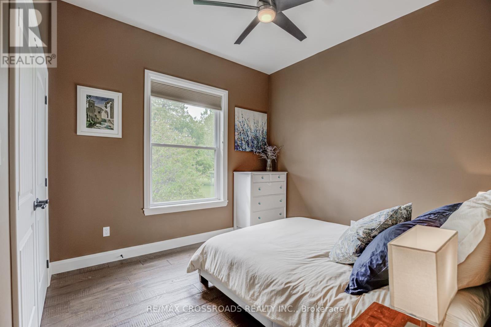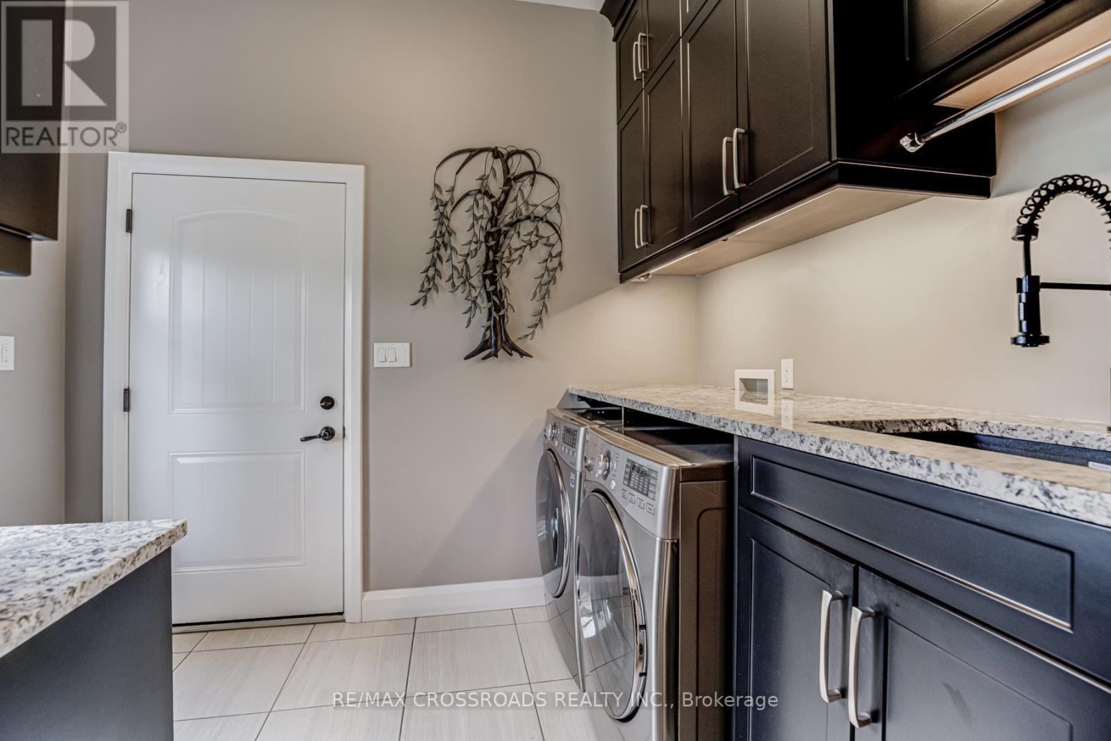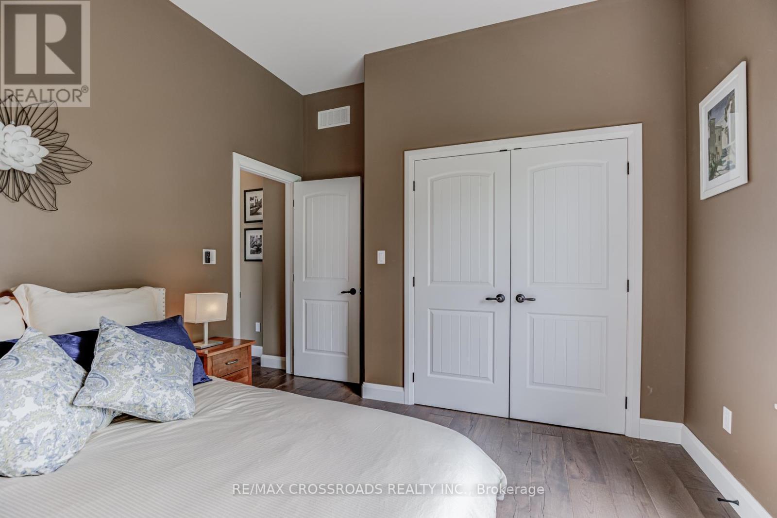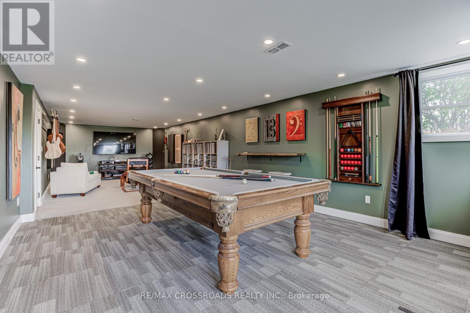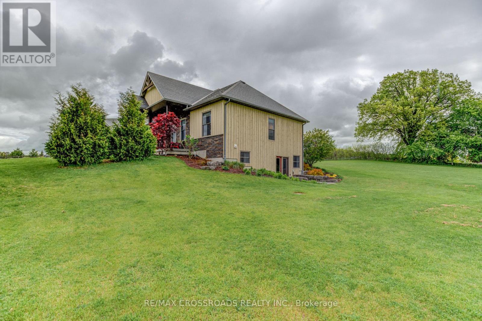 Now's your opportunity to own this exceptional sprawling custom-built bungalow with approx. 3600 sq ft of living space in the coveted Hearthstone Ridge Estates, just 10 minutes to the 401! This stunning home offers 3+1 spacious bdrms & blends luxury, comfort, & country charm in every detail. Upon arrival, you'll be charmed by the striking combination of stone and board-and-batten exterior that complements the rolling countryside along with the professionally designed landscaping & meticulous gardens that surround the home making it the crown jewel of the neighbourhood. Step inside and experience the bright and airy open concept layout. The living room with its soaring cathedral ceilings adorned with wood beams & gas fireplace set the tone for elegant rustic living. The ultimate chefs kitchen is a showstopper, featuring rich wood cabinetry, gleaming granite countertops, premium s/s appliances including a Thermador gas range & dishwasher, & a generous island perfect for entertaining. French doors & large windows throughout invite the outdoors in, offering views of the gardens from every room. The large primary suite is your private retreat with a cozy reading nook overlooking the garden, direct patio access, & a luxurious ensuite w/ quartz countertops, heated floors, & a spacious walk-in multi-jet shower. A huge w/i closet with custom cabinetry add to the suites appeal. On the opposite wing of the home, you'll find two additional well-sized bdrms & a stylish main bath. The fully finished basement expands your living space with a 4th bdrm, full bath, & ultimate man cave complete with billiards, darts, an acoustically treated home theatre area, & plenty of space for an office, gym, & playroom. Storage is plentiful. The private backyard oasis features a covered stone patio, hi-fi audio, gas BBQ, & a large firepit perfect for year-round relaxation or entertaining. If you're seeking peaceful, upscale country living with city convenience, this Hearthstone Ridge gem is it. (id:51158)