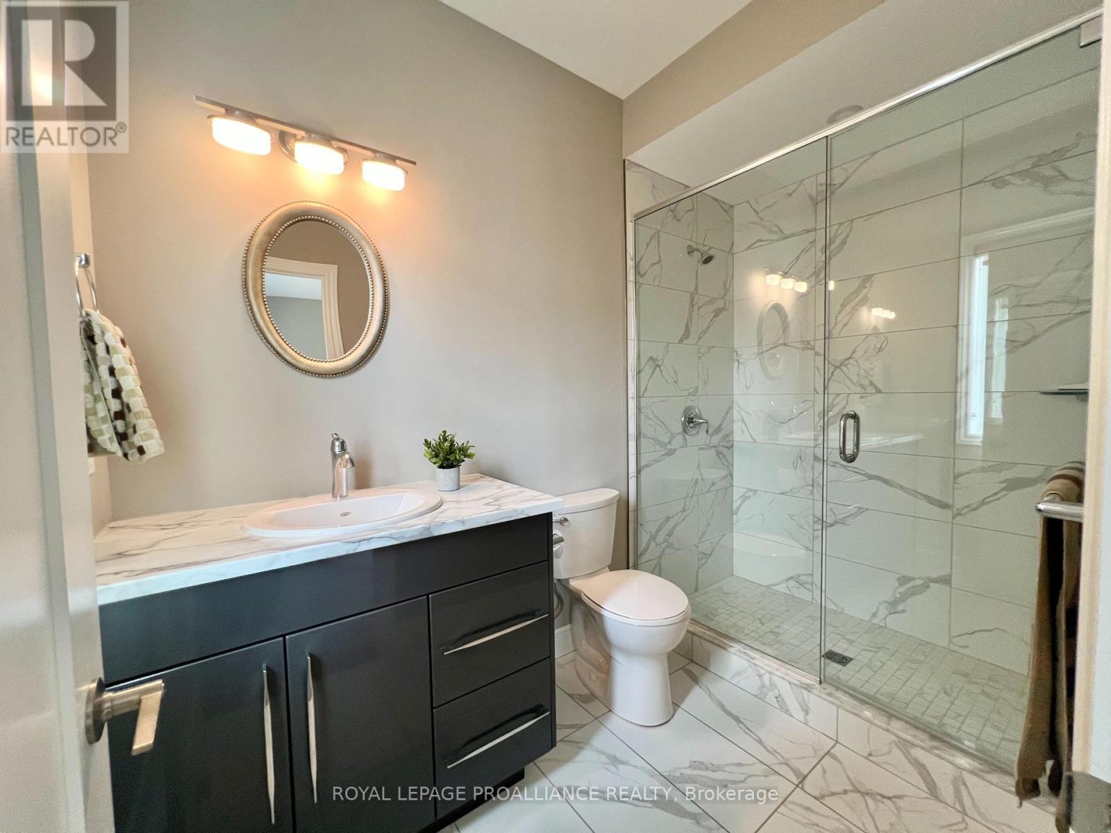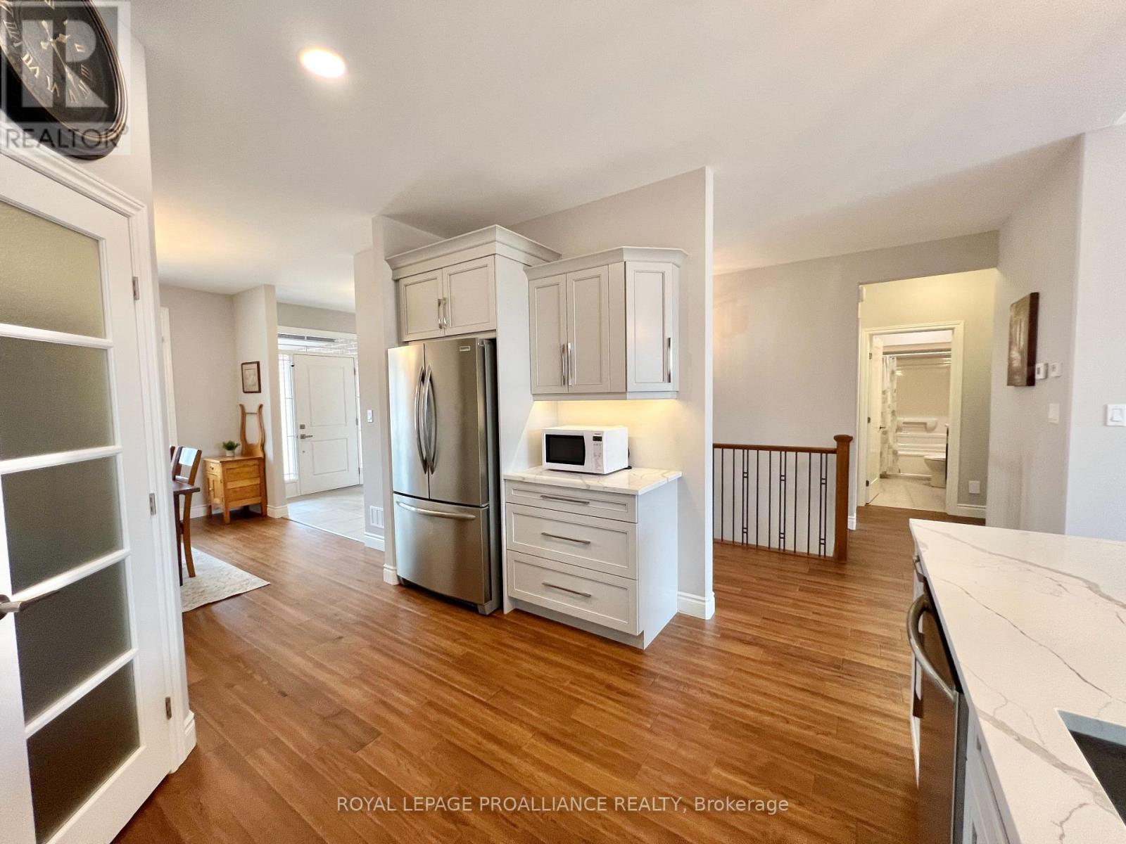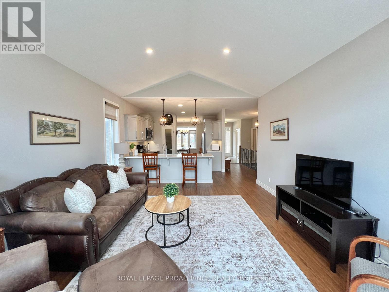 This immaculate all-brick bungalow, built in 2019 by Devanco Homes, is located in one of Belleville's most sought-after family neighbourhoods and shows like new from top to bottom. Step inside to a bright and welcoming foyer, with a front dining room framed by a large window that fills the space with natural light. The open-concept main living area is perfect for both everyday life and entertaining, featuring a vaulted ceiling in the living room and seamless flow into the kitchen. The kitchen features neutral cabinetry, quartz countertops, stainless steel appliances, a corner pantry, and a large island ideal for gathering with family and friends.The main level offers two bedrooms, including a spacious primary retreat with a walk-in closet and a private three-piece ensuite with a glass-tiled shower. A full four-piece bathroom completes the level. Downstairs, the fully finished basement-builder completed-continues the modern, like-new feel with a generous rec room, two additional spacious bedrooms, and another full four-piece bathroom. It's perfect for guests, hobbies, or flexible living space. Outside, enjoy a charming covered front porch, a double garage, and patio doors from the living room to the backyard deck, ideal for relaxing or entertaining on sunny days. Thoughtful details throughout include hardwood flooring on the main level, warm-toned laminate in the lower level, custom window coverings, and finishes that have been meticulously maintained...yes, I know people always say that, but this one really is! Settlers Ridge Estates offers wide lots, quiet streets, scenic walking paths, parks, and easy access to all shopping and amenities, combining comfort, convenience, and a lifestyle you'll love. (id:51158)
