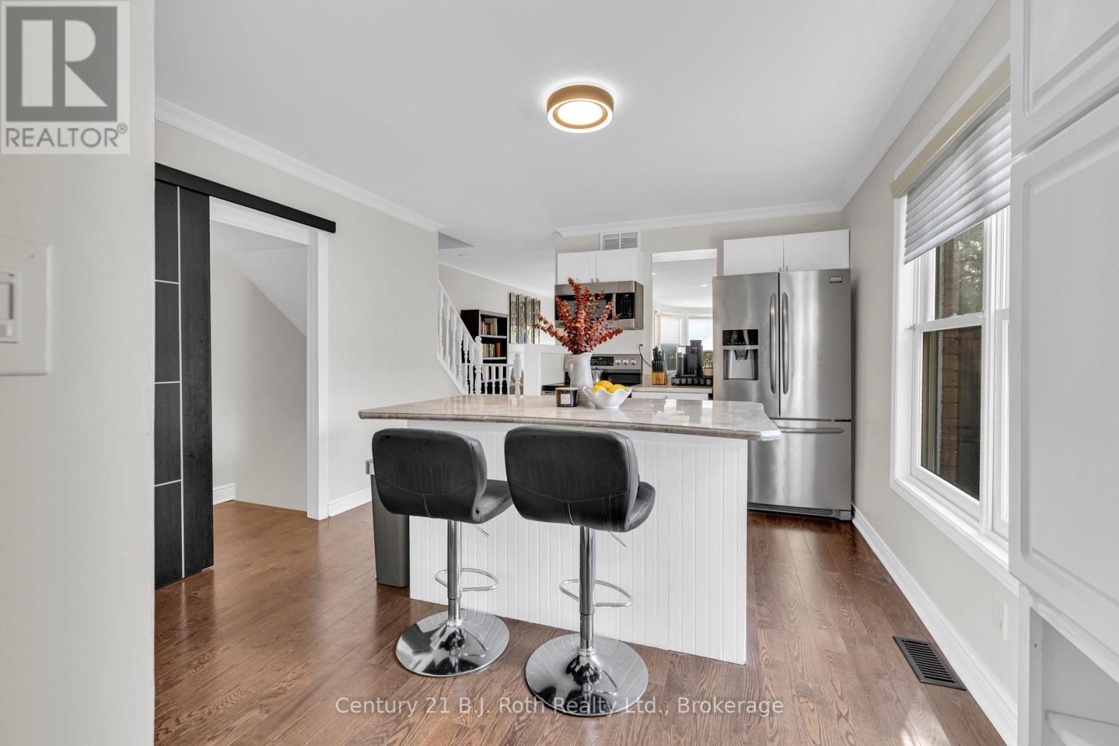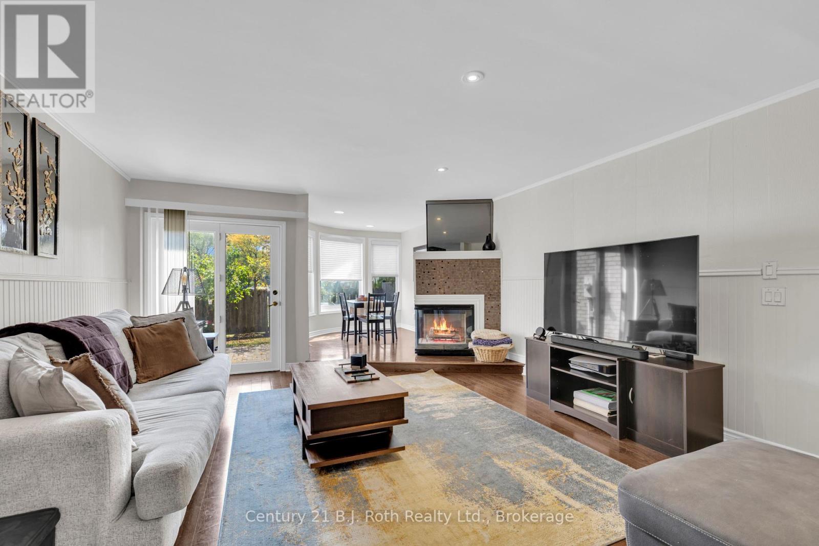 $360 MonthlyAttractive end-unit townhouse condo in desirable South Windsor! One of only nine units in the complex! Open concept main floor area featuring sizable living room connecting to bonus sun room. Enjoy the eat-in kitchen and the convenience of a main floor powder room. The entire second floor has been upgraded with new engineered hardwood flooring, and features a generous primary bedroom with walk-in closet, cheater ensuite bathroom with private vanity area, and walkout balcony. The second bedroom features double closets and Juliet balcony. The partially finished basement includes a recreation room with adjacent wet bar area, and a large storage/laundry room. Single car garage with inside entry and rear yard with patio area. You will love the privacy of this property with no rear neighbours. Perfect location, in close proximity to schools, shopping, the EC Row Expressway and the Huron Church/401 corridor. Immediate possession available! (id:51158)