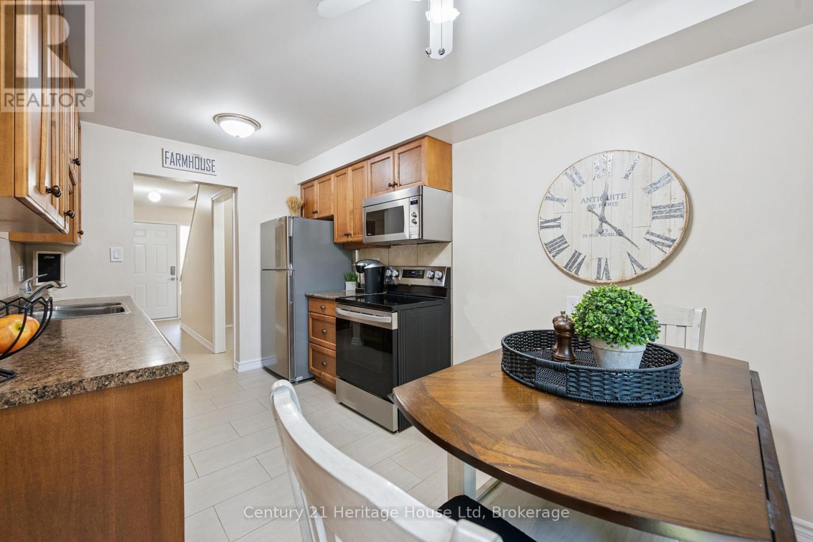 $449 MonthlyWelcome to this lovely Townhome, nestled among mature trees in a well-maintained and beautifully landscaped community. The unit has been updated with laminate floors and ceramic tile, leading into an updated kitchen. Upstairs, you will find three spacious bedrooms, featuring closet organizers with the primary bedroom having the convenience of two closets and more than enough room for a king size bedroom set creating a warm and inviting retreat. The fully finished basement offers additional living space, perfect for a game room or second living area, along with a three-piece bathroom and laundry area. Upgrades also include updated roof and windows completed within the last five years. This charming townhome is conveniently located close to schools, shopping, parks and steps to public transit. You'll be just steps away from the playground and recreation centre, with a short drive to the beautiful Guelph lake and conservation area. The unit includes a single car garage and the condo fees cover water and exterior maintenance. Don't miss out on this wonderful opportunity to own a beautifully maintained townhome in a vibrant community! (id:51158)
