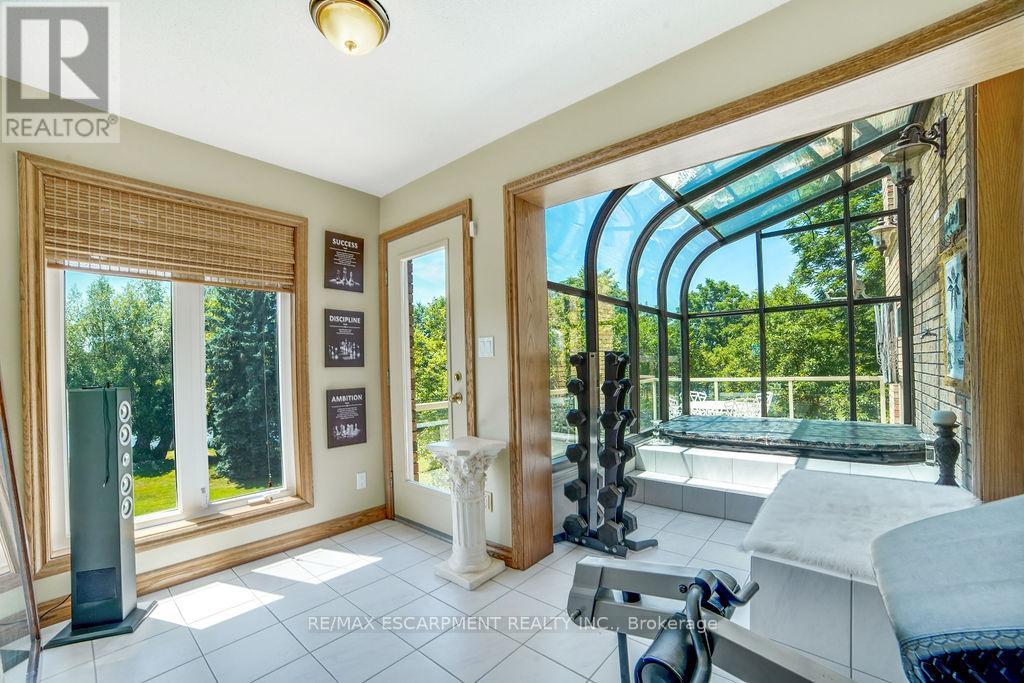 Welcome to 9 Lamb Court, a distinguished custom-built executive residence positioned along the scenic banks of the Grand River. This multi-level home is thoughtfully designed to maximize its exceptional location, providing river views from most rooms. Boasting over 4,300 square feet of living space, the property offers ample accommodation for a growing family and features four bedrooms, three bathrooms, and an in-law suite with a private entrance. The unique floor plan includes two expansive family rooms, each equipped with fireplaces - one further enhanced by a wet bara formal dining room, a spacious and modern eat-in kitchen, a dedicated home office, a primary suite with multiple closets and a luxurious ensuite, a solarium with built-in hot tub, main floor laundry, and a gym. Multiple exits lead to several private seating areas, strategically positioned to capture the tranquility and views of the river. The quiet court location further enhances the peacefulness and exclusivity of this remarkable property. Please note basement kitchen and Living room are combined. (id:51158)
