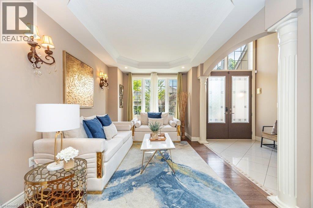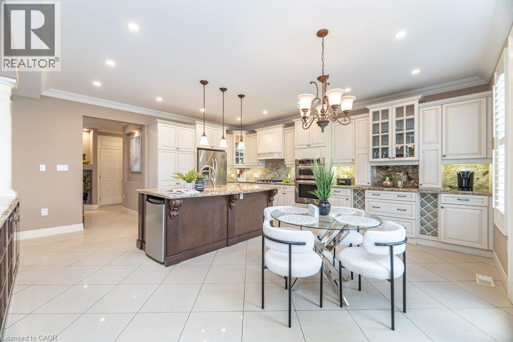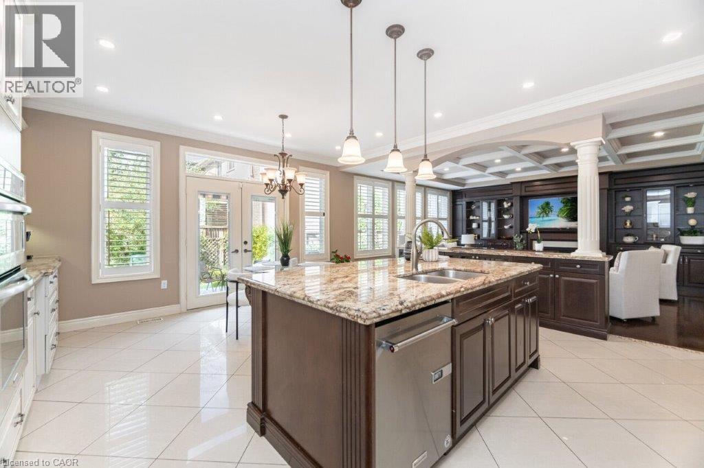 Welcome to this stunning 4+1 bedroom home, tucked away on a quiet court and offering over 5000 sq. ft. of beautifully finished total living space. From the attention to detail and high-end finishes that set this home apart, the main floor boasts 9-foot ceilings, rich hardwood and porcelain flooring, and elegant crown moulding throughout. The spacious family room is a true highlight, featuring custom built-in wall units, a cozy gas fireplace, and an eye-catching waffle ceiling that adds both character and warmth. The gourmet kitchen is designed for both everyday living and entertaining, with upgraded cabinetry, granite countertops, a centre island, built-in appliances, and a seamless flow into the breakfast and dining areas. The formal living and dining rooms offer refined spaces for hosting guests and adds a touch of luxury to the main floor with a beautiful spiral oak staircase that is the main focal point of the main floor. Upstairs, the primary suite provides a peaceful retreat with a generous walk-in closet and a spa like 6 piece ensuite. Bedrooms two and three share a well-appointed Jack & Jill bathroom, while the fourth bedroom has its own ensuite. A convenient second-floor laundry room and a spacious loft which can be used as an additional living room or an office space, adds functionality to the upper level. The fully finished lower level with a separate side entrance, features high ceilings and includes a large recreation room perfect for movie nights or gatherings, an additional bedroom with a combined office space ideal for working from home. A beautiful spiral oak staircase with wrought iron spindles connects all levels of the home with elegance and flow. (id:51158)