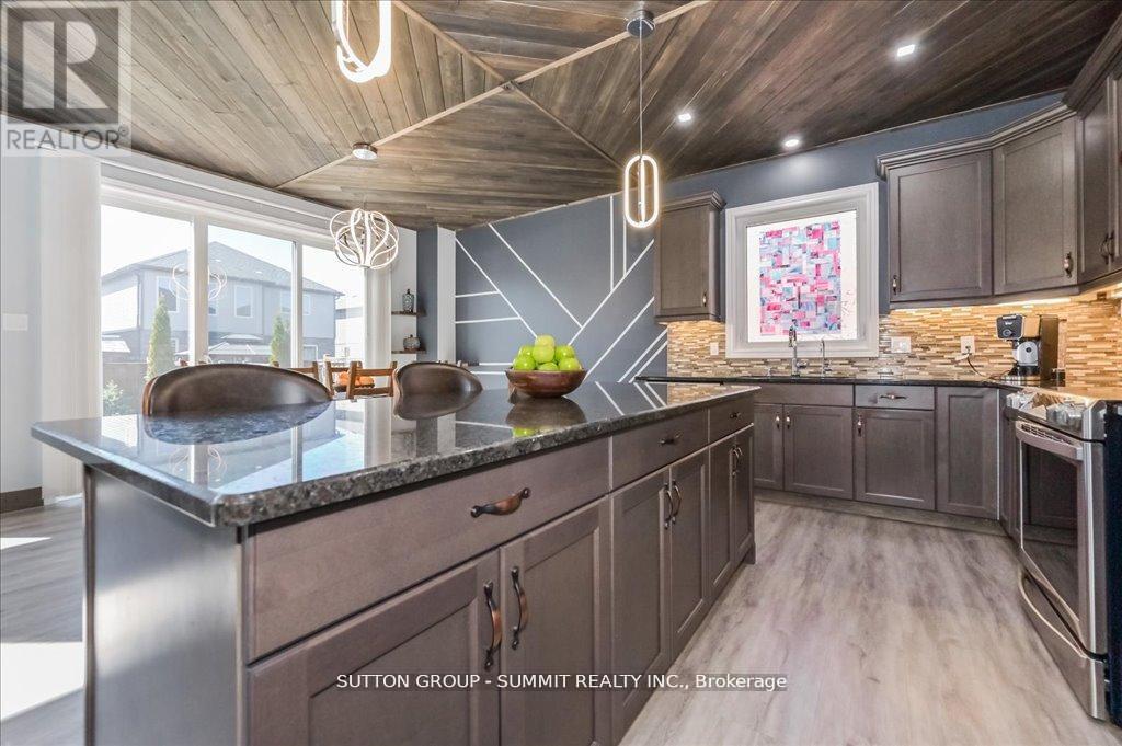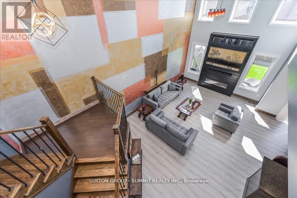 Stunning Detached Home with exceptional Craftsmanship & Over 100K in upgrades. Wlcm to this Standout home where pride of ownership is reflected in every inch. From the moment you arrive, you will notice the quality, from the beautifully crafted stone driveway & stone front facade. Step through the door & be greeted by 9ft ceilings. The kitchen is an entertainer's dream, featuring 36" upper cabinets, under-valance lighting w/pot lights, stylish ceiling, wall accents & a stunning granite island, top of the line S/S appliances & a brand-new electric stove with warranty. The open concept layout flows into a warm & elegant living room, complete with a fireplace and built-in TV wall with a stunning 75" 8K TV, soaring 17ft ceilings, & motorized Power view shades. Enjoy living with smart features like Lutron switches for home automation, dimmable light fixtures to set the perfect mood, Lorex security cameras (no subscription needed & remote access), central vacuum. Heat & privacy-protective treatments on the main windows & durable polycarbonate window wells are additional thoughtful touches. The main floor also includes a convenient laundry room with access to the double garage which features heat-resistant luxury vinyl flooring, a garage opener with battery backup. Step outside to a low-maintenance backyard, fully upgraded with beautiful stonework garden & artificial grass ideal for relaxing or entertaining without the upkeep. Upstairs, the bright primary bedroom offers a walk-in closet & a luxurious ensuite with his & hers vanities, a linen closet, & a skylight, 2 additional generous bedrooms share a modern 4-piece bathroom with a sleek glass door.The finished basement offers flexibility with a rough-in for a 3-piece bath, cold room, built-in TV wall & plenty of storage to be adapted to your needs, ensuring peace of mind & reliable performance for years to come.The list of upgrades is truly extensive please refer to the attach (list of upgrades). (id:51158)