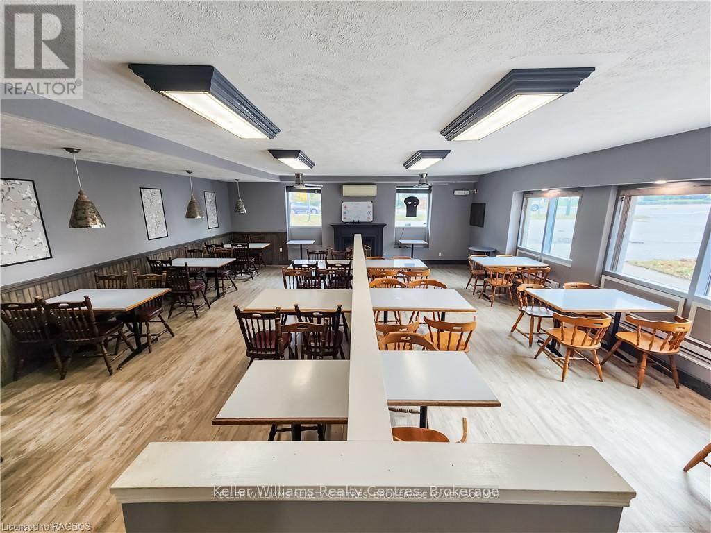 Exciting Commercial Lease Opportunity - with optional residential living lease for a 2 bedroom,1 bath apt! Nestled between the charming towns of Port Elgin and Kincardine, this commercially zoned property is located right on Highway 21, offering excellent visibility and easy access. Now available for lease, it presents a fantastic opportunity to run a successful restaurant, with a fully equipped restaurant space on the lower level. Ideal for entrepreneurs or culinary professionals, this space is perfectly situated for traffic from both local residents and those commuting to Bruce Power making it a strategic location for steady business. An added bonus is the option to live and work on-site, offering convenience and cost-efficiency for those looking to immerse themselves in their venture. Beyond the restaurant, the property also offers development potential, making it an attractive long-term investment for those looking to grow their business. Whether you envision expanding the commercial use or incorporating residential elements, the possibilities are wide open. Surrounded by the natural beauty of Bruce County, you'll enjoy the best of both worlds the tranquillity of small-town living with the benefits of a high-traffic location. The region boasts stunning Lake Huron beaches, parks, and trails, all contributing to a vibrant quality of life for both locals and visitors. In summary, this is a rare lease opportunity to establish a thriving restaurant business, live where you work, and tap into the growth potential of a prime Highway 21 location. Don't miss your chance to be part of this dynamic and welcoming community! (id:51158)