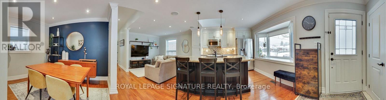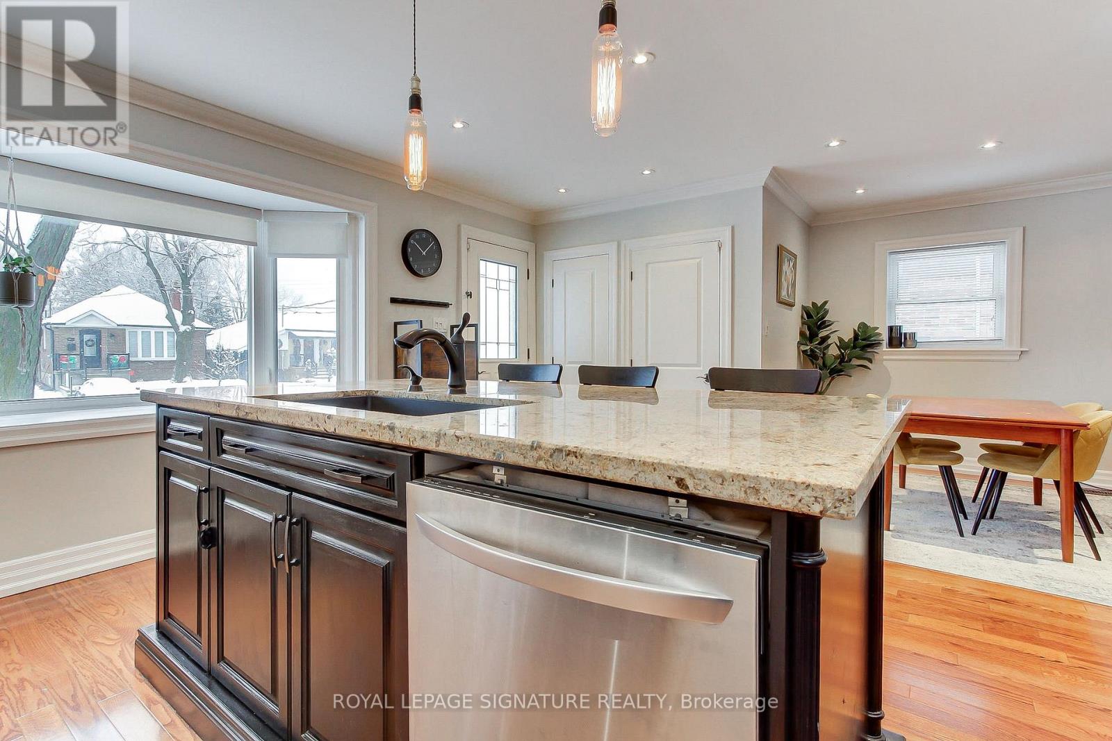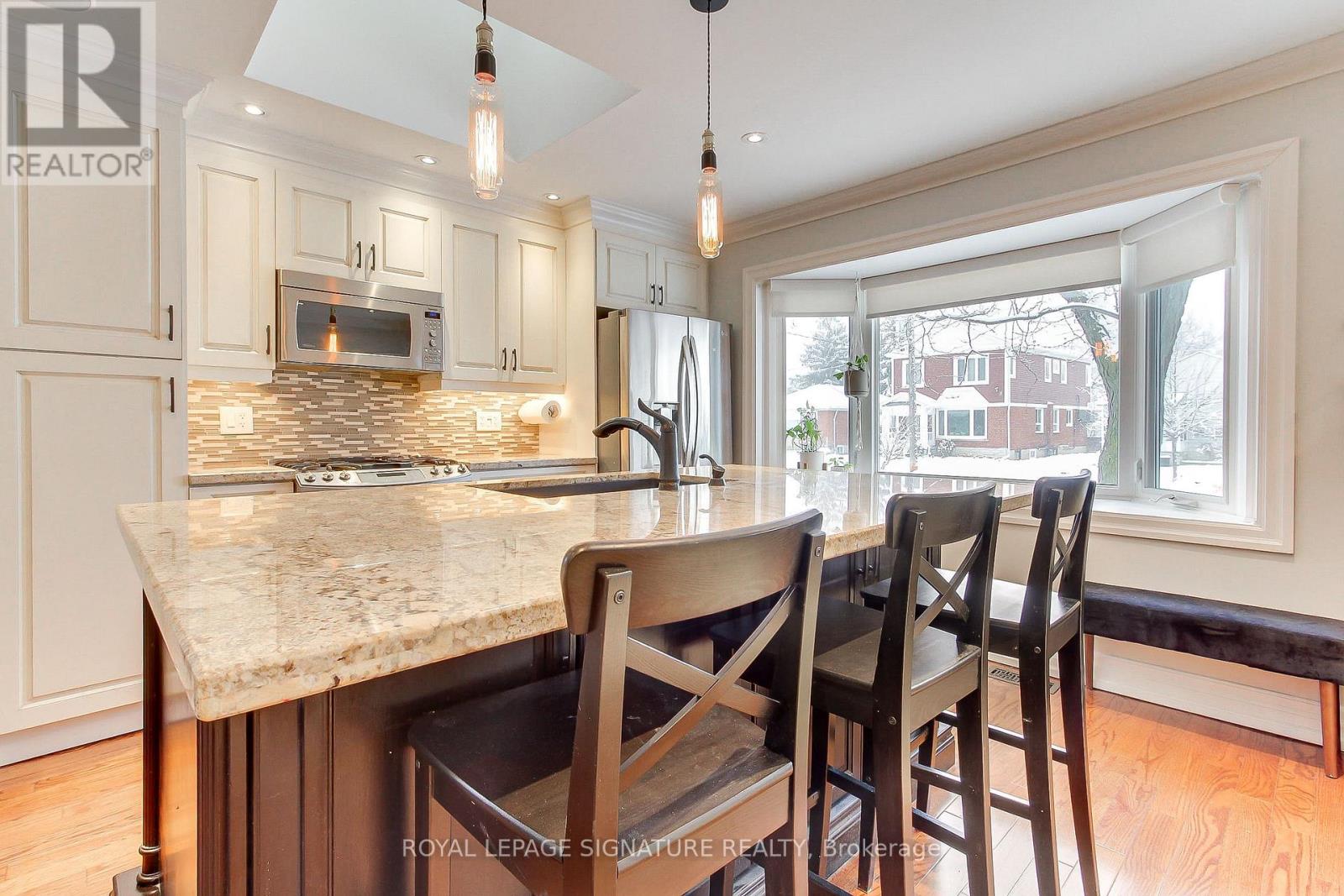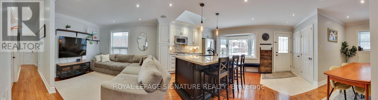 Welcome to this 3+1 bedroom detached bungalow located at 9 Rosemarie Drive, in the heart of Wexford, Scarborough.Step inside and feel instantly at home. The spacious open-concept main floor flows beautifully, showcasing rich hardwood floors, elegant crown moulding, and recessed pot lights throughout. A generous living and dining room provides the perfect setting for both formal gatherings and everyday relaxation.The heart of the home is the gorgeous eat-in kitchen, bathed in natural light from a large skylight and bay window. A sprawling center island with breakfast bar, stainless steel appliances (including a coveted gas stove), sleek pendant lighting, and ample cabinetry make this kitchen as functional as it is beautiful.Three well-proportioned bedrooms grace the main floor, including a tranquil primary bedroom with direct walkout to the sunny rear deck.The fully finished lower level adds incredible living space with a warm and inviting recreation room perfect for movie nights or a play area for the kids, a spacious fourth bedroom, a 4-piece bathroom and a stacked washer and dryer in the laundry area. A separate side entrance provides easy access and added flexibility.Outside, enjoy summer barbecues on the expansive deck overlooking the fully fenced backyard. Single attached garage plus private drive with parking for multiple cars.Perfectly located just minutes to top schools, parks, restaurants, Costco, Walmart, Parkway Mall, TTC, and quick access to the DVP and 401.Move-in ready, flooded with light, and brimming with updates-this charming bungalow truly checks every box. Come see it before it's gone! (id:51158)