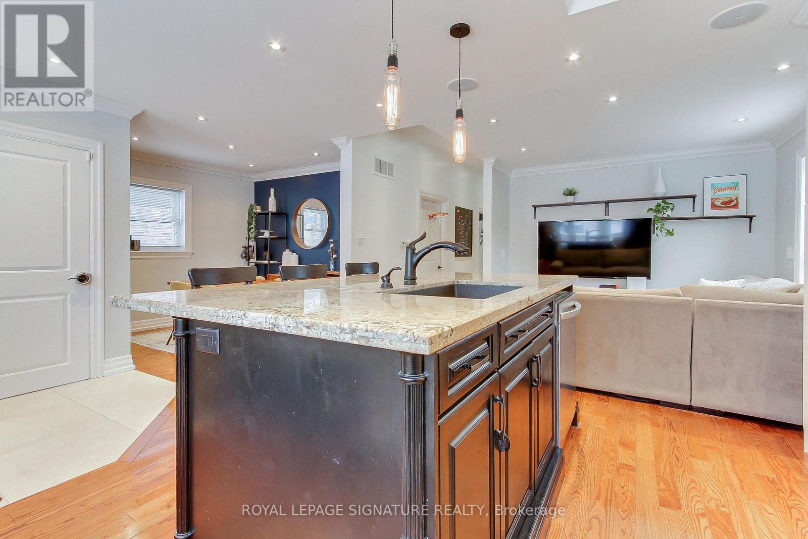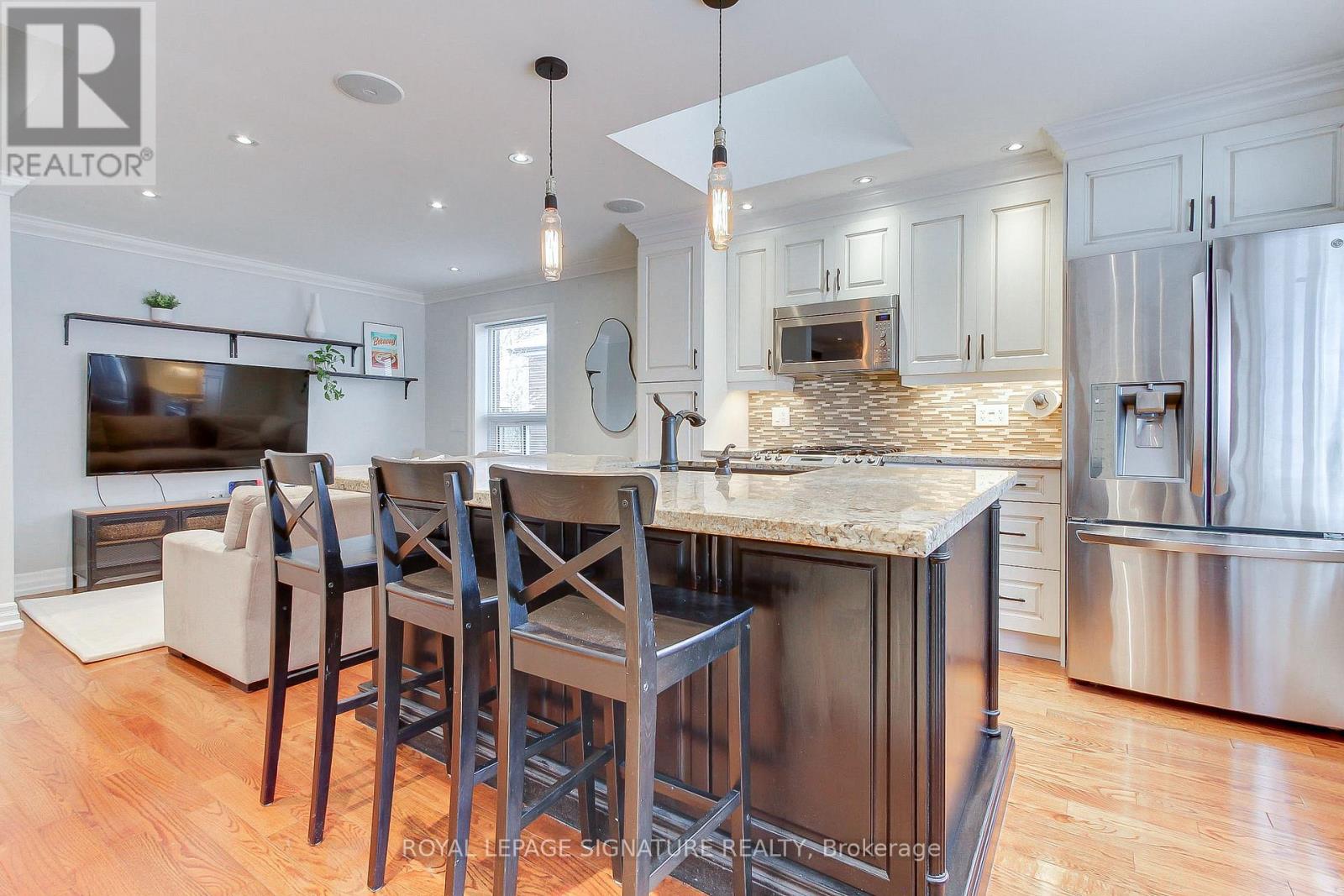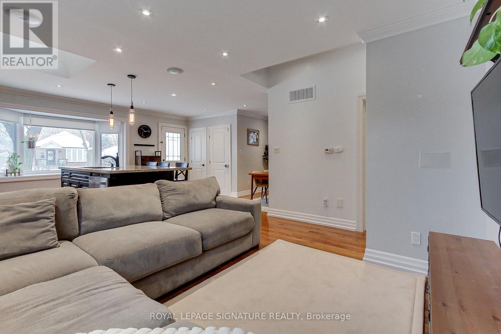 Welcome to this 3+1 bedroom detached bungalow located at 9 Rosemarie Drive, in the heart of Wexford, Scarborough.Step inside and feel instantly at home. The spacious open-concept main floor flows beautifully, showcasing rich hardwood floors, elegant crown moulding, and recessed pot lights throughout. A generous living and dining room provides the perfect setting for both formal gatherings and everyday relaxation.The heart of the home is the gorgeous eat-in kitchen, bathed in natural light from a large skylight and bay window. A sprawling center island with breakfast bar, stainless steel appliances (including a coveted gas stove), sleek pendant lighting, and ample cabinetry make this kitchen as functional as it is beautiful.Three well-proportioned bedrooms grace the main floor, including a tranquil primary bedroom with direct walkout to the sunny rear deck.The fully finished lower level adds incredible living space with a warm and inviting recreation room perfect for movie nights or a play area for the kids, a spacious fourth bedroom, a 4-piece bathroom and a stacked washer and dryer in the laundry area. A separate side entrance provides easy access and added flexibility.Outside, enjoy summer barbecues on the expansive deck overlooking the fully fenced backyard. Single attached garage plus private drive with parking for multiple cars.Perfectly located just minutes to top schools, parks, restaurants, Costco, Walmart, Parkway Mall, TTC, and quick access to the DVP and 401.Move-in ready, flooded with light, and brimming with updates-this charming bungalow truly checks every box. Come see it before it's gone! (id:51158)