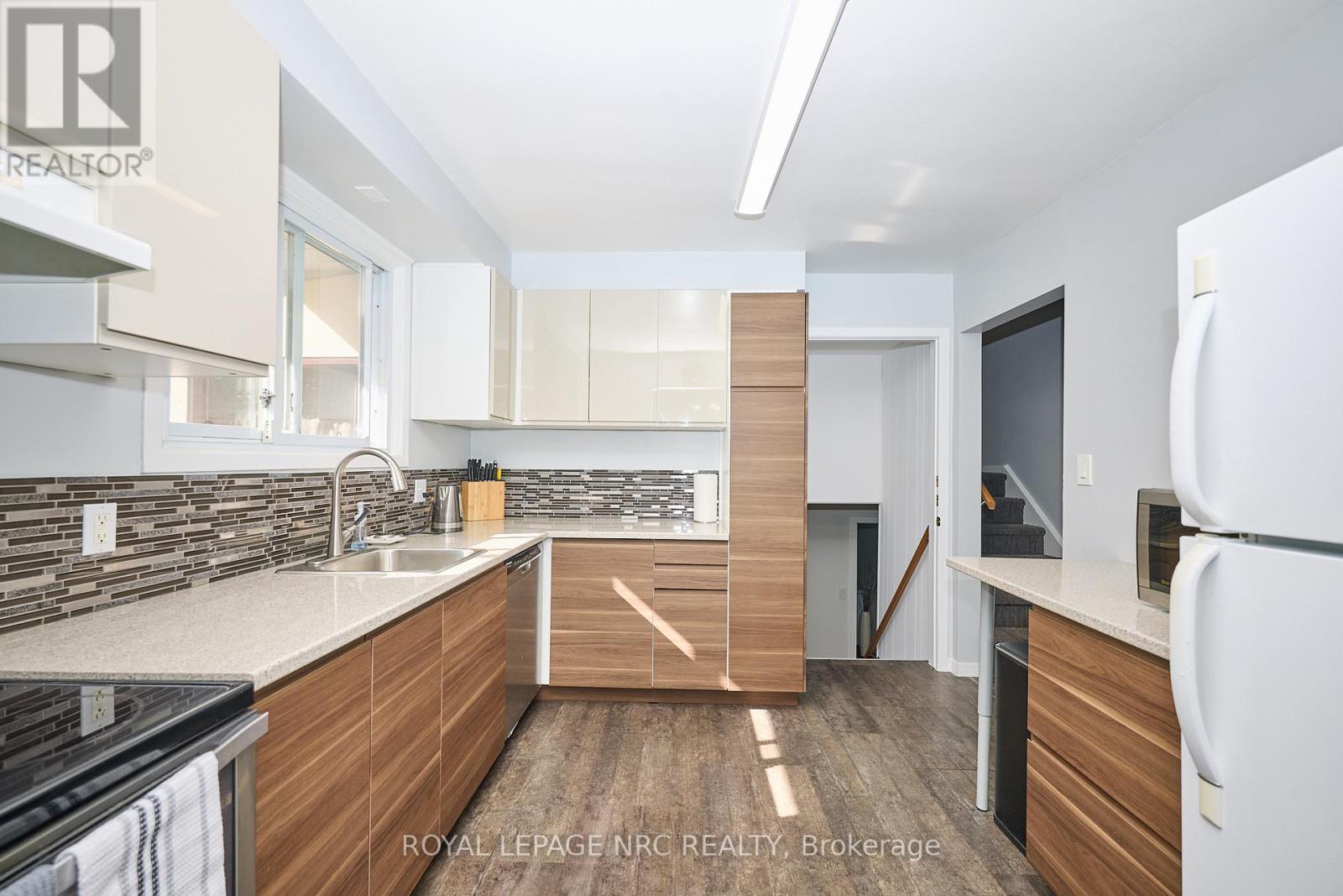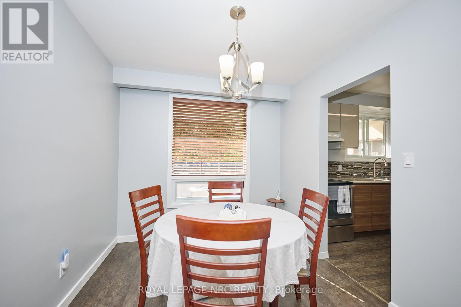 Welcome to this beautifully maintained 4-level side split in one of St. Catharines most desirable north-end neighbourhoods. Featuring 3+1 bedrooms, 1.5 baths, an attached single-car garage, and a spacious front porch perfect for relaxing and enjoying your morning coffee, this home combines comfort, charm, and convenience. The main floor offers a bright living room, a modern kitchen (updated in 2017), and a cozy dining area ideal for family gatherings. Upstairs, you'll find three well-sized bedrooms and a 4-piece bath. The lower level includes a fourth bedroom (currently used as an office), a 2-piece bath, and a walk-up to your enclosed 3-season porch the perfect space to unwind while overlooking your above-ground pool and private backyard. The fourth level features a large games/recreation room, cold cellar, and utility/laundry room with extra storage. Recent updates include a furnace (2020) and air conditioner (2021) for added peace of mind. Backing directly onto Carleton Public School and the Carleton YMCA Child Care Centre, this home offers unbeatable convenience. Close to bus routes, shopping, parks, and schools, its an ideal choice for families seeking both tranquility and accessibility in the North End. Don't miss this opportunity to call 9 Royal Manor Drive your new home! (id:51158)