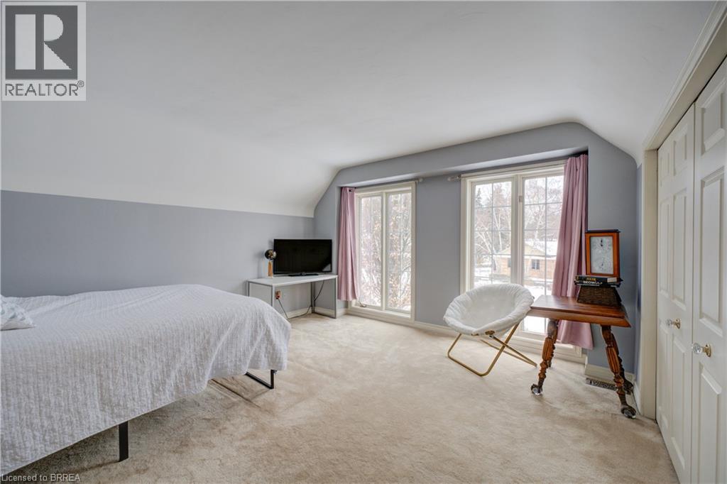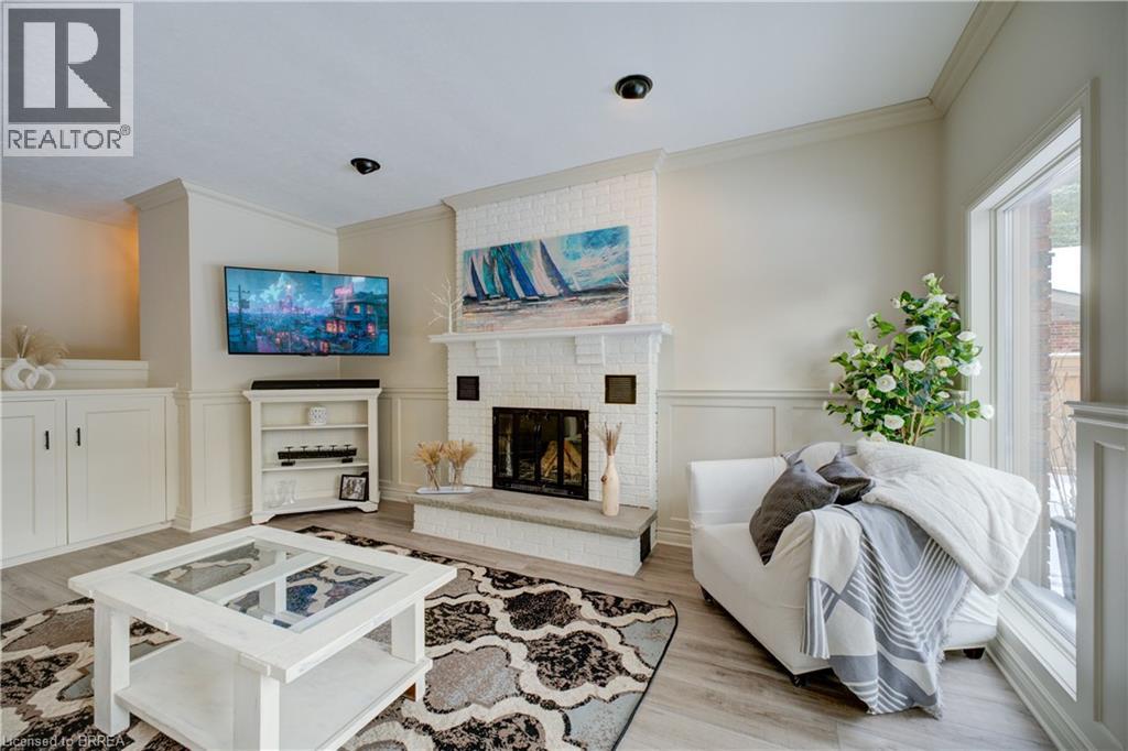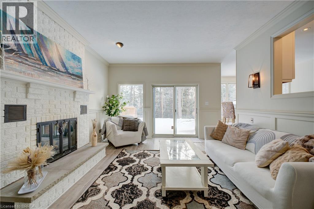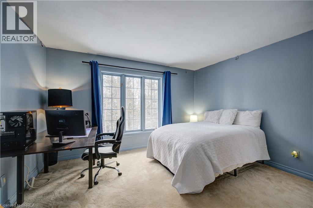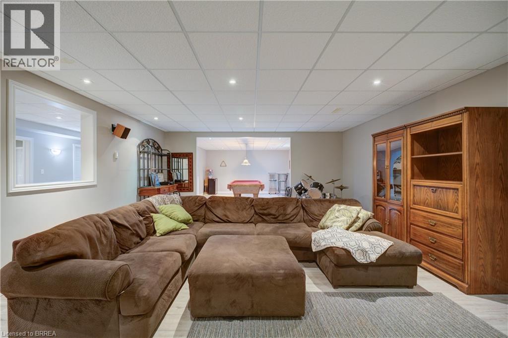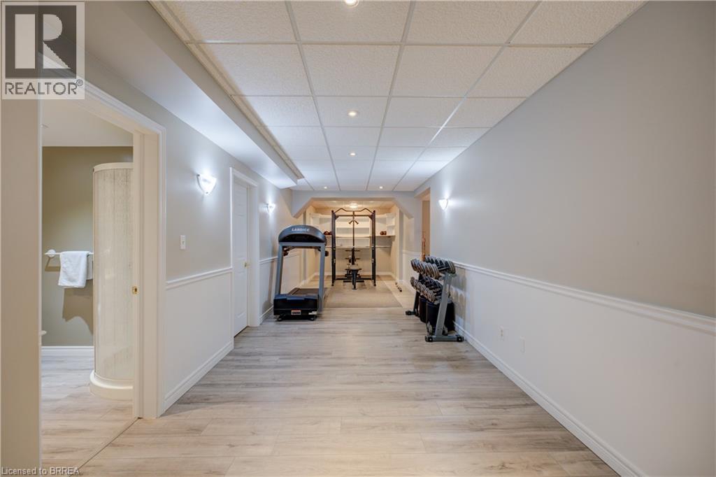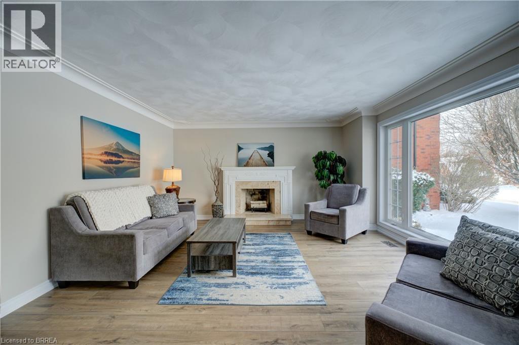Prestigious Court location close to Brantford Golf and Country Club. Private ravine lot with newer inground pool. Grand entranceway with spiral staircase and vaulted ceilings. Front sitting room with large window and natural wood fireplace. Main floor office with beautiful wood inlays and built-in shelves and cabinets. Large formal dining room with bay window overlooking rear wooded area. Newly renovated kitchen, eat-in area with three walls of windows overlooking inground pool. Sunken main floor family room with natural wood fireplace. Beautiful main floor, laundry room with built-in overhead cabinets and lowers. Upper level: Four spacious bedrooms. Large primary suite with bay window overlooking ravine, recently renovated 4pc bathroom with jet, soaker tub, and glass shower, his and her sinks and walk-in closet. Second level: 4pc bathroom recently renovated. Large renovated bright lower level. Rec room with gas fireplace and pool table area, separate home gym and three-piece bathroom. Fully fenced rear yard with newer, inground pool 2023, hot tub with gazebo and stamped concrete; all overlooking picturesque private wooded ravine. (id:51158)