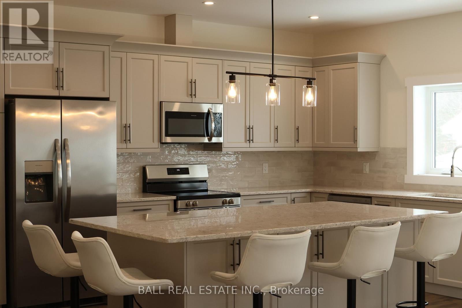 Check out this beauty! 9 Williams Drive in Bancroft - a beautifully crafted home built in 2024 with exceptional attention to detail including high ceilings, the perfect floor plan and high end fixtures. Nestled in a quiet subdivision on a peaceful cul-de-sac. The main floor welcomes you with a spacious foyer featuring double closets, providing ample storage right at the entrance. The heart of the home is the bright, open-concept living space with a walkout to the back deck - perfect for entertaining or relaxing. The custom kitchen is a standout, showcasing quartz countertops, stainless steel appliances, and a large island with additional seating. Convenient main floor laundry includes built-in cabinetry and a laundry sink. The primary bedroom is a true retreat, offering generous space and a luxurious four-piece ensuite complete with a soaker tub and a separate shower. A second bedroom and two piece bath completes the main level. Downstairs, the fully finished lower level features a massive rec room, two additional large bedrooms, a full four-piece bathroom with double vanity, utility area, and plenty of storage throughout! Heated with a propane furnace and equipped with central air, this home ensures year-round comfort. Attached garage, high-speed internet, full cell service, municipal garbage and recycling, and walking distance to all Bancroft amenities, this is a fantastic opportunity to enjoy modern living in a family-friendly neighborhood. (id:51158)