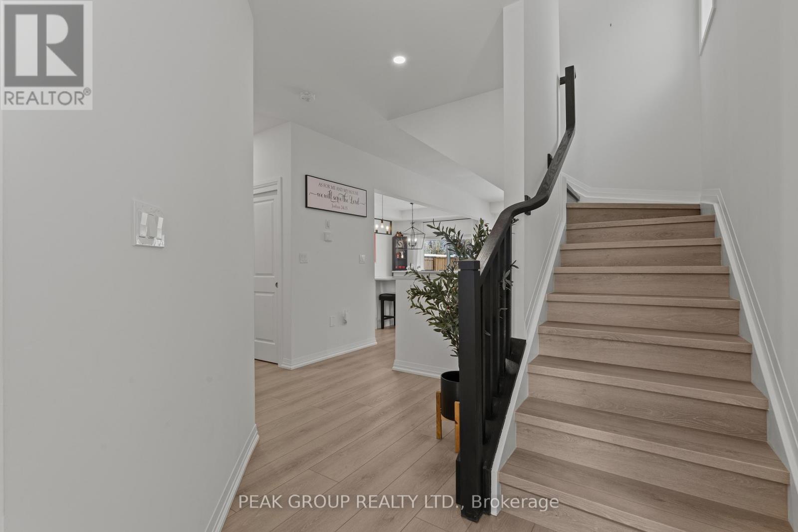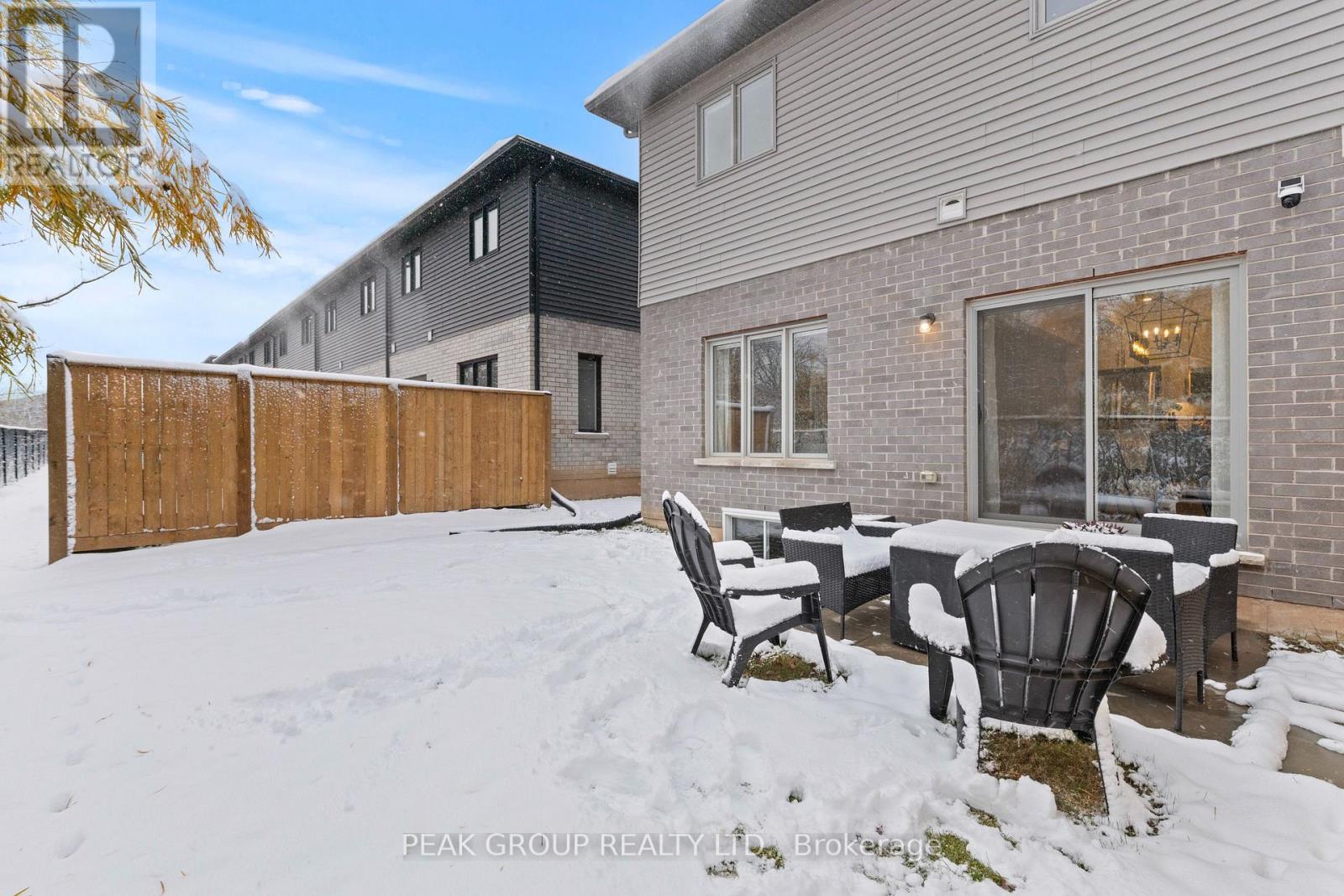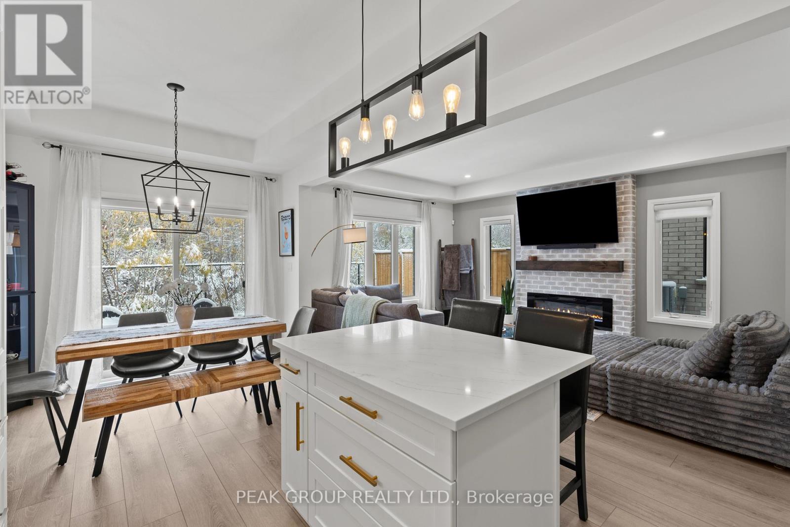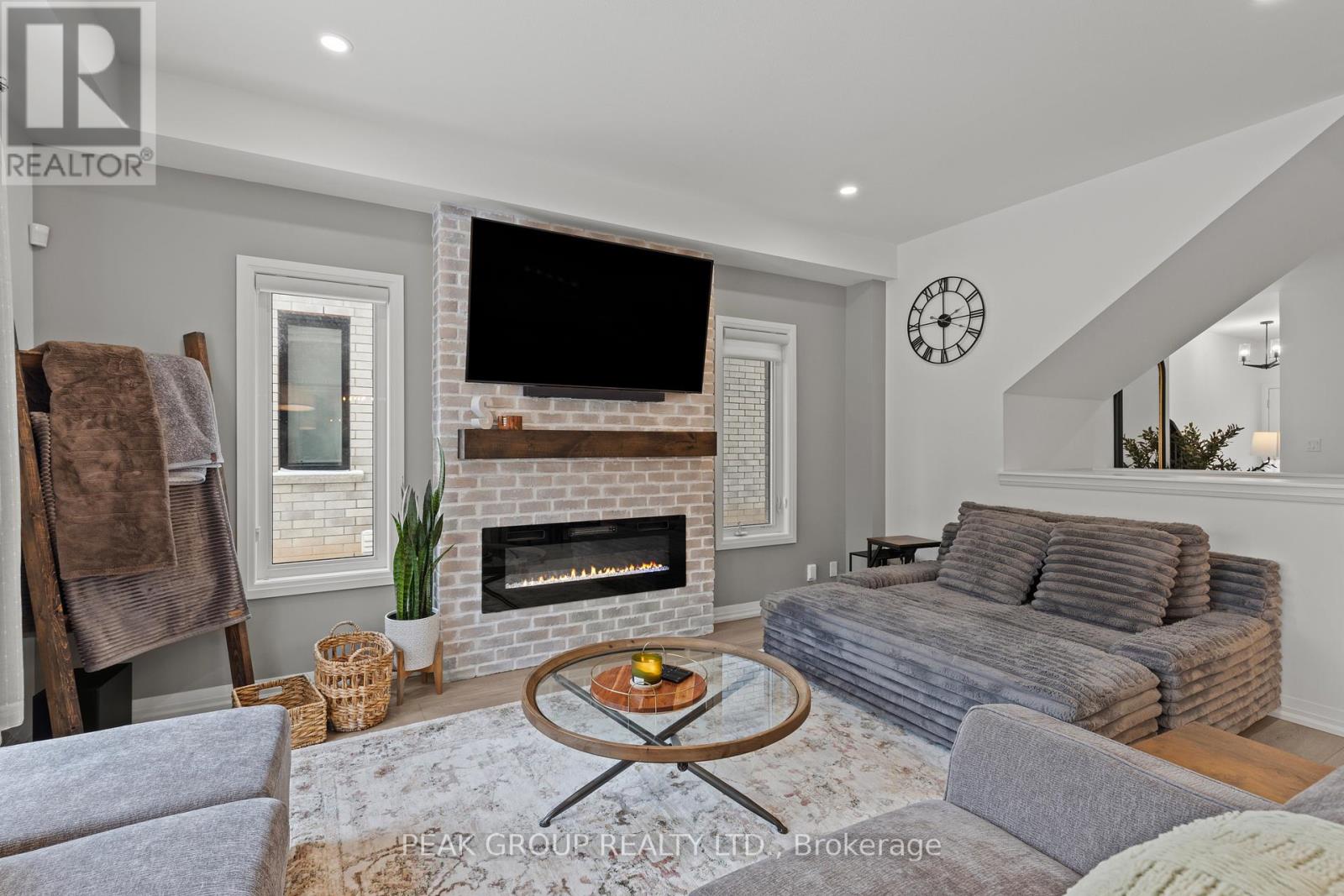 Modern Luxury Meets Everyday Comfort in this 2023-built end unit by Mountainview Homes. Thoughtfully designed with both style and function in mind, this modern two-storey residence is the perfect home for you!Step inside to an open-concept main floor featuring luxury vinyl flooring, a designer kitchen with chic gold hardware, quartz countertops, and a spacious island-ideal for entertaining family and friends. The dining area's double sliding doors open to a private backyard, with no rear neighbours, a serene forest view, and privacy fencing for peaceful outdoor enjoyment.The bright and inviting living room benefits from extra windows unique to this end unit, creating a space filled with natural light. A modern brick accent wall frames the built-in electric fireplace, offering the perfect spot for your TV and adding a stylish focal point to the home. A convenient 2-piece powder room completes the main floor.Upstairs, discover four spacious bedrooms, including a primary suite with a walk-in closet and a beautifully appointed 3-piece ensuite. The second floor also offers a full 4-piece main bathroom and a dedicated laundry area for ultimate convenience. The builders choice of large windows, really make the space feel, bright and spacious! The unfinished basement provides potential to complete additional living space. it's a blank canvas for your dream rec room, home gym, or guest suite.The basement includes a rough-in for a future bathroom.Enjoy the benefits of a double car garage, upscale finishes, and a quiet setting surrounded by nature-all within close proximity to Niagara's best schools, amenities, and trails.The community includes luxuries of grass and snow removal for a low monthly maintenance cost of $112. Book your showing today! (id:51158)