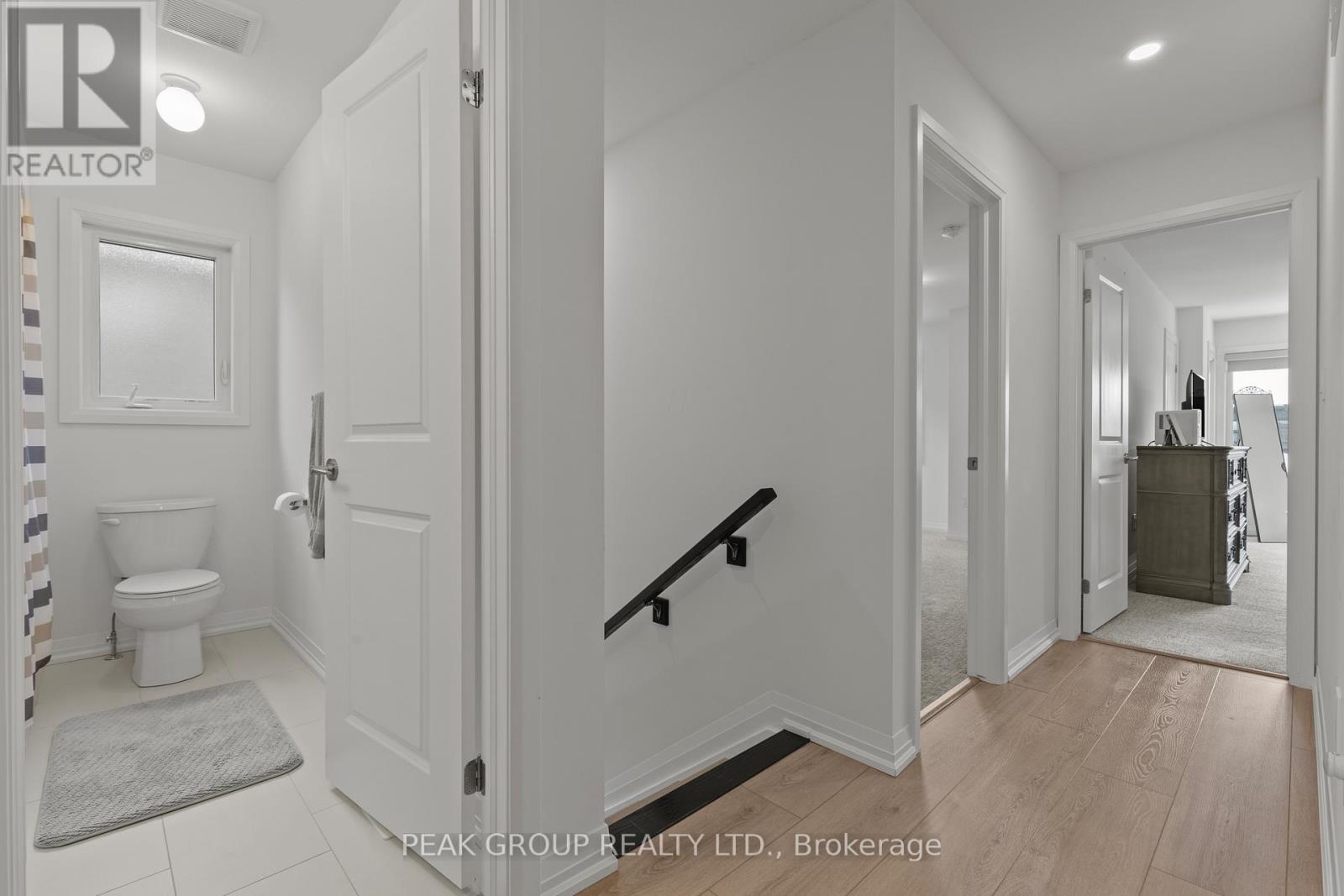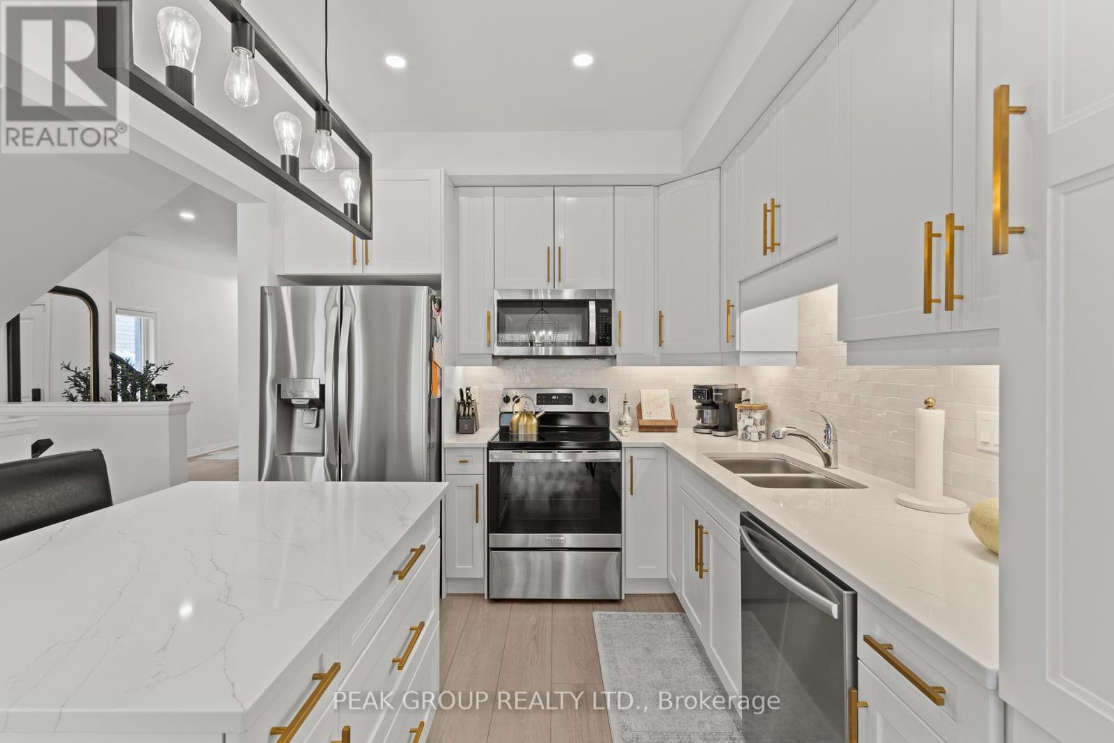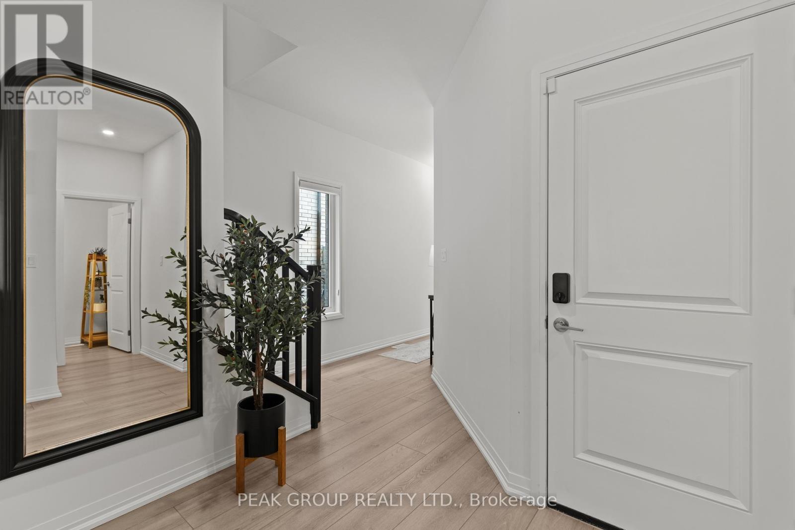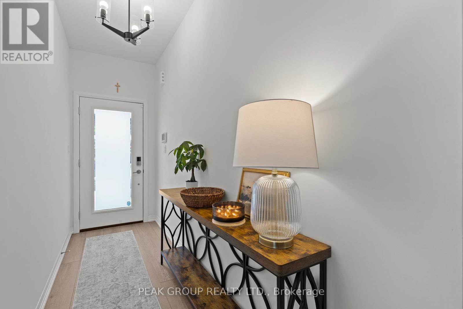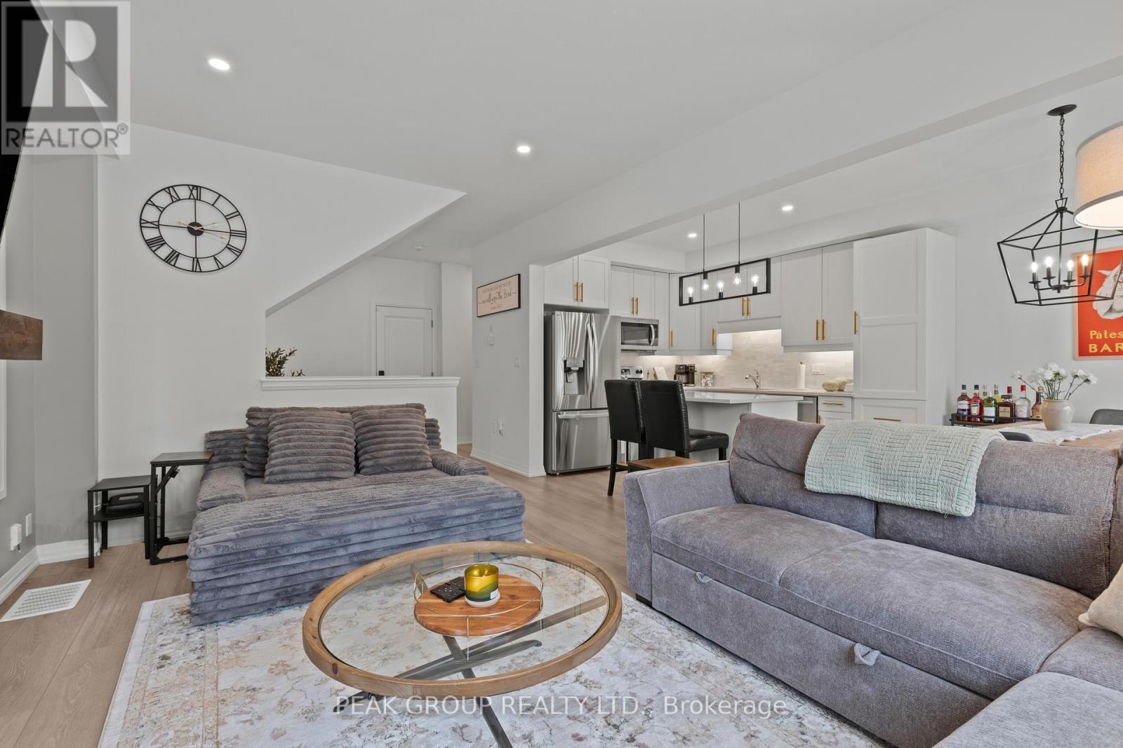 Modern Luxury Meets Everyday Comfort in this 2023-built end unit by Mountainview Homes. Thoughtfully designed with both style and function in mind, this modern two-storey residence is the perfect home for you!Step inside to an open-concept main floor featuring luxury vinyl flooring, a designer kitchen with chic gold hardware, quartz countertops, and a spacious island-ideal for entertaining family and friends. The dining area's double sliding doors open to a private backyard, with no rear neighbours, a serene forest view, and privacy fencing for peaceful outdoor enjoyment.The bright and inviting living room benefits from extra windows unique to this end unit, creating a space filled with natural light. A modern brick accent wall frames the built-in electric fireplace, offering the perfect spot for your TV and adding a stylish focal point to the home. A convenient 2-piece powder room completes the main floor.Upstairs, discover four spacious bedrooms, including a primary suite with a walk-in closet and a beautifully appointed 3-piece ensuite. The second floor also offers a full 4-piece main bathroom and a dedicated laundry area for ultimate convenience. The builders choice of large windows, really make the space feel, bright and spacious! The unfinished basement provides potential to complete additional living space. it's a blank canvas for your dream rec room, home gym, or guest suite.The basement includes a rough-in for a future bathroom.Enjoy the benefits of a double car garage, upscale finishes, and a quiet setting surrounded by nature-all within close proximity to Niagara's best schools, amenities, and trails.The community includes luxuries of grass and snow removal for a low monthly maintenance cost of $112. Book your showing today! (id:51158)