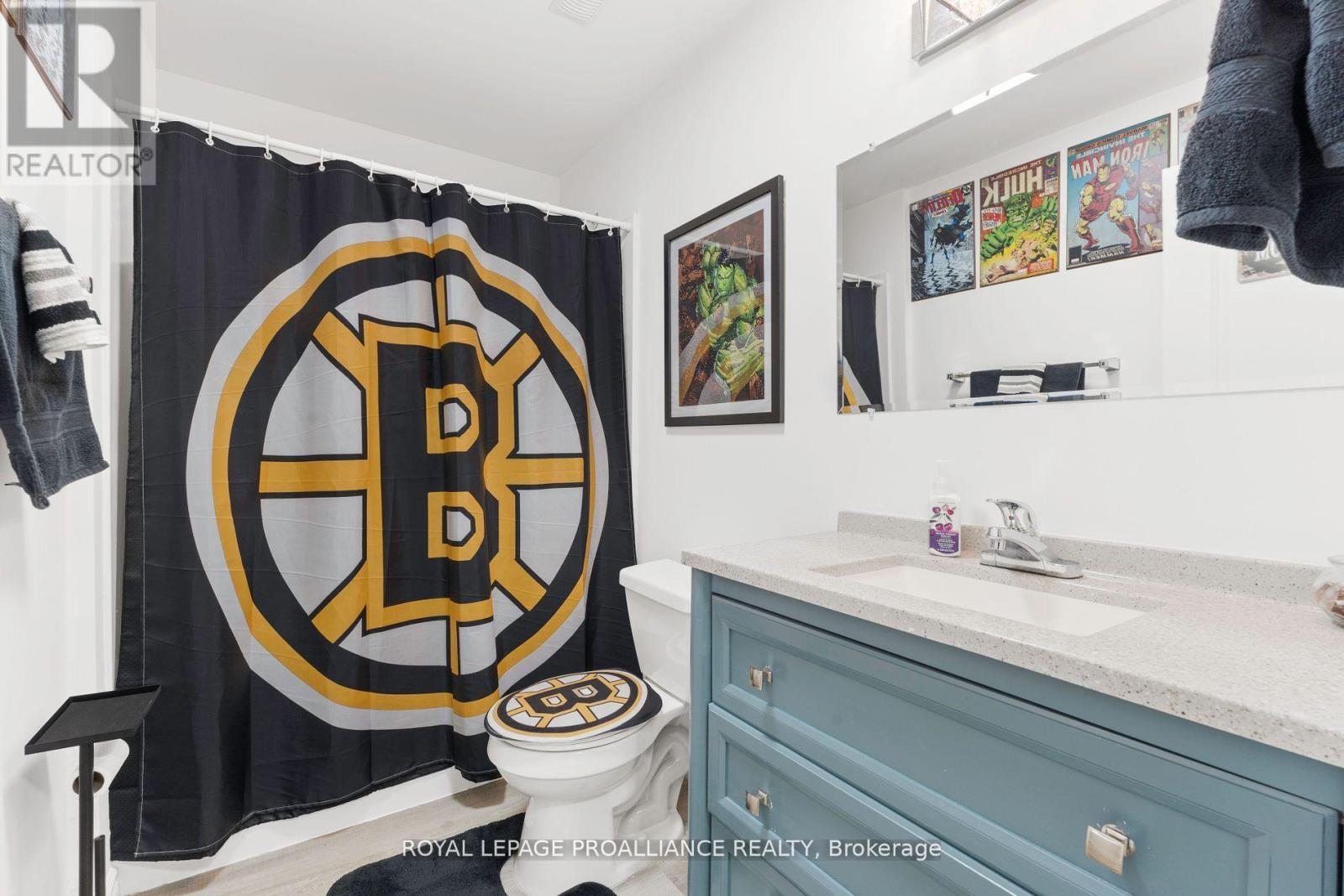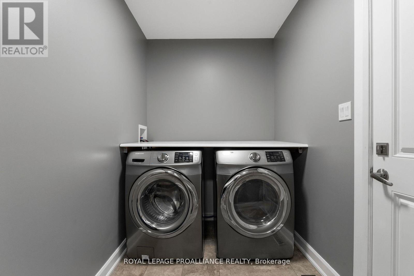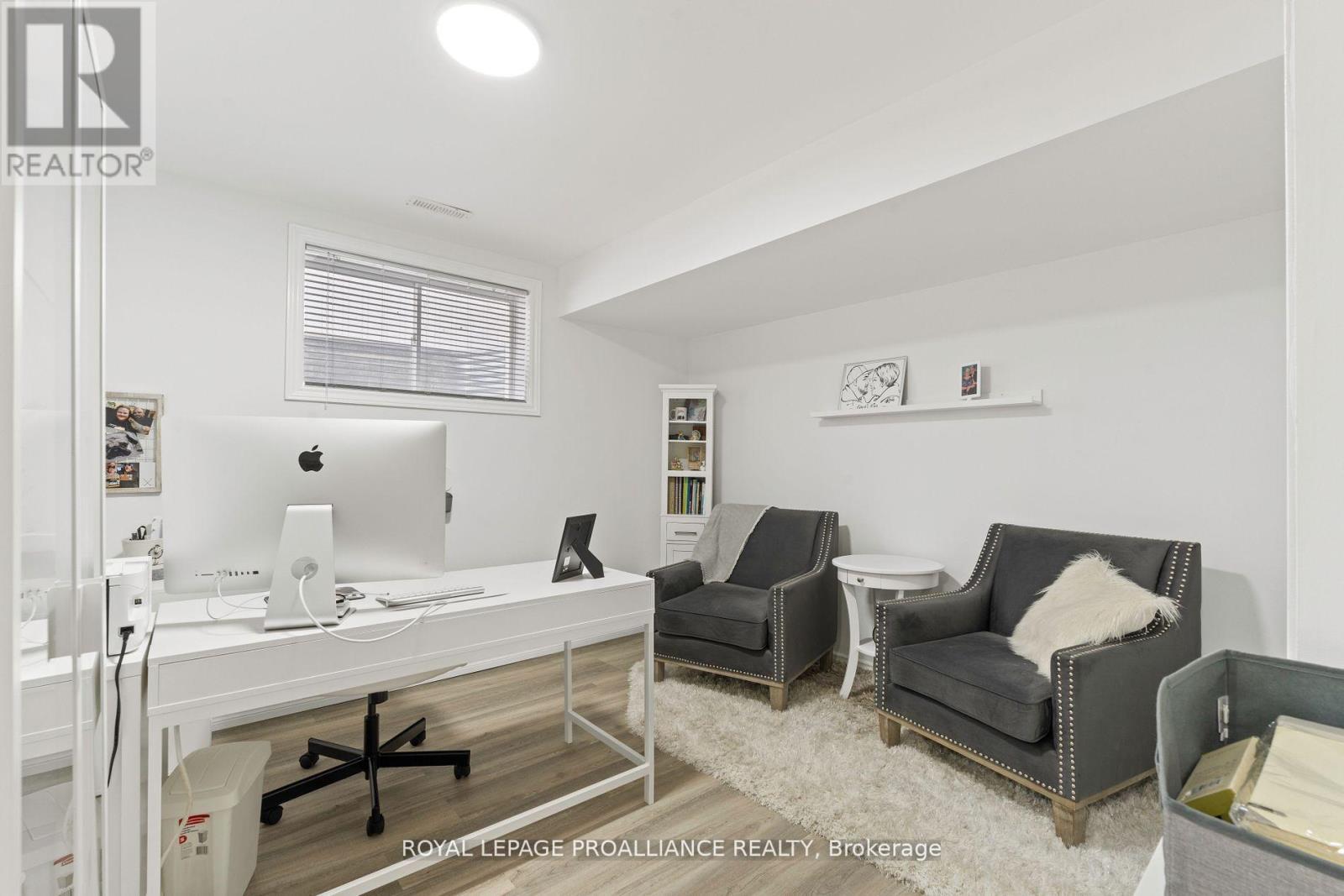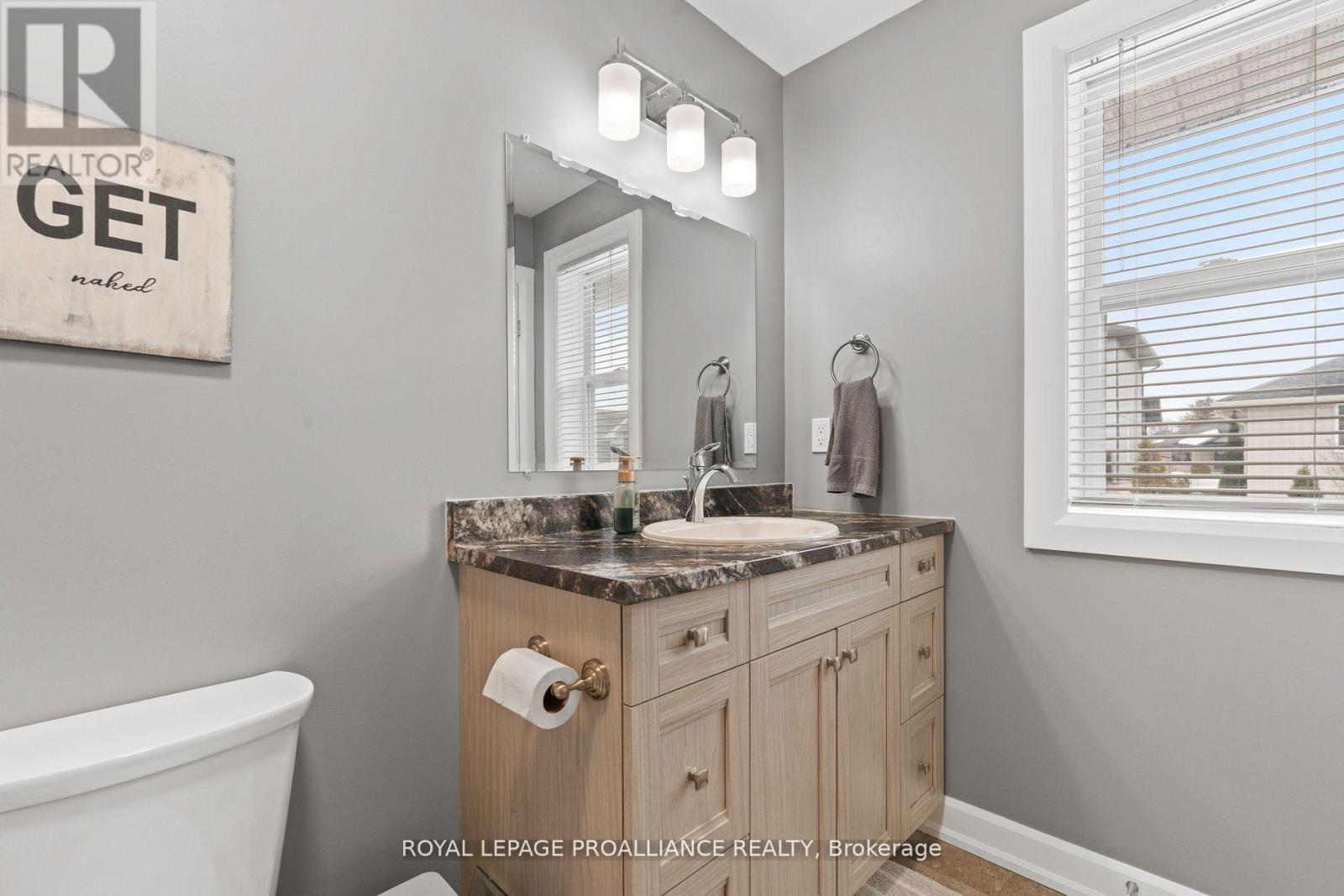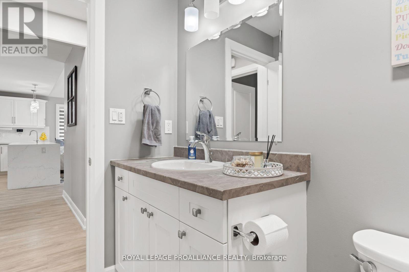 Welcome to 90 Aldersgate Drive, a stunning 1437 sq ft bungalow built by Duvanco Homes in 2019. This meticulously designed home offers an open-concept floor plan, filled with natural light and featuring modern, luxurious finishes throughout. The heart of the home is the gourmet kitchen, which showcases a beautiful quartz countertop with a striking waterfall edge, a spacious breakfast bar, a walk-in pantry, and high-end stainless steel appliances, including a gas stove-perfect for cooking and entertaining. The formal dining area is ideal for family gatherings, while the adjacent kitchen and living area create an inviting space for relaxation and socializing. The living room is highlighted by a custom-built wall unit with an electric fireplace, and patio doors that lead out to the back deck and yard, offering seamless indoor-outdoor living. The spacious primary bedroom is a true retreat, featuring a stylish main accent wall and a luxurious 4-piece en-suite bath. A second bedroom a main floor bath, and a laundry room with inside entry from the 1.5 car garage complete the main level. The fully finished lower level is perfect for additional living space, with a large rec room, two additional bedrooms, and a 4-piece bathroom. There's also a generous storage/utility room offering plenty of room for all your storage needs. Located in a highly sought-after west-end subdivision, just minutes from Hwy 401 and CFB Trenton, this home is the ideal combination of comfort, style and convenience. Don't miss out on the opportunity to make this beautiful home yours. (id:51158)