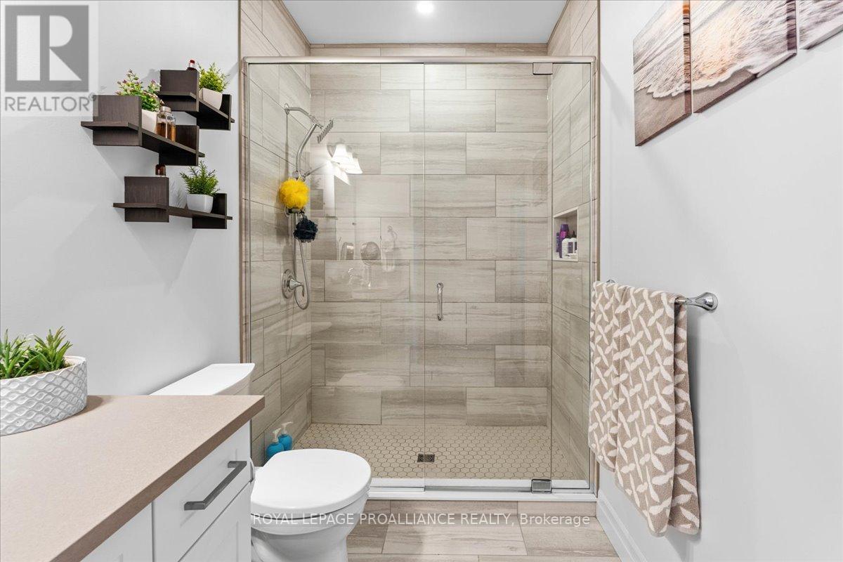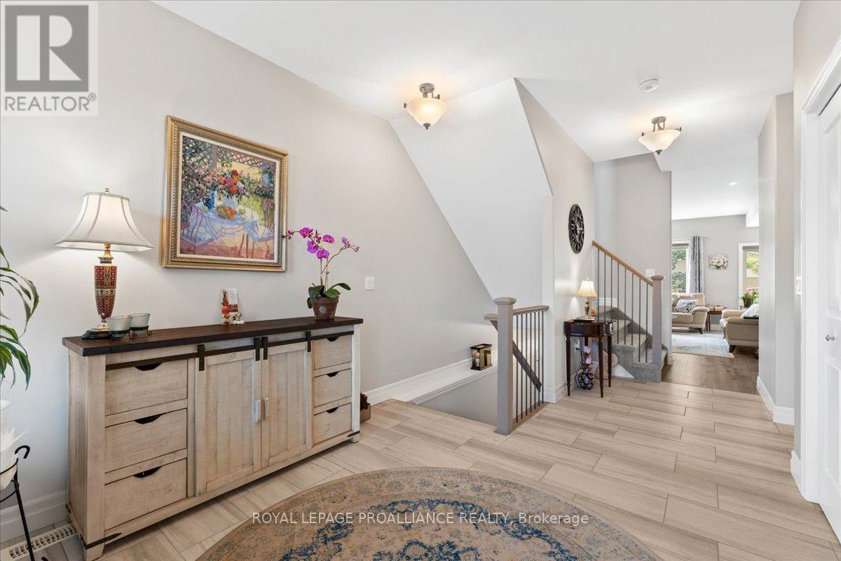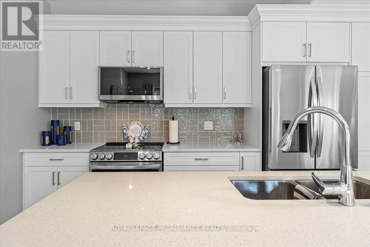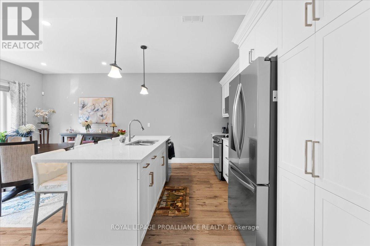 This stunning end unit townhome, crafted by Farnsworth Construction in 2022, is a true masterpiece. Nestled in a charming town of Stirling, it is surrounded by newly built homes and is conveniently located just a short drive from Belleville or Trenton. The residence boast three spacious bedrooms and three luxurious baths, each show casing high quality finishes that exude elegance. As you steps into the main level, a grand foyer with tile floors welcomes you. The kitchen features quartz countertops, a tile backsplash, and quality cabinetry with slow-close doors and drawers. The open-concept kitchen, dining, and great room area, with its 9' ceilings, beautiful stone wall accent, and electric fireplace, create an inviting and sophisticated ambiance. Oversized windows and patio doors flood the space with natural light, enhancing the home's warm and inviting atmosphere. Ascending to the second level, you'll find a generously sized master bedroom complete with a loads of natural light and a three-piece ensuite featuring a walk-in tiled shower. Two additional bedrooms and a four-piece bath complete this level, all adorned with stunning laminate flooring. Stepping outside, the backyard offers a private oasis with privacy fencing, mature trees, a beautiful patio, and breathtaking gardens. The town of Stirling is a treasure trove of local attractions, including the Stirling Festival Theatre, Oak Hills Golf with its 36 holes, Kings Mills Conservation Area, and Farm town Park. Outdoor enthusiasts will love the Trans Canada Trail for walking or ATVing. This home is a true gem and an absolute must-see. You will be captivated by its elegance and beauty! (id:51158)