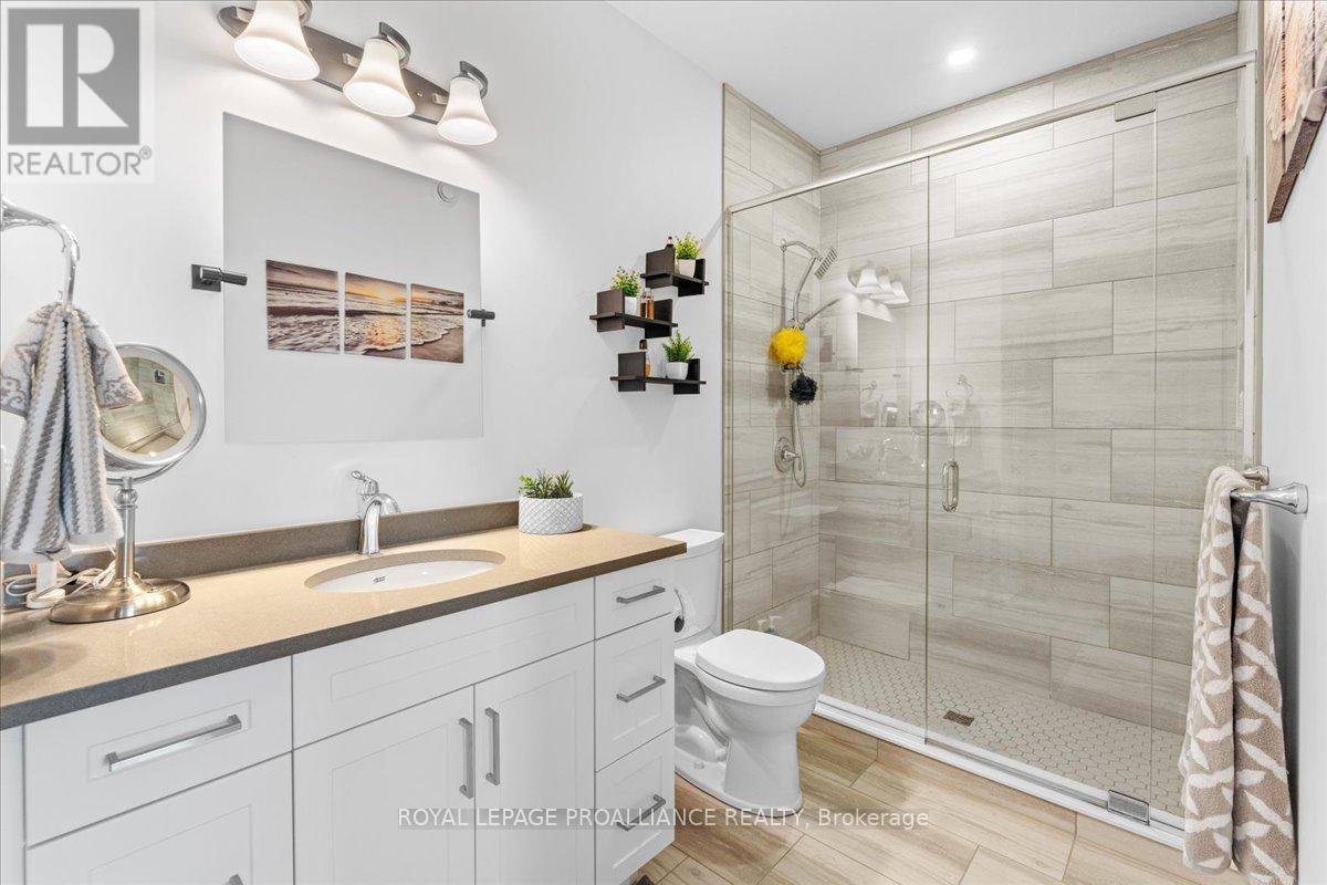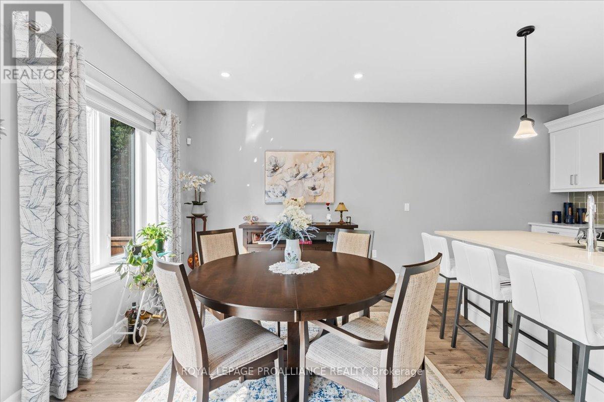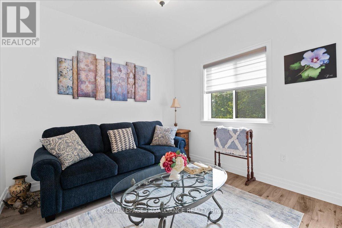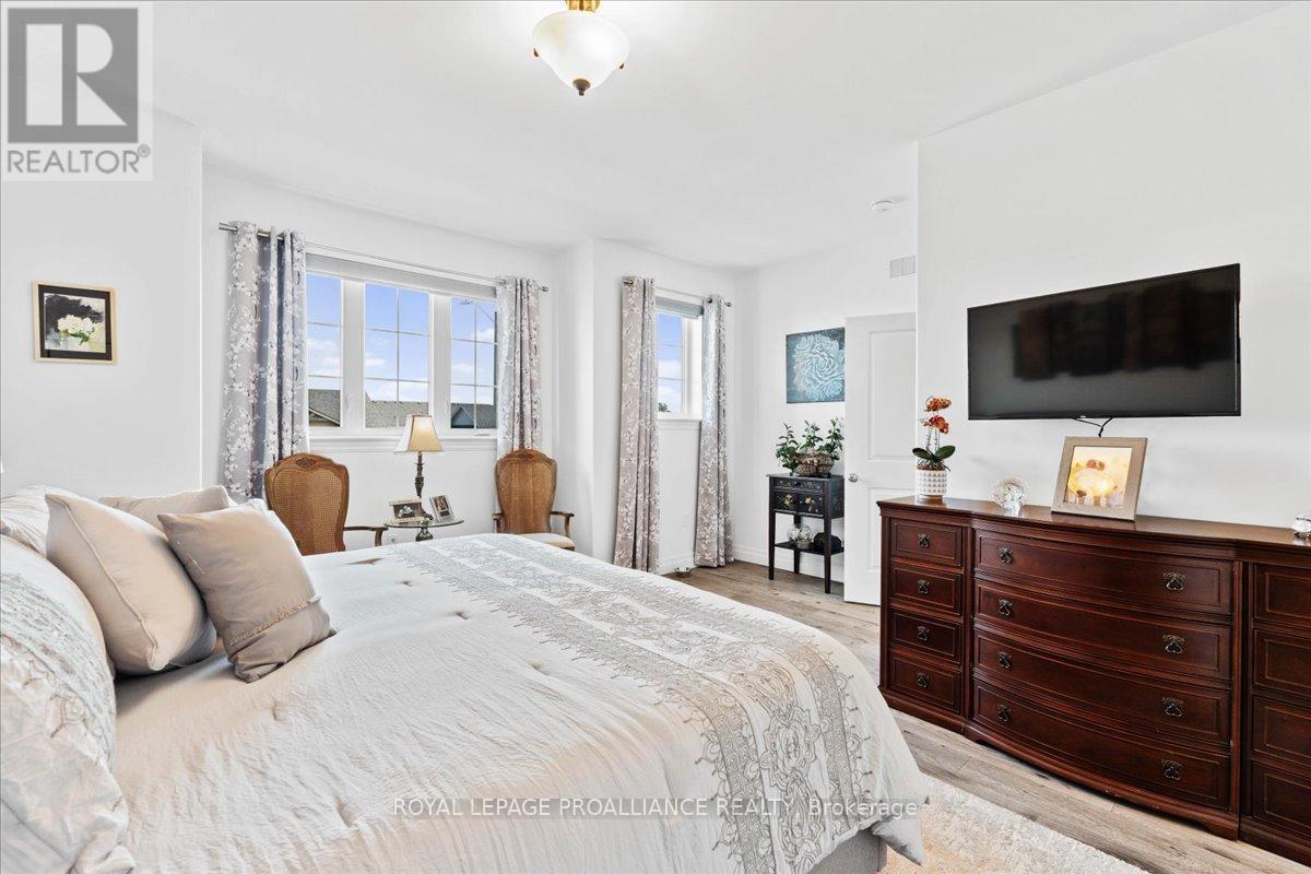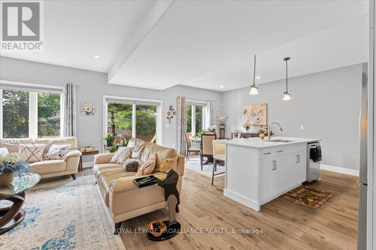 This stunning end unit townhome, crafted by Farnsworth Construction in 2022, is a true masterpiece. Nestled in a charming town of Stirling, it is surrounded by newly built homes and is conveniently located just a short drive from Belleville or Trenton. The residence boast three spacious bedrooms and three luxurious baths, each show casing high quality finishes that exude elegance. As you steps into the main level, a grand foyer with tile floors welcomes you. The kitchen features quartz countertops, a tile backsplash, and quality cabinetry with slow-close doors and drawers. The open-concept kitchen, dining, and great room area, with its 9' ceilings, beautiful stone wall accent, and electric fireplace, create an inviting and sophisticated ambiance. Oversized windows and patio doors flood the space with natural light, enhancing the home's warm and inviting atmosphere. Ascending to the second level, you'll find a generously sized master bedroom complete with a loads of natural light and a three-piece ensuite featuring a walk-in tiled shower. Two additional bedrooms and a four-piece bath complete this level, all adorned with stunning laminate flooring. Stepping outside, the backyard offers a private oasis with privacy fencing, mature trees, a beautiful patio, and breathtaking gardens. The town of Stirling is a treasure trove of local attractions, including the Stirling Festival Theatre, Oak Hills Golf with its 36 holes, Kings Mills Conservation Area, and Farm town Park. Outdoor enthusiasts will love the Trans Canada Trail for walking or ATVing. This home is a true gem and an absolute must-see. You will be captivated by its elegance and beauty! (id:51158)
