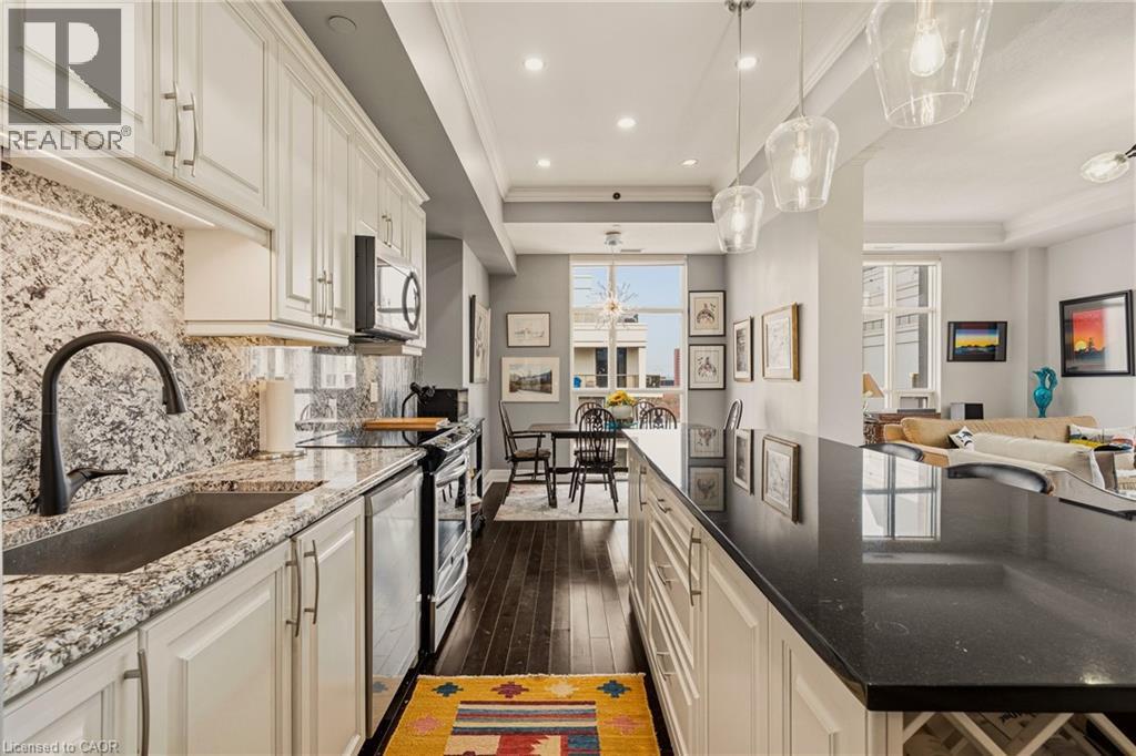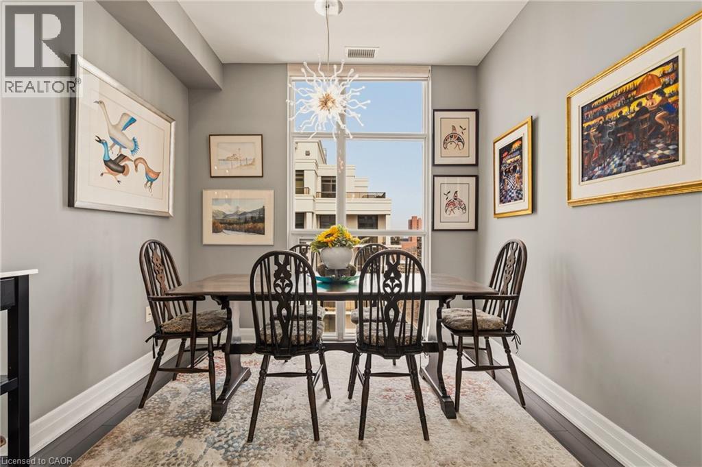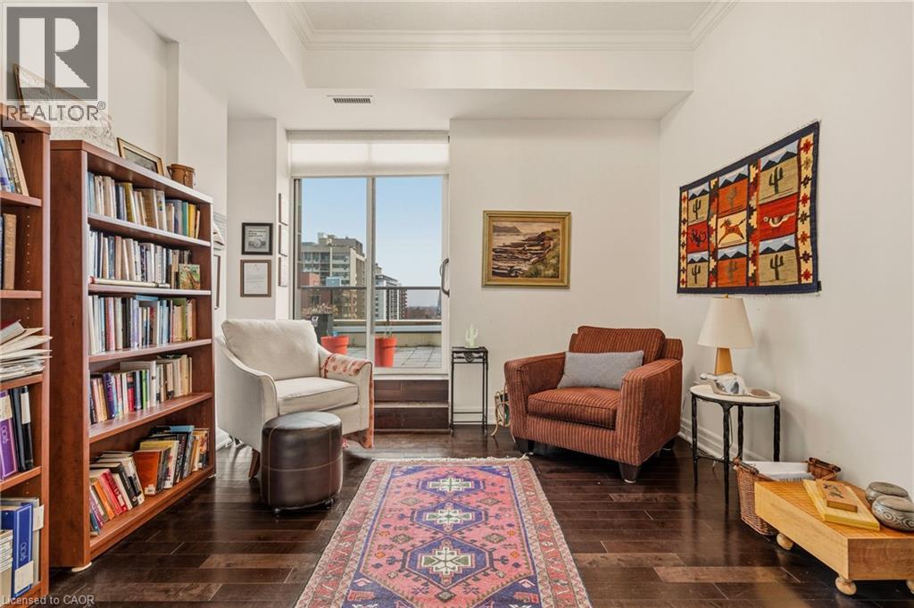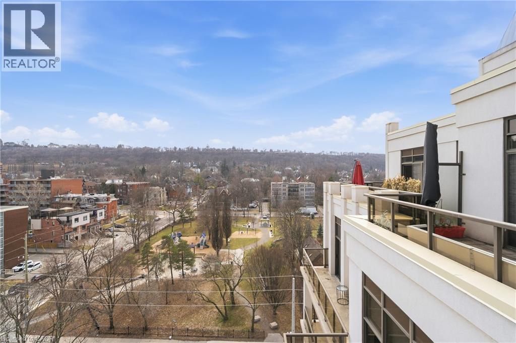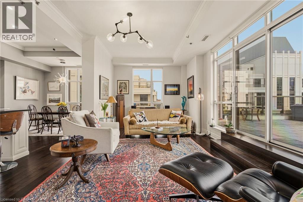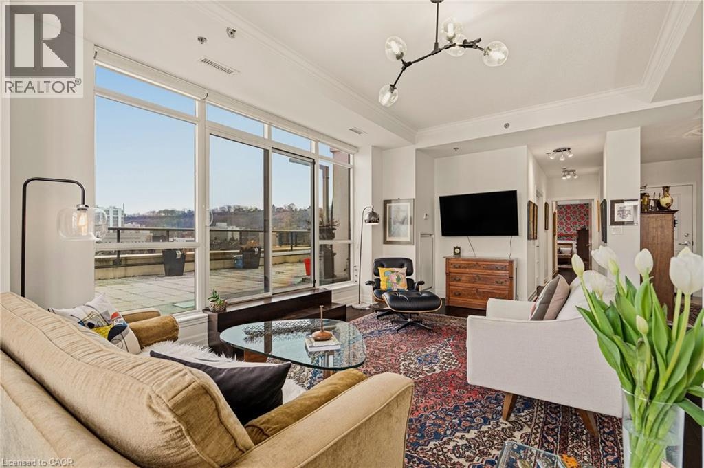 Perched above the vibrant core of downtown Hamilton, this extraordinary penthouse redefines condo living with an unmatched blend of space, style, and outdoor luxury. Spanning an impressive 1,740 sq ft, this rare corner suite is bathed in natural light and showcases sweeping south-eastern views of the city skyline and the stunning escarpment from virtually every angle. Step inside to a thoughtfully designed open-concept layout that offers both flow and distinction, with unique living spaces that cater to everyday comfort and effortless entertaining. The living room and kitchen are the heart of the home, beautifully appointed with high-end finishes, striking stone countertops, and a generous island with bar seating—perfect for gathering with friends or preparing meals in style. Floor-to-ceiling windows and a sliding glass walk-out seamlessly connect the indoors to an extraordinary outdoor experience. The crown jewel? An expansive private rooftop terrace of almost 1,400 sq ft—an entertainer’s dream and a true urban oasis accessible from the living room, den, and primary bedroom. Whether you're hosting summer soirées, enjoying morning coffee, or unwinding under the stars, this space delivers a lifestyle rarely found in condo living. The bright and spacious primary suite features a 3-piece ensuite and a large walk-in closet. A well-proportioned second bedroom offers its own private balcony retreat, while the versatile den is ideal for a home office or guest space. A 4-piece bathroom, and convenient in-suite laundry complete this exceptional offering. Residents also enjoy a Party Room, Exercise Room and dedicated Bike Room. All of this in a prime downtown location, steps to Hamilton’s best dining, shopping, schools, and transit—where city living meets elevated comfort in a truly one-of-a-kind penthouse residence. (id:51158)