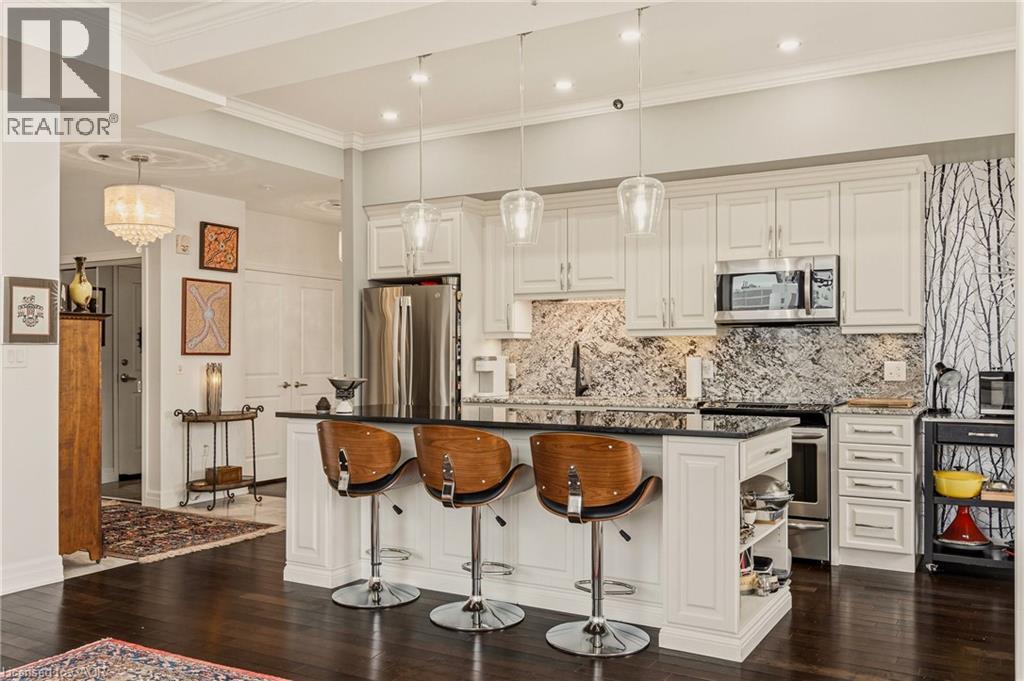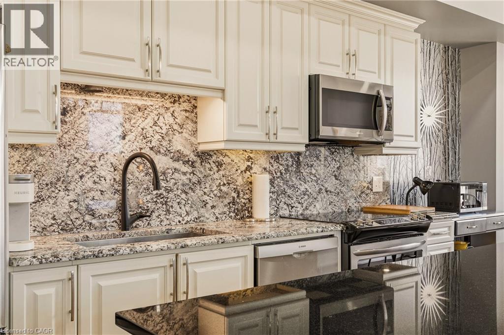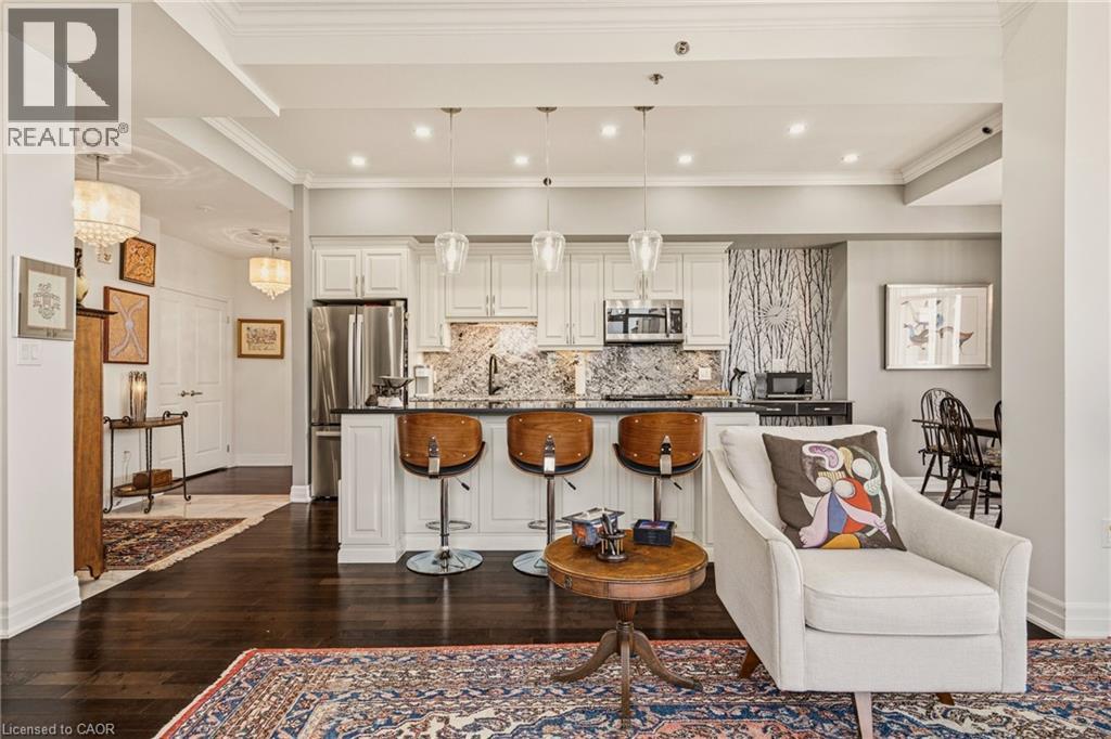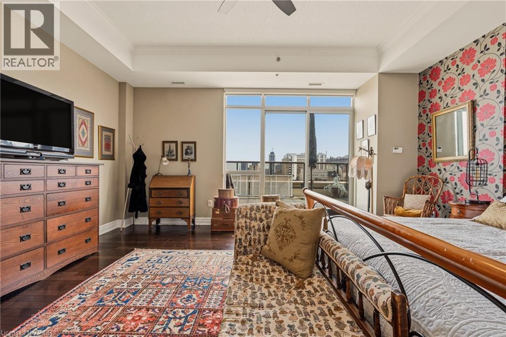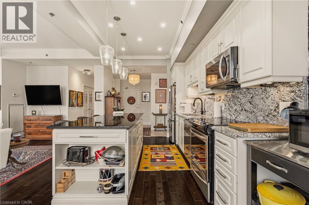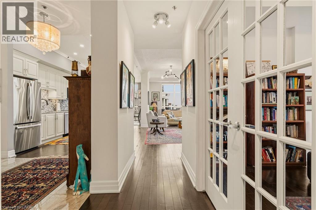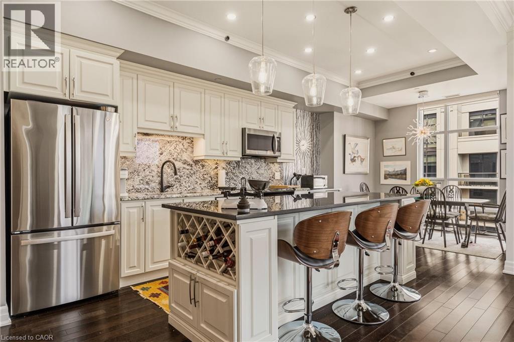 Perched above the vibrant core of downtown Hamilton, this extraordinary penthouse redefines condo living with an unmatched blend of space, style, and outdoor luxury. Spanning an impressive 1,740 sq ft, this rare corner suite is bathed in natural light and showcases sweeping south-eastern views of the city skyline and the stunning escarpment from virtually every angle. Step inside to a thoughtfully designed open-concept layout that offers both flow and distinction, with unique living spaces that cater to everyday comfort and effortless entertaining. The living room and kitchen are the heart of the home, beautifully appointed with high-end finishes, striking stone countertops, and a generous island with bar seating—perfect for gathering with friends or preparing meals in style. Floor-to-ceiling windows and a sliding glass walk-out seamlessly connect the indoors to an extraordinary outdoor experience. The crown jewel? An expansive private rooftop terrace of almost 1,400 sq ft—an entertainer’s dream and a true urban oasis accessible from the living room, den, and primary bedroom. Whether you're hosting summer soirées, enjoying morning coffee, or unwinding under the stars, this space delivers a lifestyle rarely found in condo living. The bright and spacious primary suite features a 3-piece ensuite and a large walk-in closet. A well-proportioned second bedroom offers its own private balcony retreat, while the versatile den is ideal for a home office or guest space. A 4-piece bathroom, and convenient in-suite laundry complete this exceptional offering. Residents also enjoy a Party Room, Exercise Room and dedicated Bike Room. All of this in a prime downtown location, steps to Hamilton’s best dining, shopping, schools, and transit—where city living meets elevated comfort in a truly one-of-a-kind penthouse residence. (id:51158)