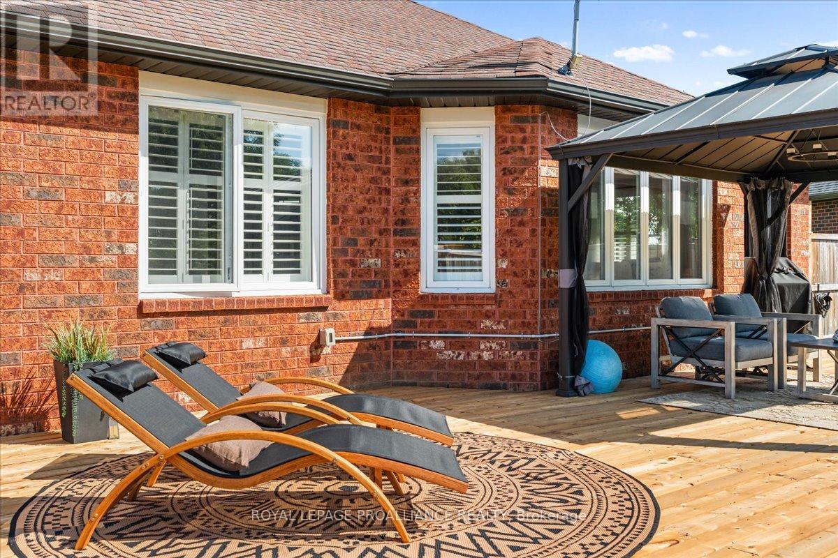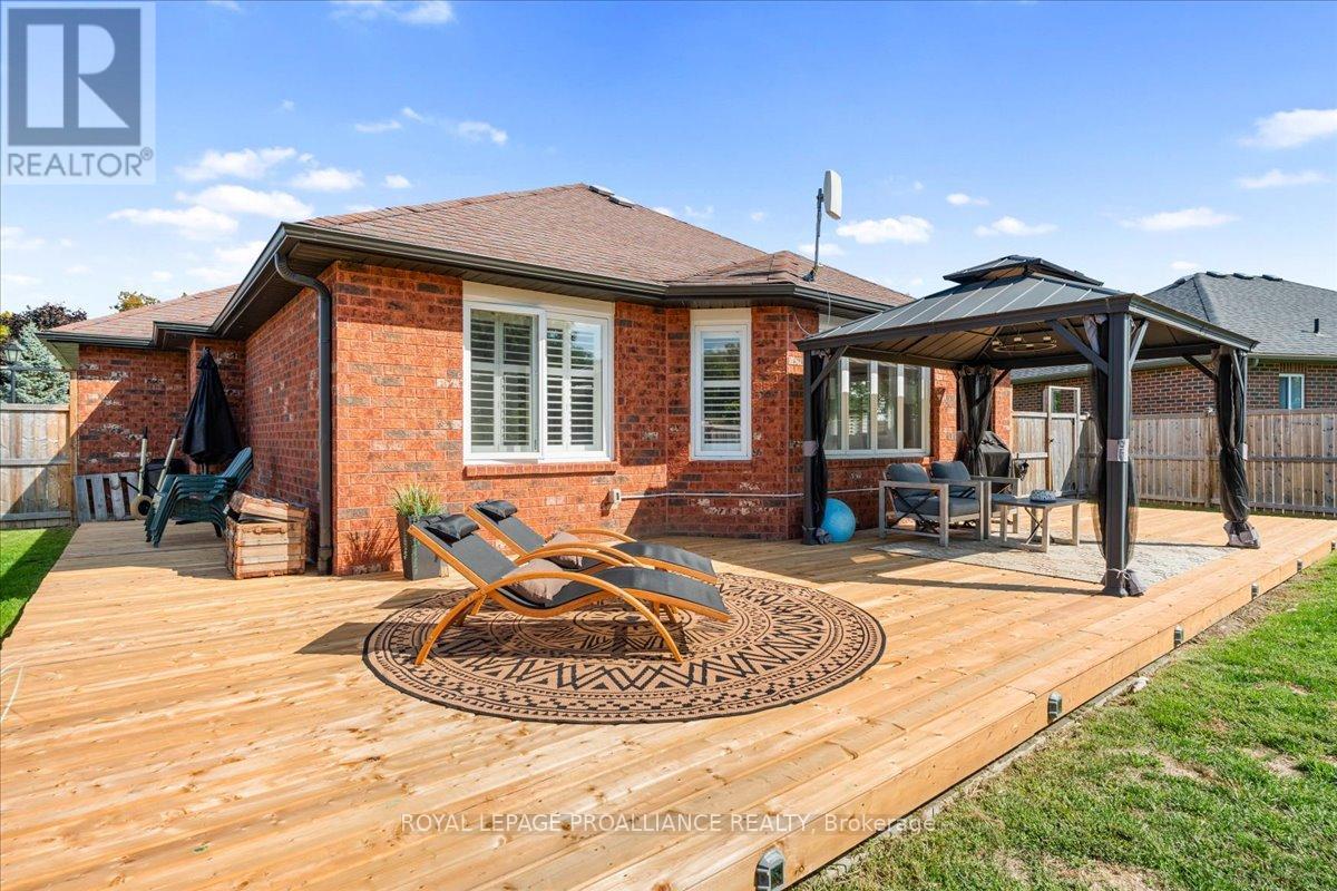 SHOW CASE! Solid 2+1 bedroom brick bungalow in exclusive Campbellford neighbourhood. Quiet Cul-de-Sac with great country side views and spectacular sunsets. Bright open concept, newer custom kitchen with Quartz counters. Bamboo flooring on main level. Patio door off dining area to spacious new deck and private fenced grounds. 3 full new baths including 3 piece en-suite. Fully developed lower level with 3rd bedroom adjoining 3 piece bath. Open rec room area and workshop/cold room. Inviting front porch to enjoy the peaceful neighbourhood. Immediate possession available. (id:51158)