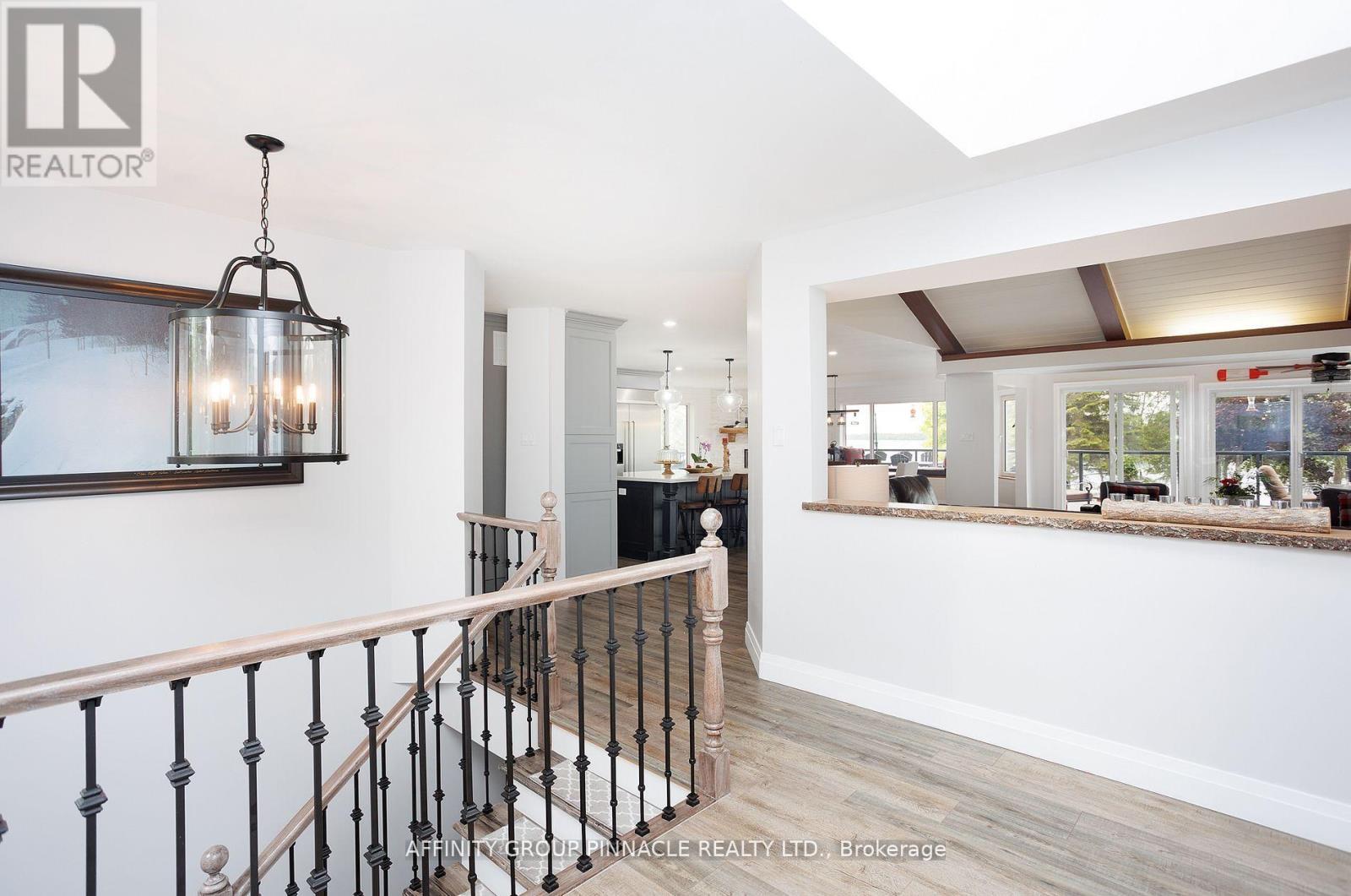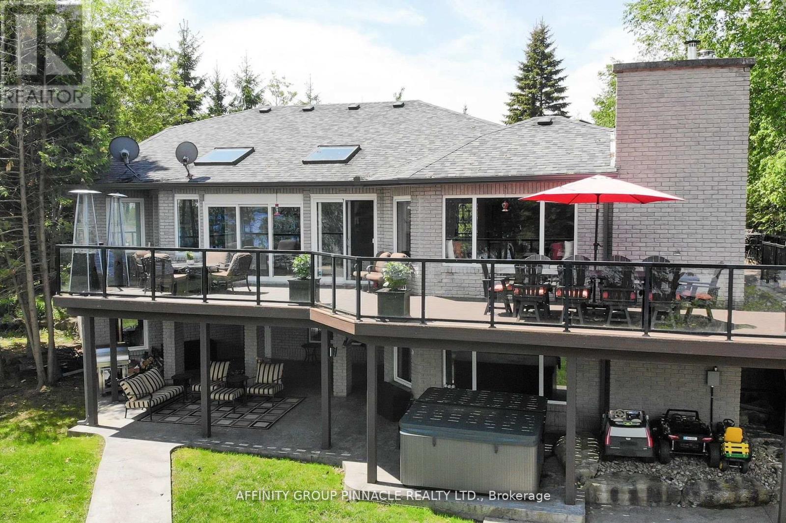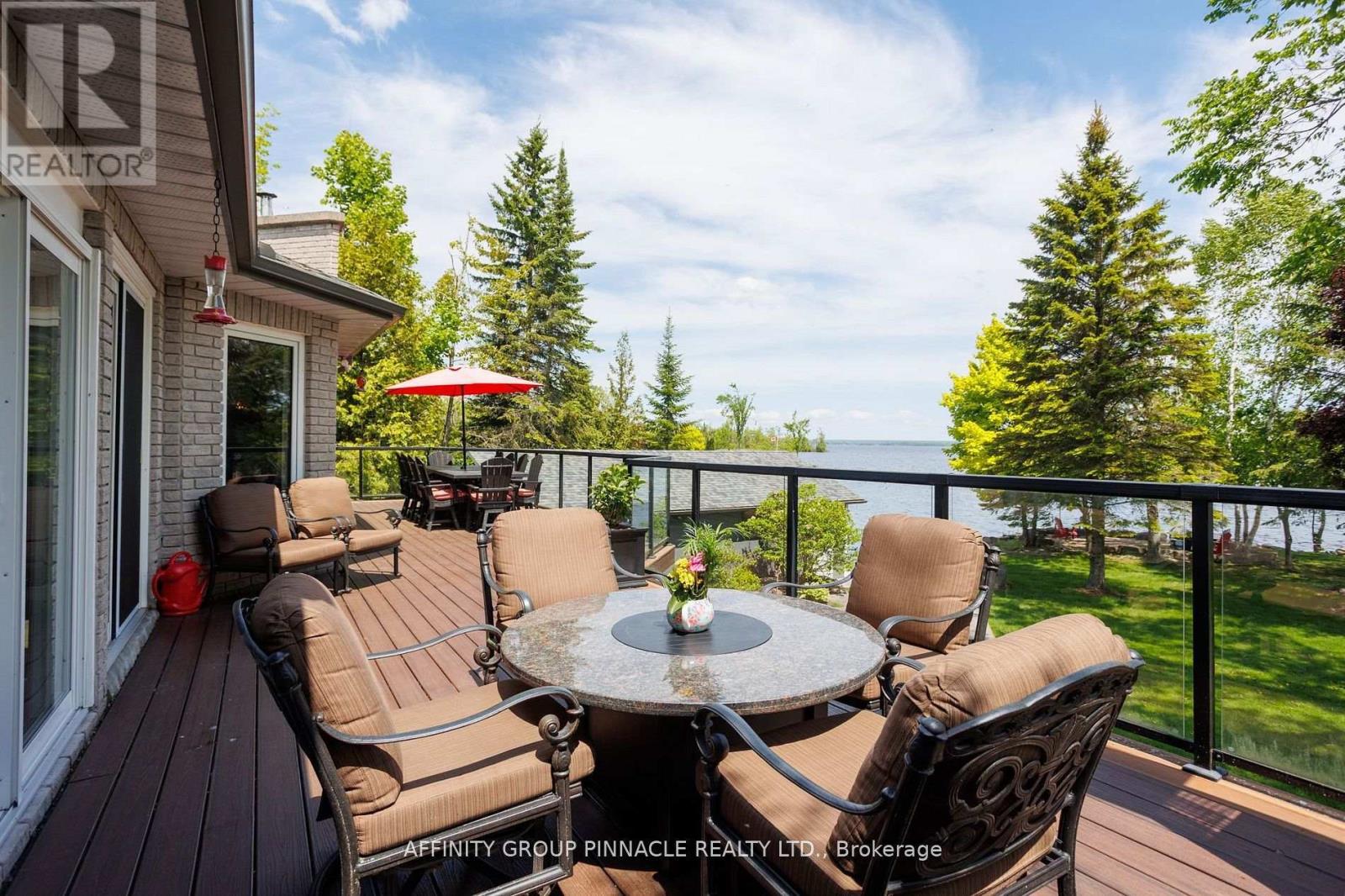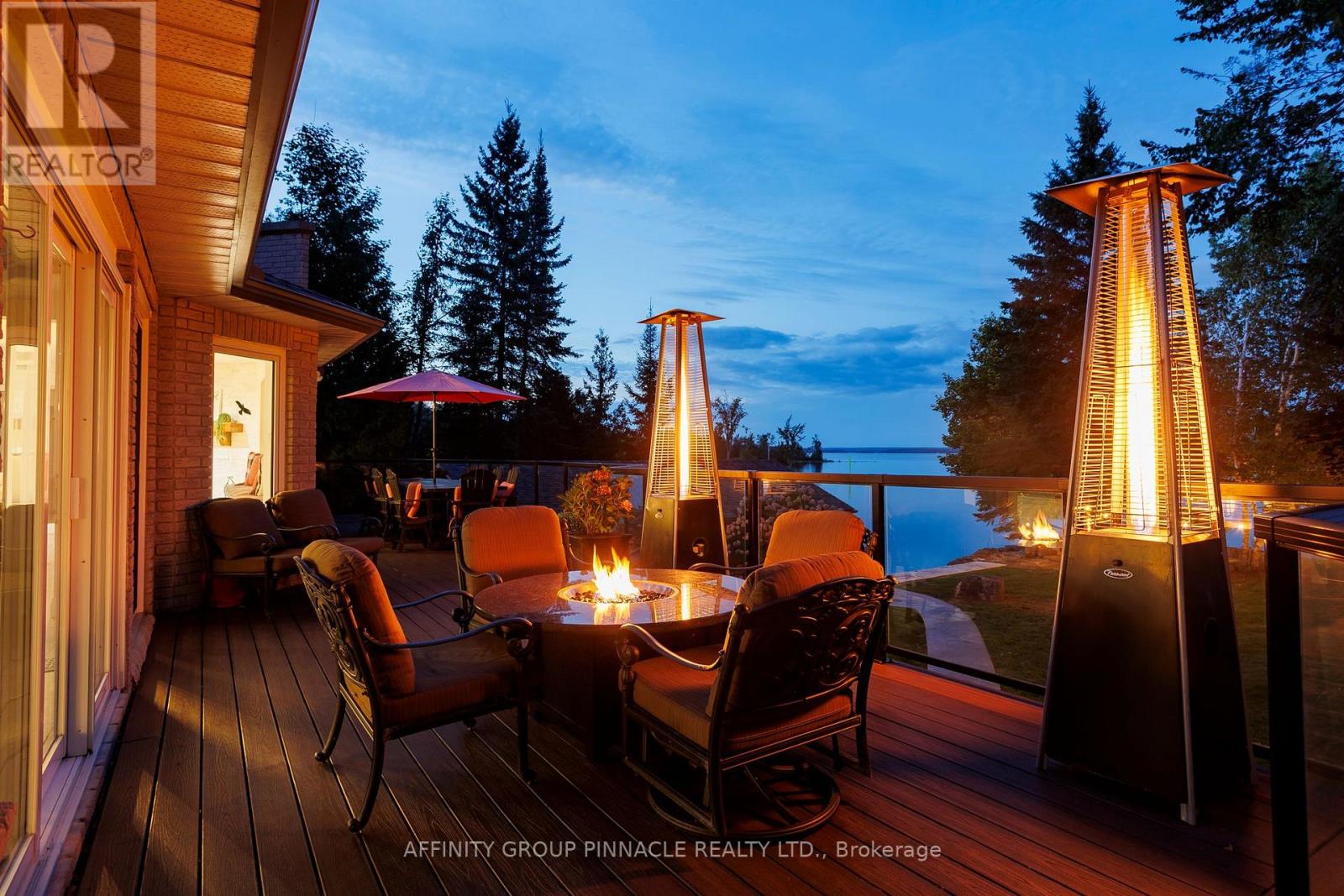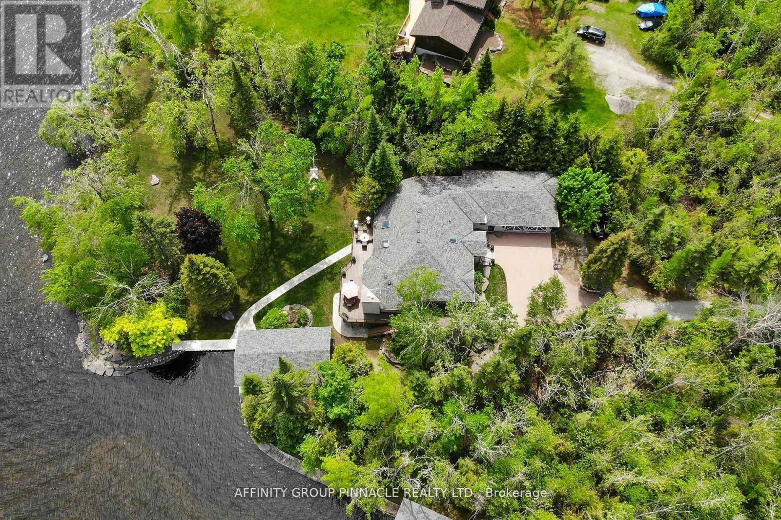 Rarely offered, this exceptional 5,100 sf lake house in a prestigious prime location in Bobcaygeon boasts 335' of clean shoreline on a secluded 2.61 acre lot, wet slip boathouse with lift, and showstopper panoramic frontage. Welcome to 90 McGregor Drive - where luxurious family living meets lakeside serenity! Having undergone a major transformation in the past few years, this property shows pride of ownership throughout!!Modernized interior has high end finishes including chefs kitchen with 9' quartz island, living room with vaulted ceiling, 6 bedrooms with large master suite on main floor, 4 remodeled bathrooms all with heated flooring and 2 wood burning fireplaces. Lakehouse is supported by geothermal heating, upgraded UV water system and 400 amp service. Enjoy stunning views of Pigeon Lake from the 1,150 sf composite wrap around decking with glass railing, or covered patio area from lower level walkouts complete with hot tub and outdoor TV. Beautifully landscaped grounds offer a patio entertaining area on the waterfront with a nearby sandy beach great for kids, weed free swimming, and trails that are great for walking, sledding or four wheeling. A perfect venue for entertaining, family retreats or year-round living...come and see what life on the lake is all about! (id:51158)