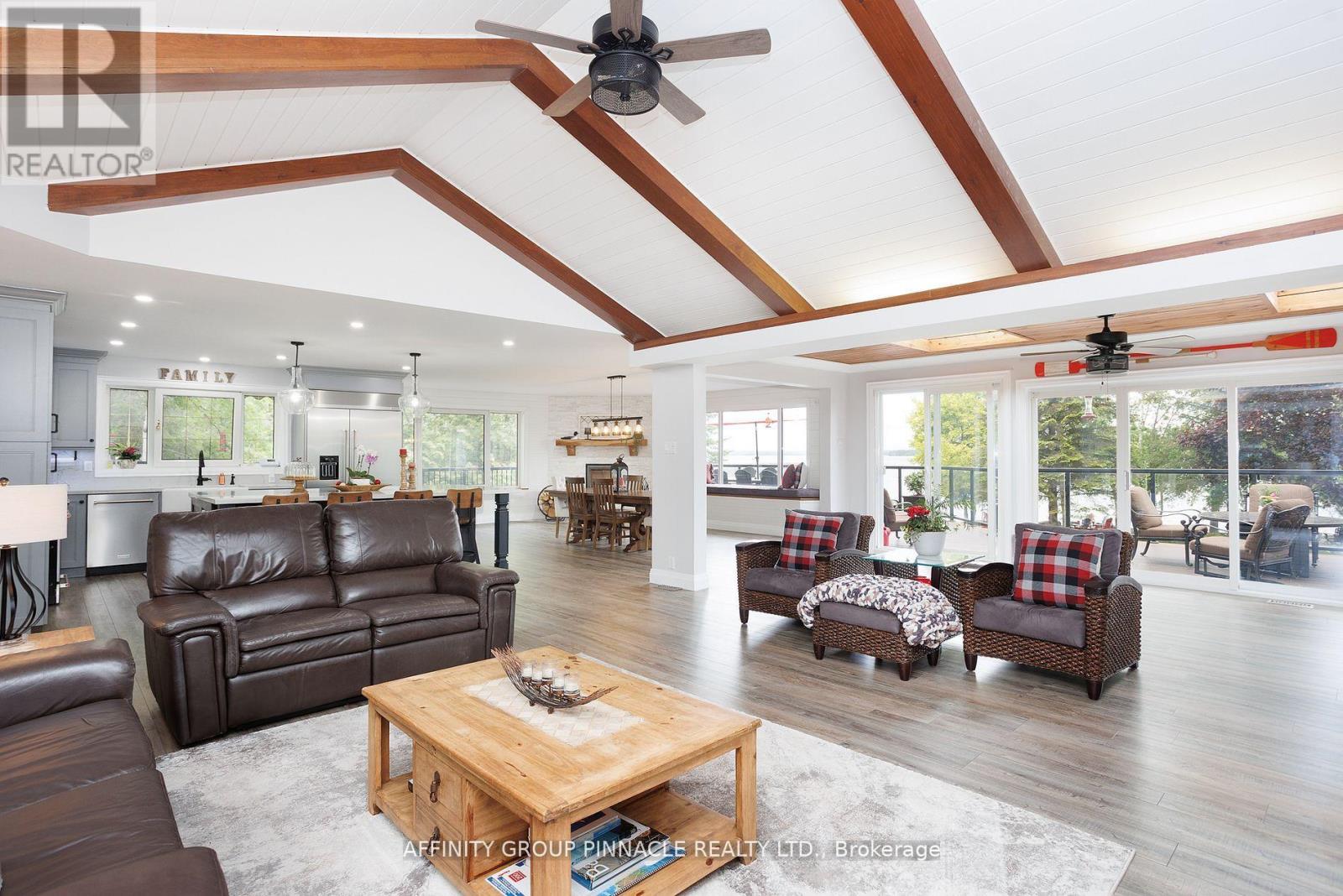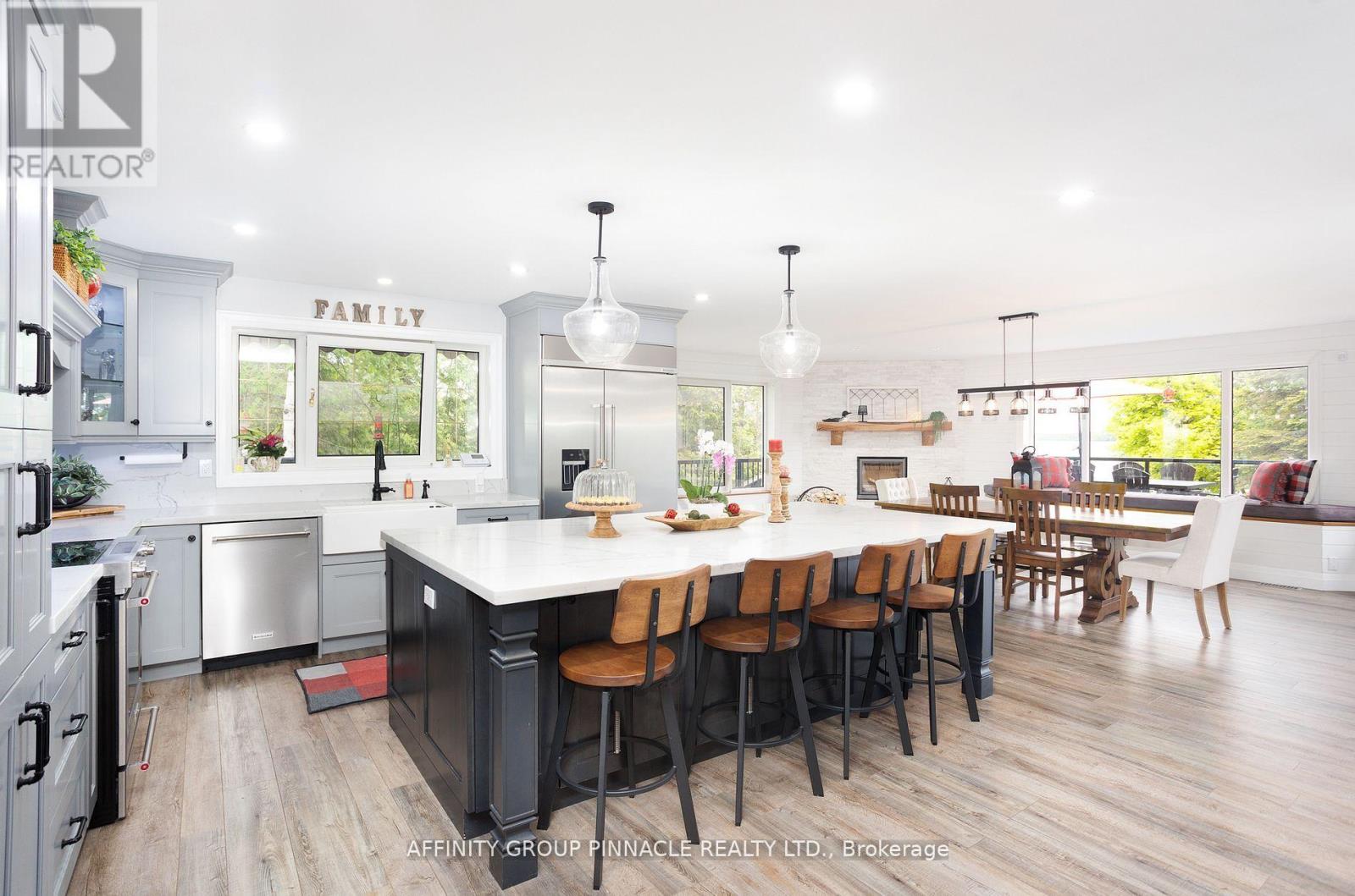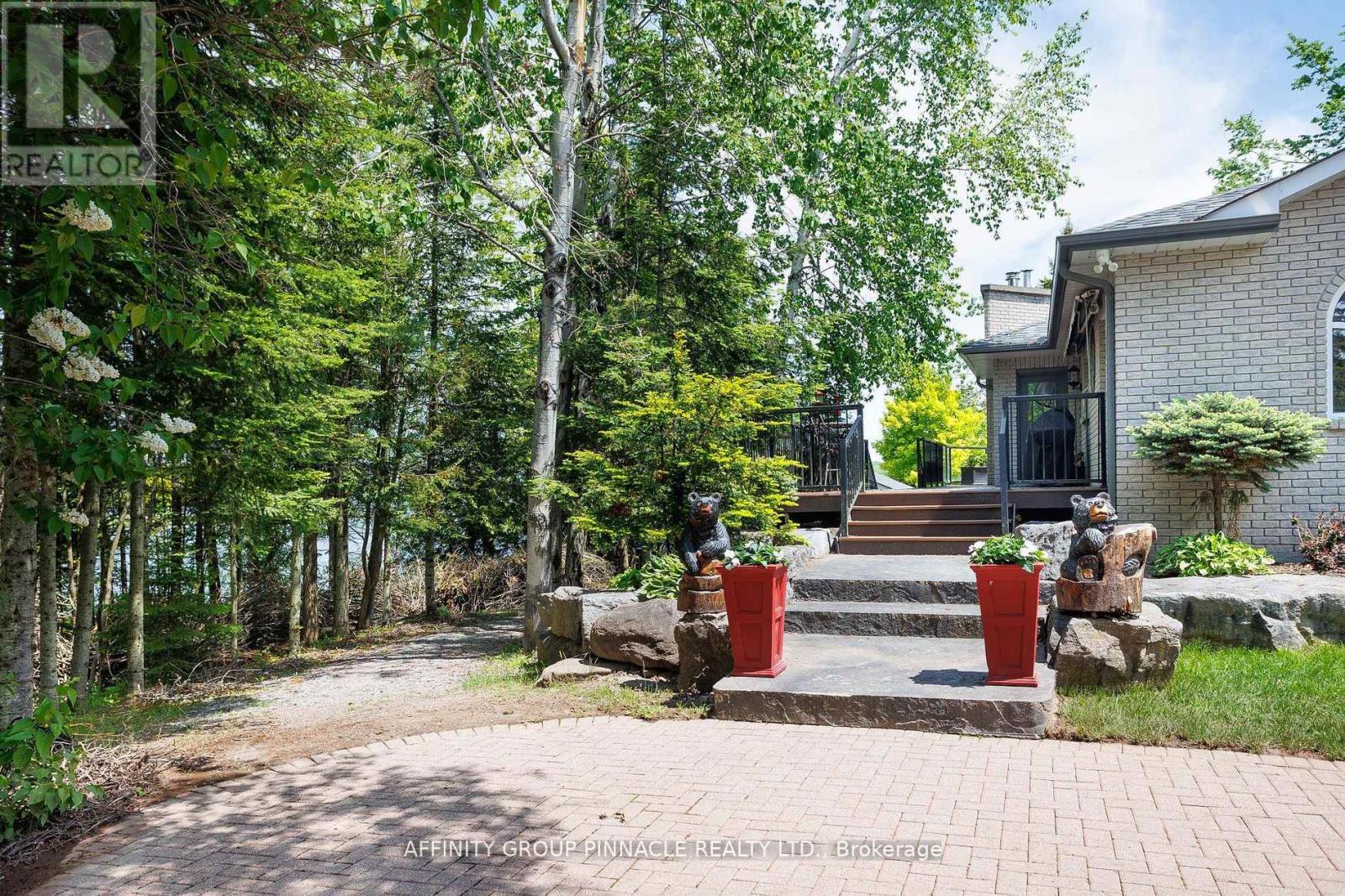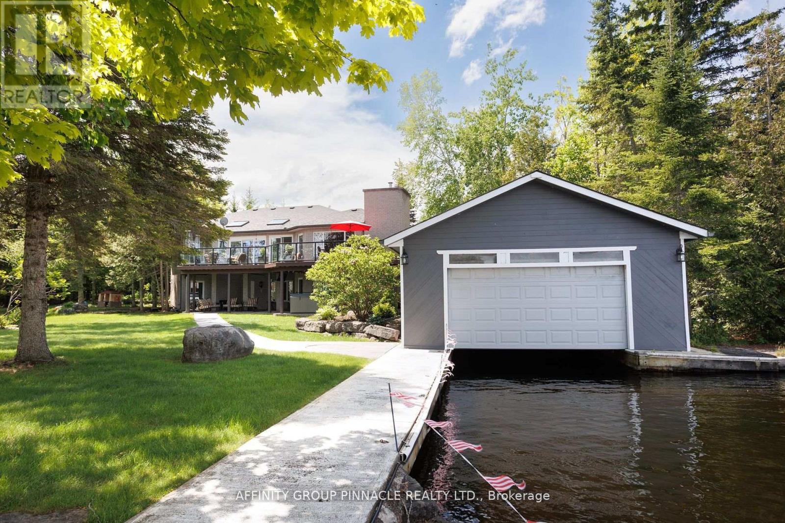 Rarely offered, this exceptional 5,100 sf lake house in a prestigious prime location in Bobcaygeon boasts 335' of clean shoreline on a secluded 2.61 acre lot, wet slip boathouse with lift, and showstopper panoramic frontage. Welcome to 90 McGregor Drive - where luxurious family living meets lakeside serenity! Having undergone a major transformation in the past few years, this property shows pride of ownership throughout!!Modernized interior has high end finishes including chefs kitchen with 9' quartz island, living room with vaulted ceiling, 6 bedrooms with large master suite on main floor, 4 remodeled bathrooms all with heated flooring and 2 wood burning fireplaces. Lakehouse is supported by geothermal heating, upgraded UV water system and 400 amp service. Enjoy stunning views of Pigeon Lake from the 1,150 sf composite wrap around decking with glass railing, or covered patio area from lower level walkouts complete with hot tub and outdoor TV. Beautifully landscaped grounds offer a patio entertaining area on the waterfront with a nearby sandy beach great for kids, weed free swimming, and trails that are great for walking, sledding or four wheeling. A perfect venue for entertaining, family retreats or year-round living...come and see what life on the lake is all about! (id:51158)