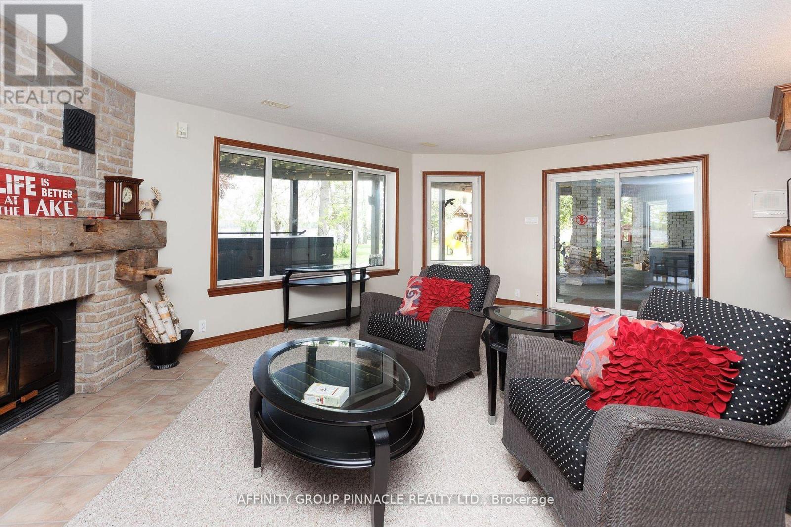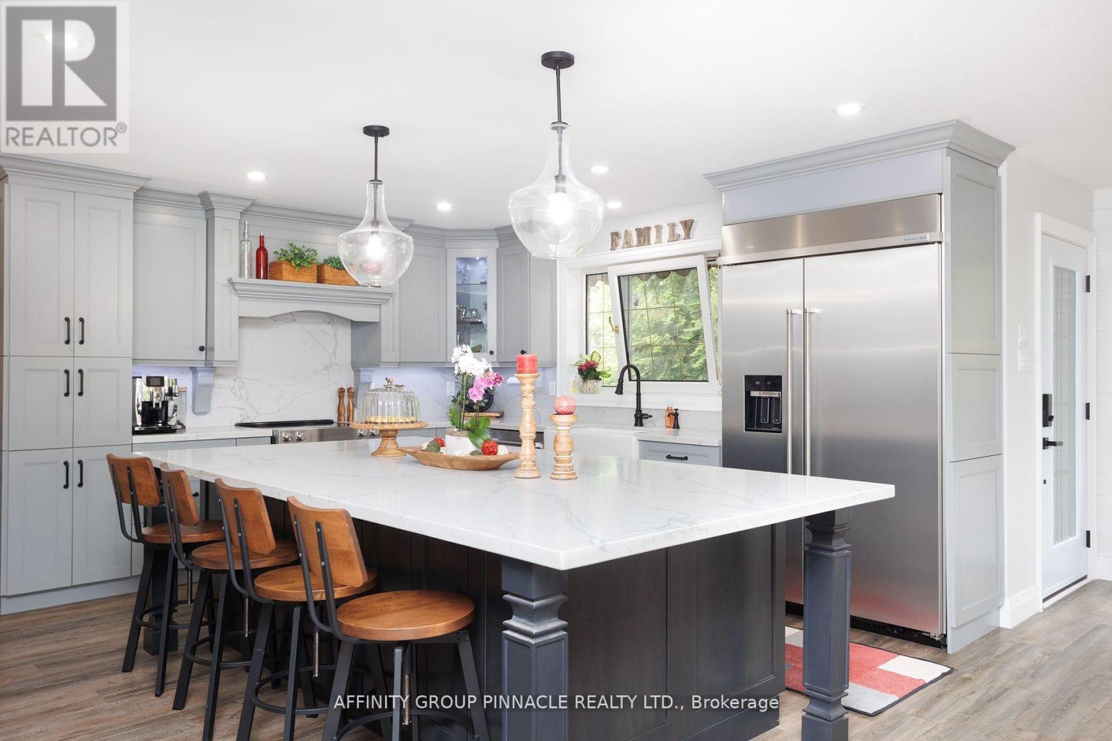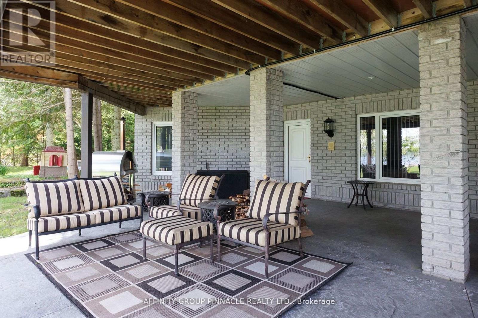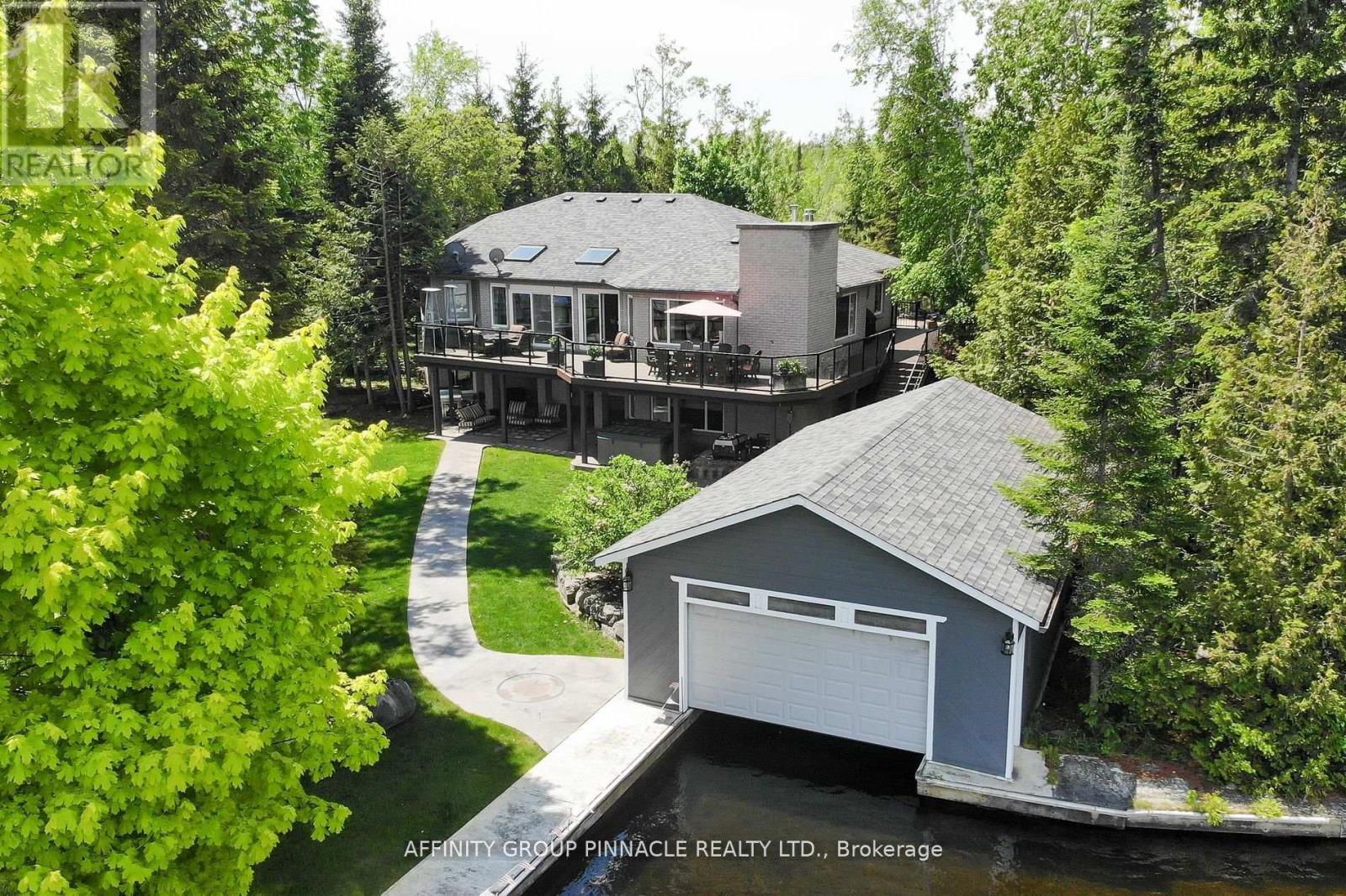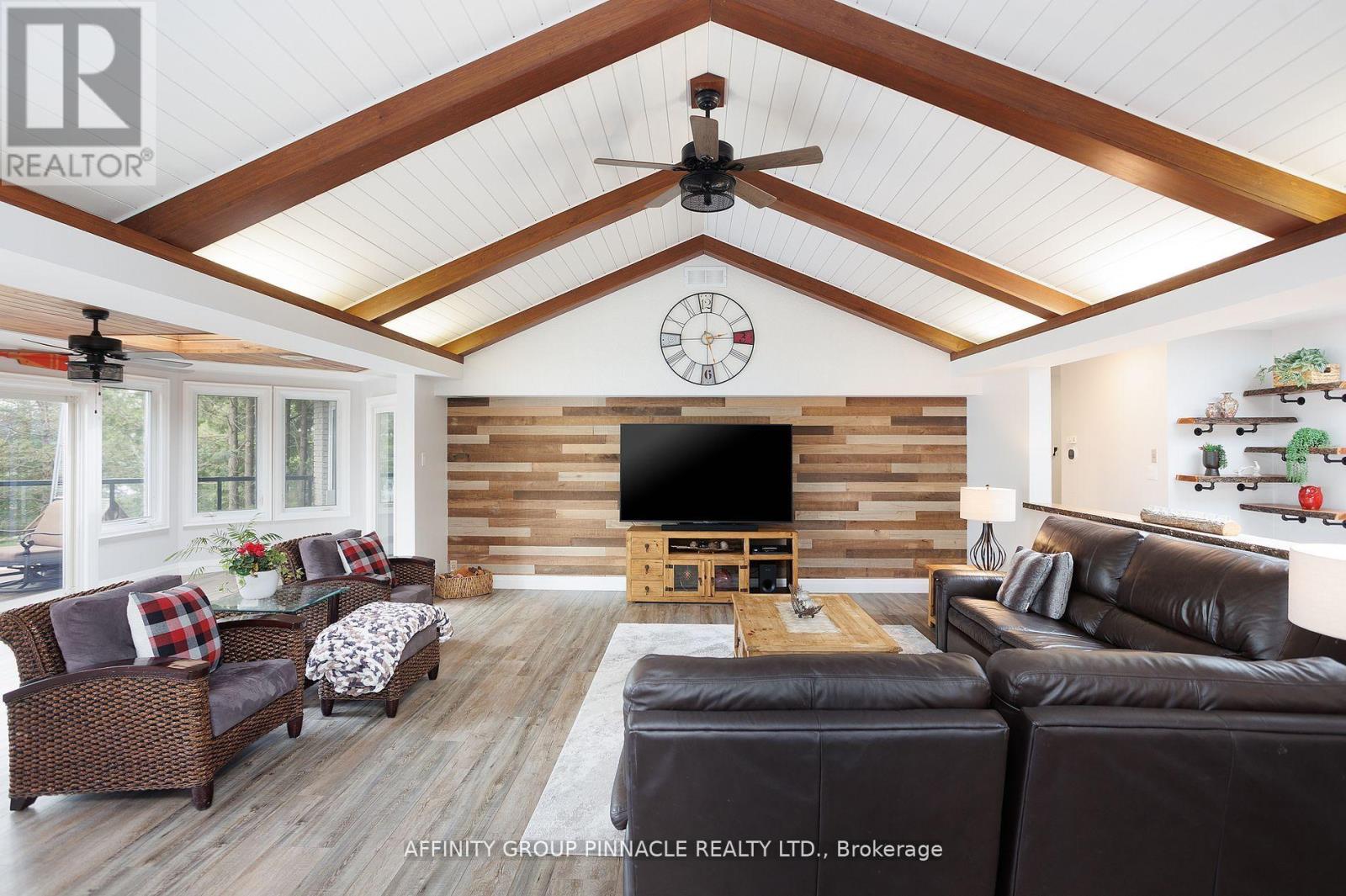 Rarely offered, this exceptional 5,100 sf lake house in a prestigious prime location in Bobcaygeon boasts 335' of clean shoreline on a secluded 2.61 acre lot, wet slip boathouse with lift, and showstopper panoramic frontage. Welcome to 90 McGregor Drive - where luxurious family living meets lakeside serenity! Having undergone a major transformation in the past few years, this property shows pride of ownership throughout!!Modernized interior has high end finishes including chefs kitchen with 9' quartz island, living room with vaulted ceiling, 6 bedrooms with large master suite on main floor, 4 remodeled bathrooms all with heated flooring and 2 wood burning fireplaces. Lakehouse is supported by geothermal heating, upgraded UV water system and 400 amp service. Enjoy stunning views of Pigeon Lake from the 1,150 sf composite wrap around decking with glass railing, or covered patio area from lower level walkouts complete with hot tub and outdoor TV. Beautifully landscaped grounds offer a patio entertaining area on the waterfront with a nearby sandy beach great for kids, weed free swimming, and trails that are great for walking, sledding or four wheeling. A perfect venue for entertaining, family retreats or year-round living...come and see what life on the lake is all about! (id:51158)