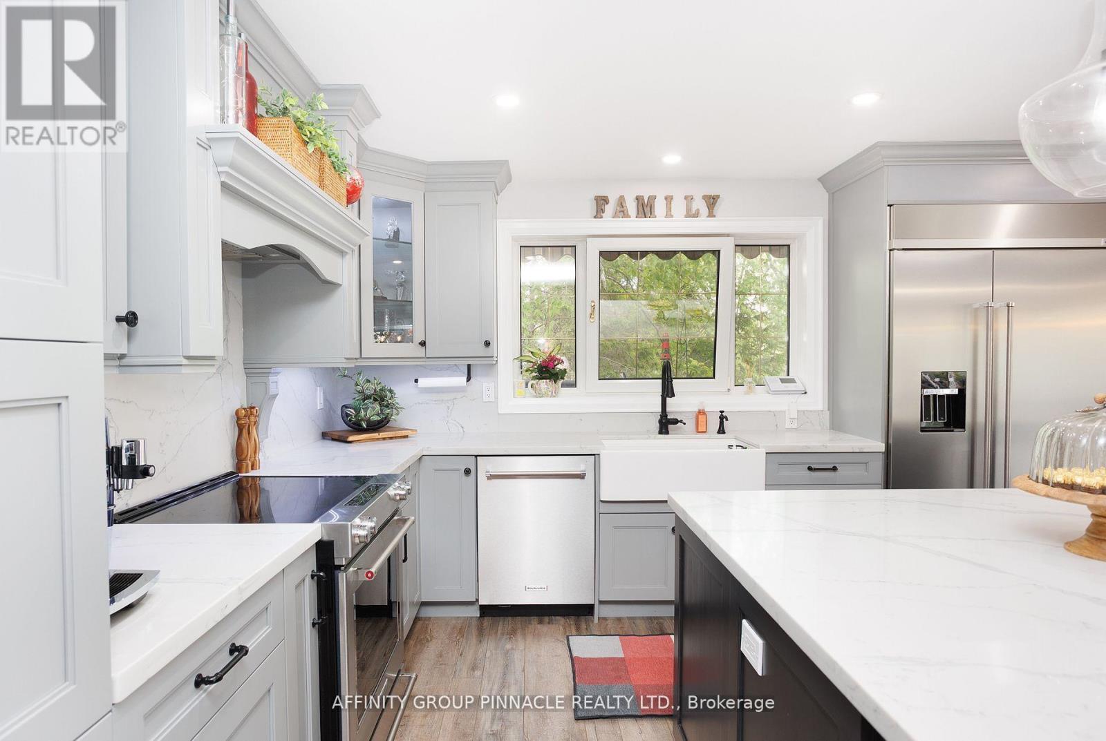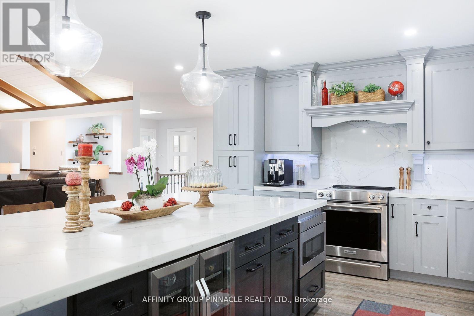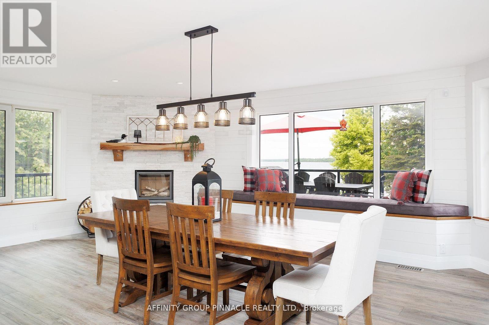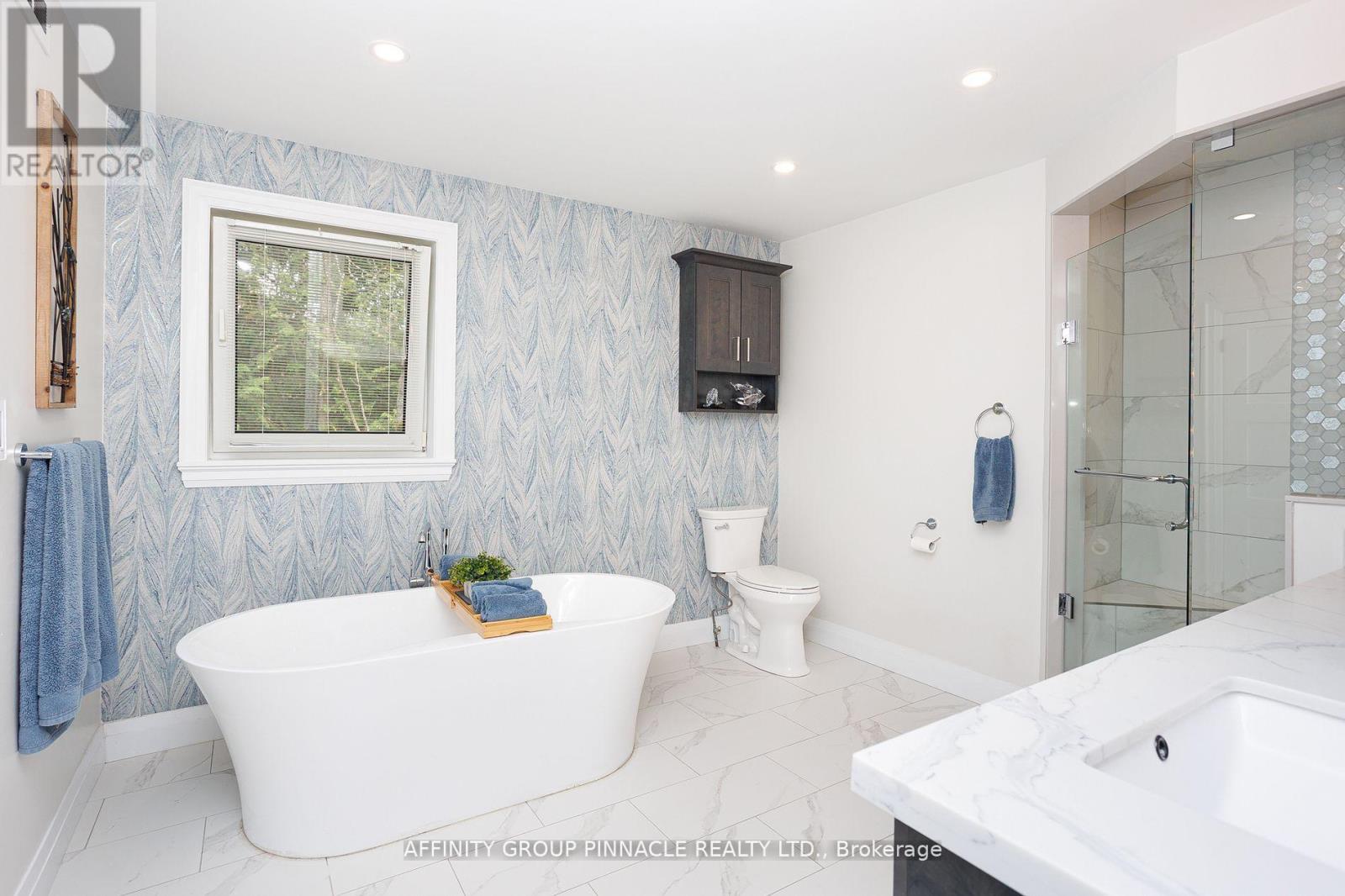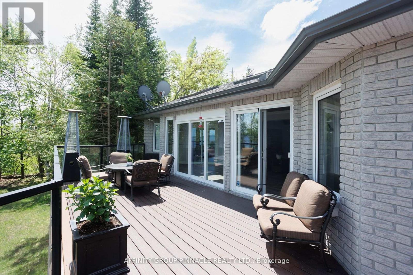 Rarely offered, this exceptional 5,100 sf lake house in a prestigious prime location in Bobcaygeon boasts 335' of clean shoreline on a secluded 2.61 acre lot, wet slip boathouse with lift, and showstopper panoramic frontage. Welcome to 90 McGregor Drive - where luxurious family living meets lakeside serenity! Having undergone a major transformation in the past few years, this property shows pride of ownership throughout!!Modernized interior has high end finishes including chefs kitchen with 9' quartz island, living room with vaulted ceiling, 6 bedrooms with large master suite on main floor, 4 remodeled bathrooms all with heated flooring and 2 wood burning fireplaces. Lakehouse is supported by geothermal heating, upgraded UV water system and 400 amp service. Enjoy stunning views of Pigeon Lake from the 1,150 sf composite wrap around decking with glass railing, or covered patio area from lower level walkouts complete with hot tub and outdoor TV. Beautifully landscaped grounds offer a patio entertaining area on the waterfront with a nearby sandy beach great for kids, weed free swimming, and trails that are great for walking, sledding or four wheeling. A perfect venue for entertaining, family retreats or year-round living...come and see what life on the lake is all about! (id:51158)