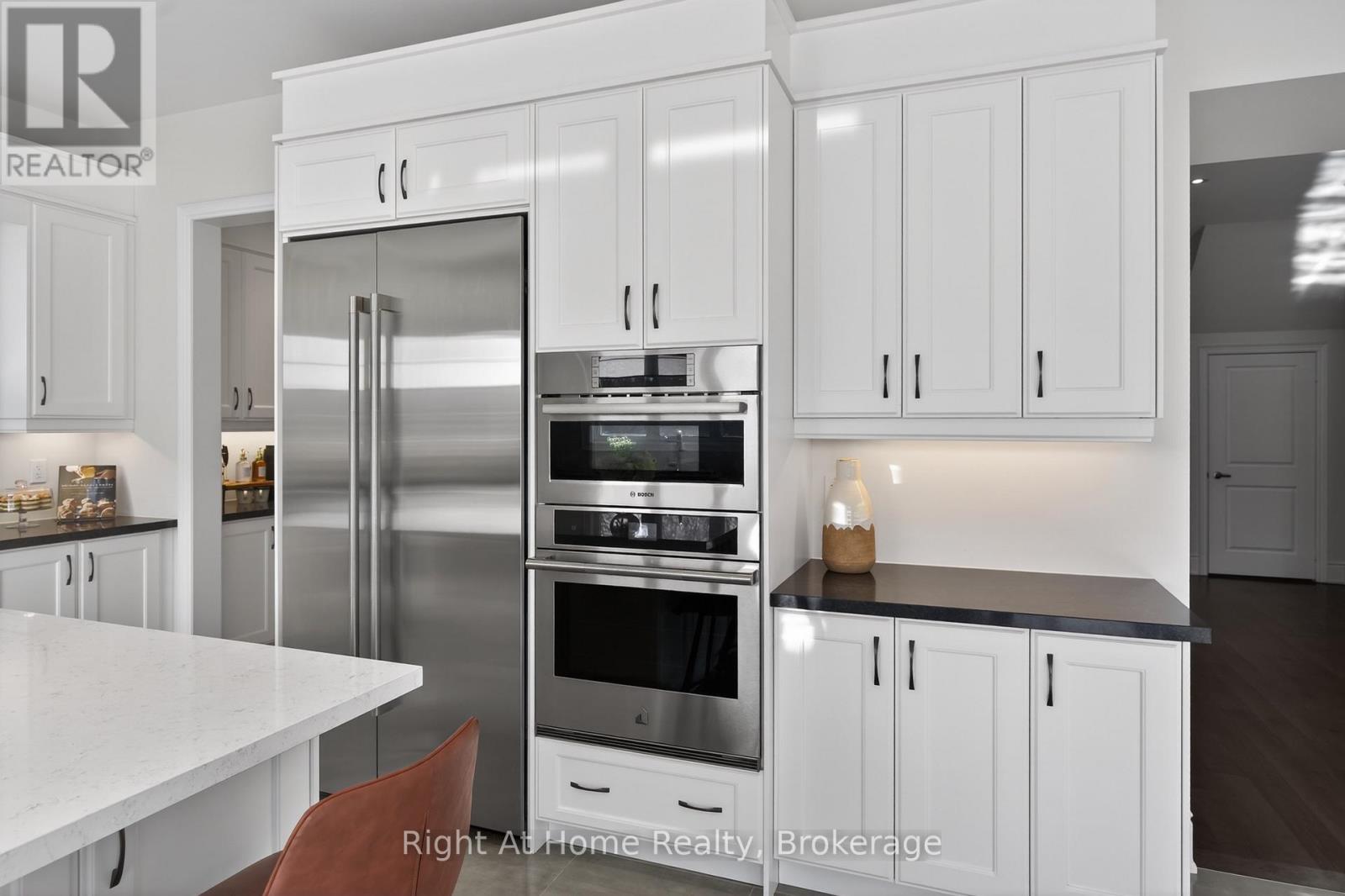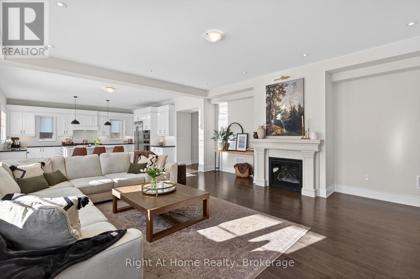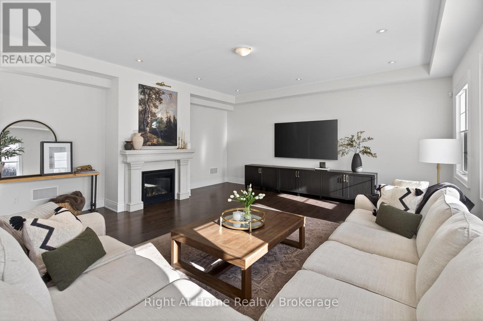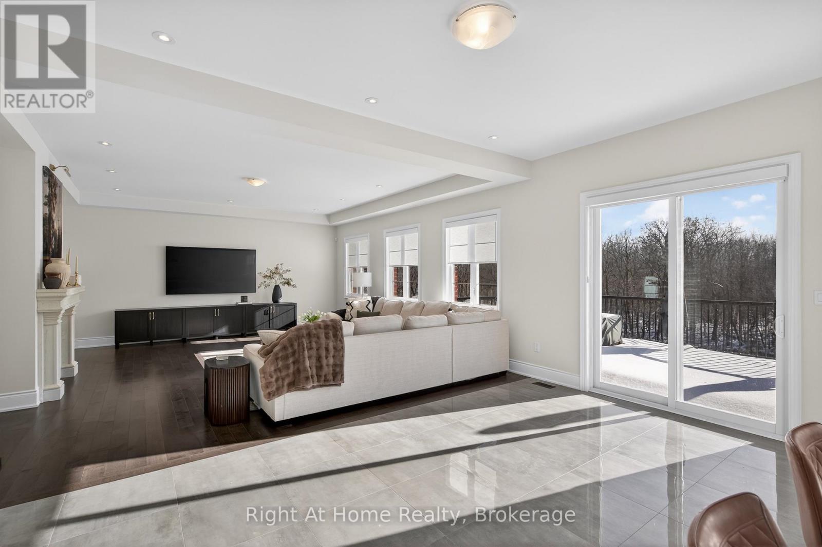 Stunning 2023-built home offering 5 Bedrooms, 6 Bathrooms in over 5,000 sq.ft. of living space backing onto private treed greenspace. Main floor features a home office with built-ins, open concept great room with gas fireplace and large windows, and an entertainer's kitchen with sit-up island, stainless steel appliances, 6-burner gas stove, built-in wall oven and microwave, walk-in pantry, butler's servery and plenty of cupboard space. Sliding doors lead to a 525 sq. ft. deck overlooking nature. Large mudroom with garage access and main floor powder room.Upper level offers hardwood flooring, a luxury primary suite with double doors, his and hers walk-in closets and a 5-piece spa ensuite with a standalone tub, double vanities and a water closet. Four additional generously sized bedrooms each feature walk-in closets and ensuite baths. The upper level also includes a spacious laundry room with ample cabinetry and large work surface.Bright walk-out basement with two staircases, sliding doors to the yard, and a professional gym included (see exclusions). The lower level offers exceptional flexibility with space that can accommodate a wide range of custom options, including home theatre, additional bedrooms or in-law suite potential. Over $200,000 in upgrades throughout. Exceptional layout and a highly sought-after setting. (id:51158)