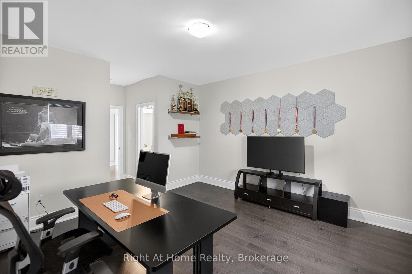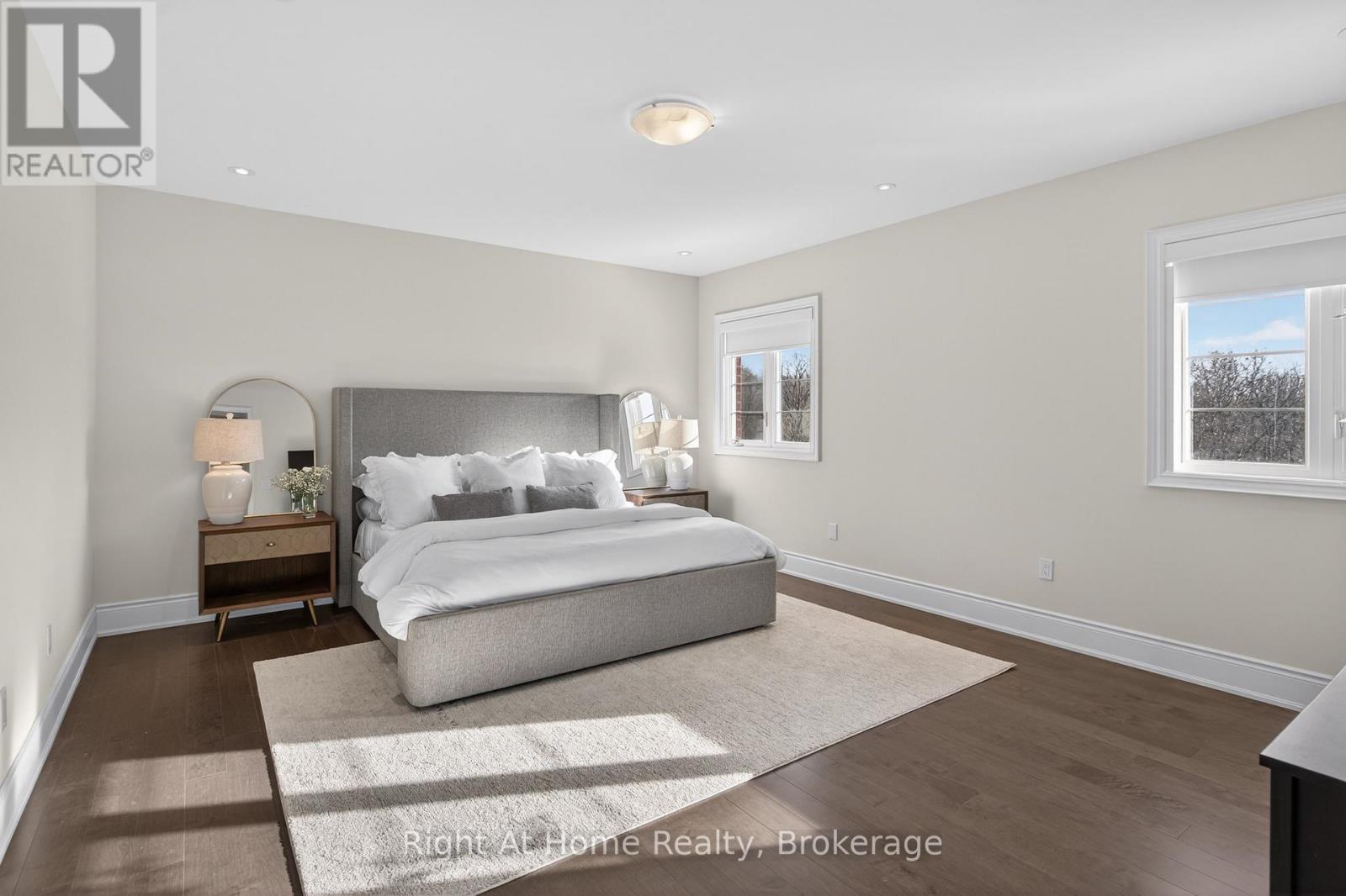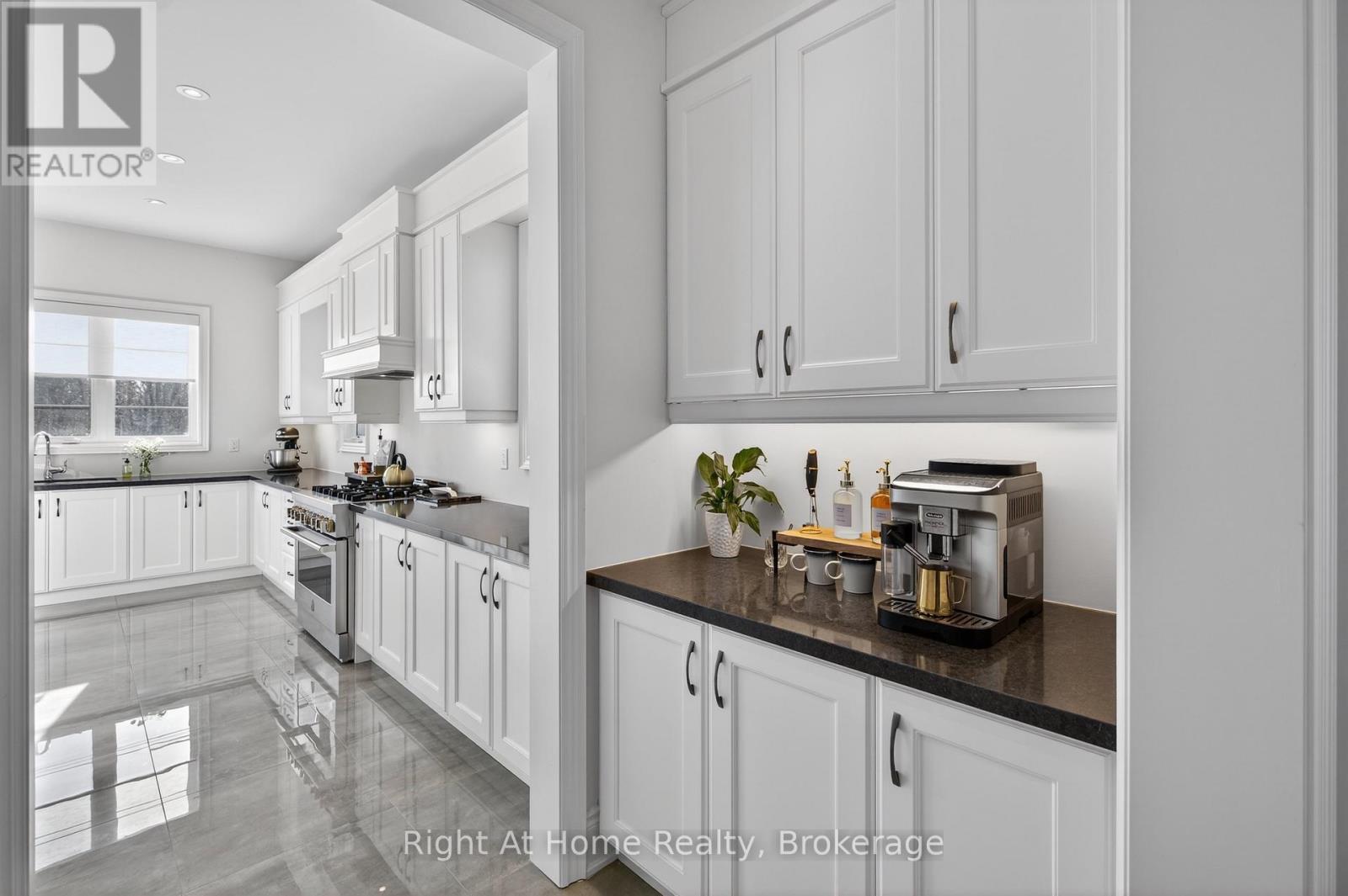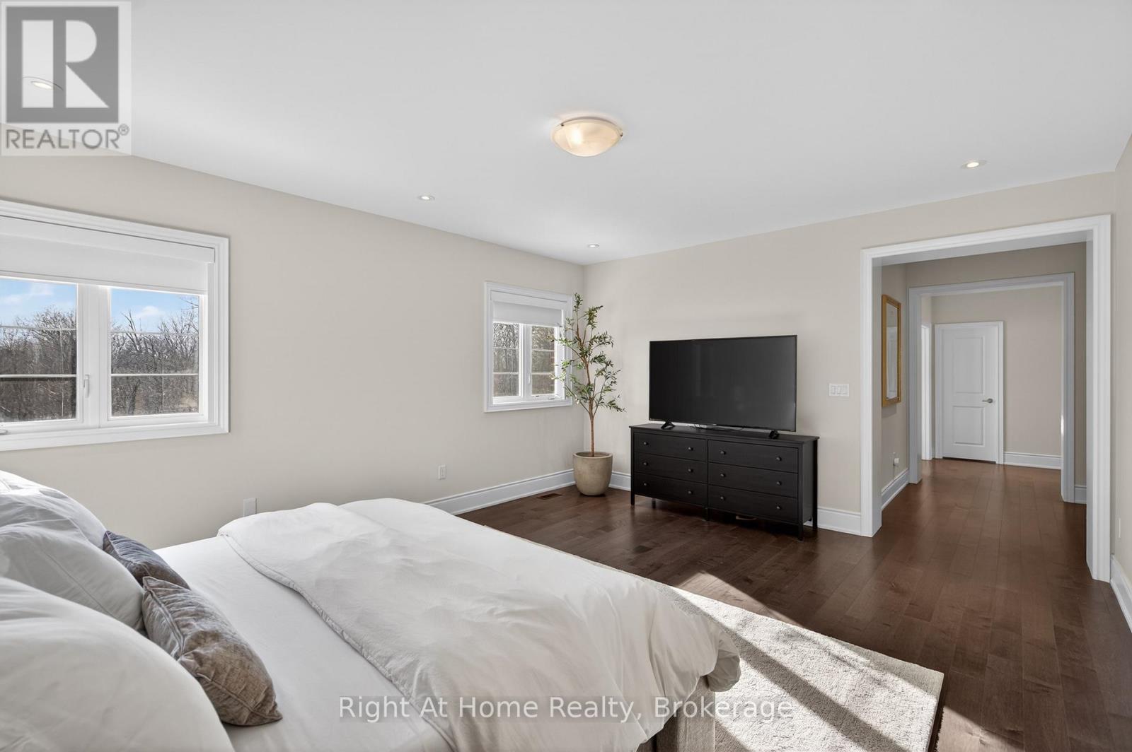 Stunning 2023-built home offering 5 Bedrooms, 6 Bathrooms in over 5,000 sq.ft. of living space backing onto private treed greenspace. Main floor features a home office with built-ins, open concept great room with gas fireplace and large windows, and an entertainer's kitchen with sit-up island, stainless steel appliances, 6-burner gas stove, built-in wall oven and microwave, walk-in pantry, butler's servery and plenty of cupboard space. Sliding doors lead to a 525 sq. ft. deck overlooking nature. Large mudroom with garage access and main floor powder room.Upper level offers hardwood flooring, a luxury primary suite with double doors, his and hers walk-in closets and a 5-piece spa ensuite with a standalone tub, double vanities and a water closet. Four additional generously sized bedrooms each feature walk-in closets and ensuite baths. The upper level also includes a spacious laundry room with ample cabinetry and large work surface.Bright walk-out basement with two staircases, sliding doors to the yard, and a professional gym included (see exclusions). The lower level offers exceptional flexibility with space that can accommodate a wide range of custom options, including home theatre, additional bedrooms or in-law suite potential. Over $200,000 in upgrades throughout. Exceptional layout and a highly sought-after setting. (id:51158)