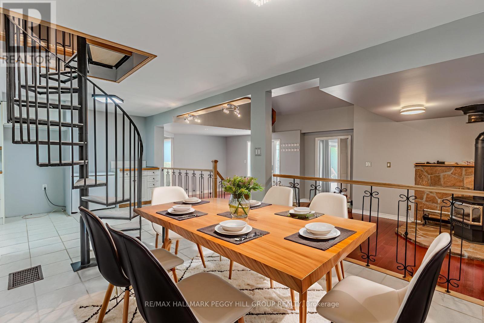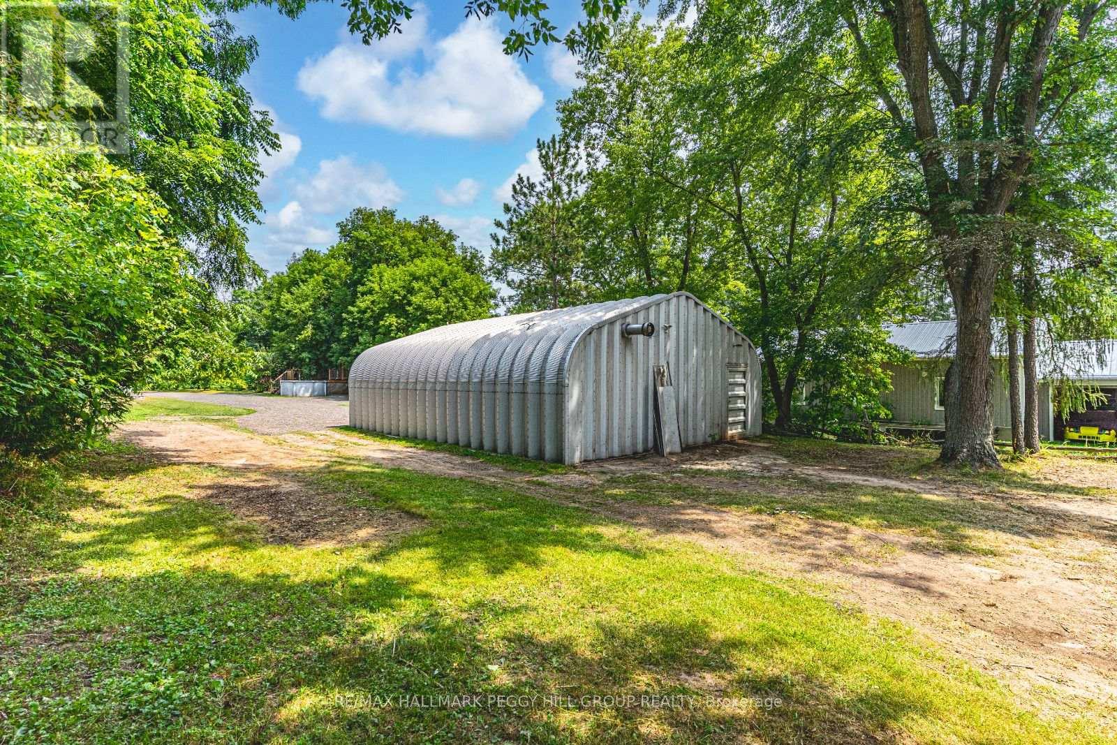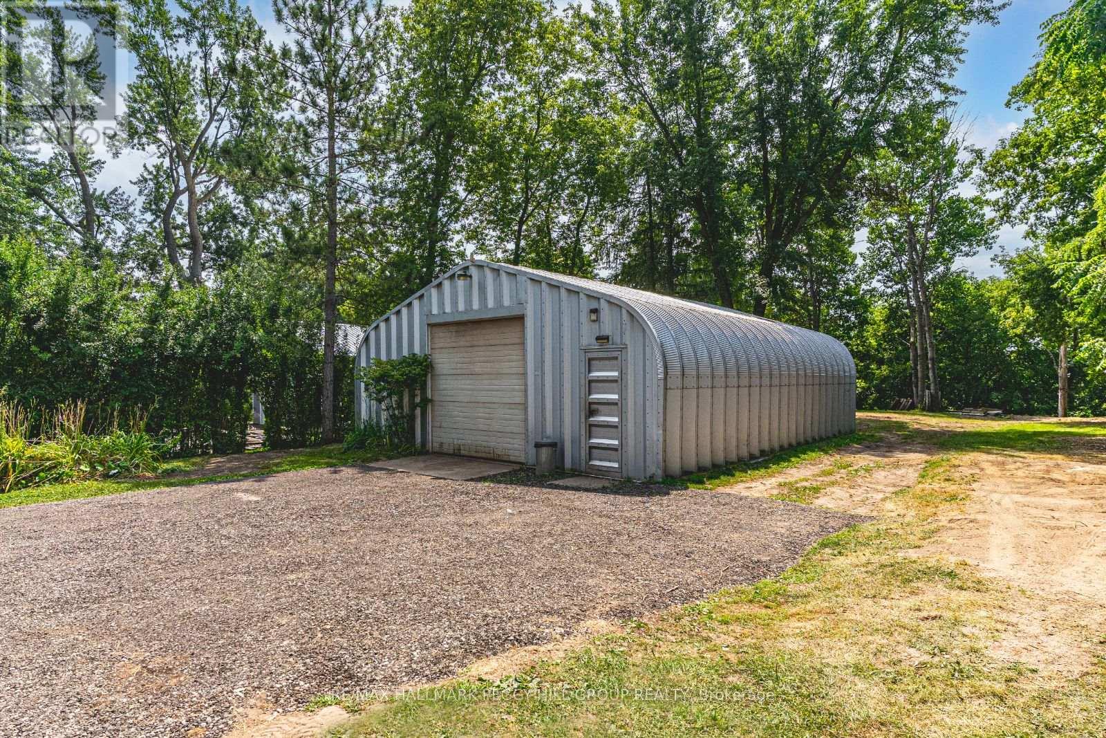 BUNGALOW WITH HEATED STEEL FRAME QUONSET HUT, SET ON A NEARLY HALF-ACRE LOT WITH NO DIRECT REAR NEIGHBOURS! Tucked within a canopy of mature trees on a nearly half-acre lot with a private treed backdrop, this property is one you have to see to appreciate, offering a heated 1,200 sq ft steel frame Quonset hut, above-ground pool, screened gazebo, and a generous back deck overlooking the yard that will have you imagining all the possibilities. The 30' x 40' heated steel frame Quonset hut includes a 10' x 10' roll-up door and front and rear man doors, making it ideal as a workshop or secure storage for vehicles and equipment, complemented by an extended driveway with parking for multiple vehicles and trailers. Step inside to a warm and inviting living room, where a soaring vaulted ceiling and a cozy propane fireplace create a welcoming space designed for relaxing. The bright kitchen offers generous counter space and front yard views, flowing effortlessly into a sunny dining nook overlooking the living area. The private primary suite includes a sliding glass walkout to the deck, perfect for enjoying tranquil mornings surrounded by nature, and is accompanied by a second bedroom and a 4-piece bath. A dedicated laundry room rounds out the functional main floor layout, while a statement spiral staircase leads to an open and versatile loft space, ideal for a home office, creative studio, cozy reading nook, or kids' play space. Additional features include a 7,400-watt generator and propane BBQ hookup. Just a short stroll from the Glencairn Conservation Area with peaceful trails and picnic spots along the Mad River, this property offers rural seclusion while remaining close to Alliston, Essa, Creemore, and Collingwood for shopping, dining, and daily essentials. With its unique features, character-filled spaces, and endless potential, this is a #HomeToStay waiting to be reimagined into your dream Pinterest creation. (id:51158)