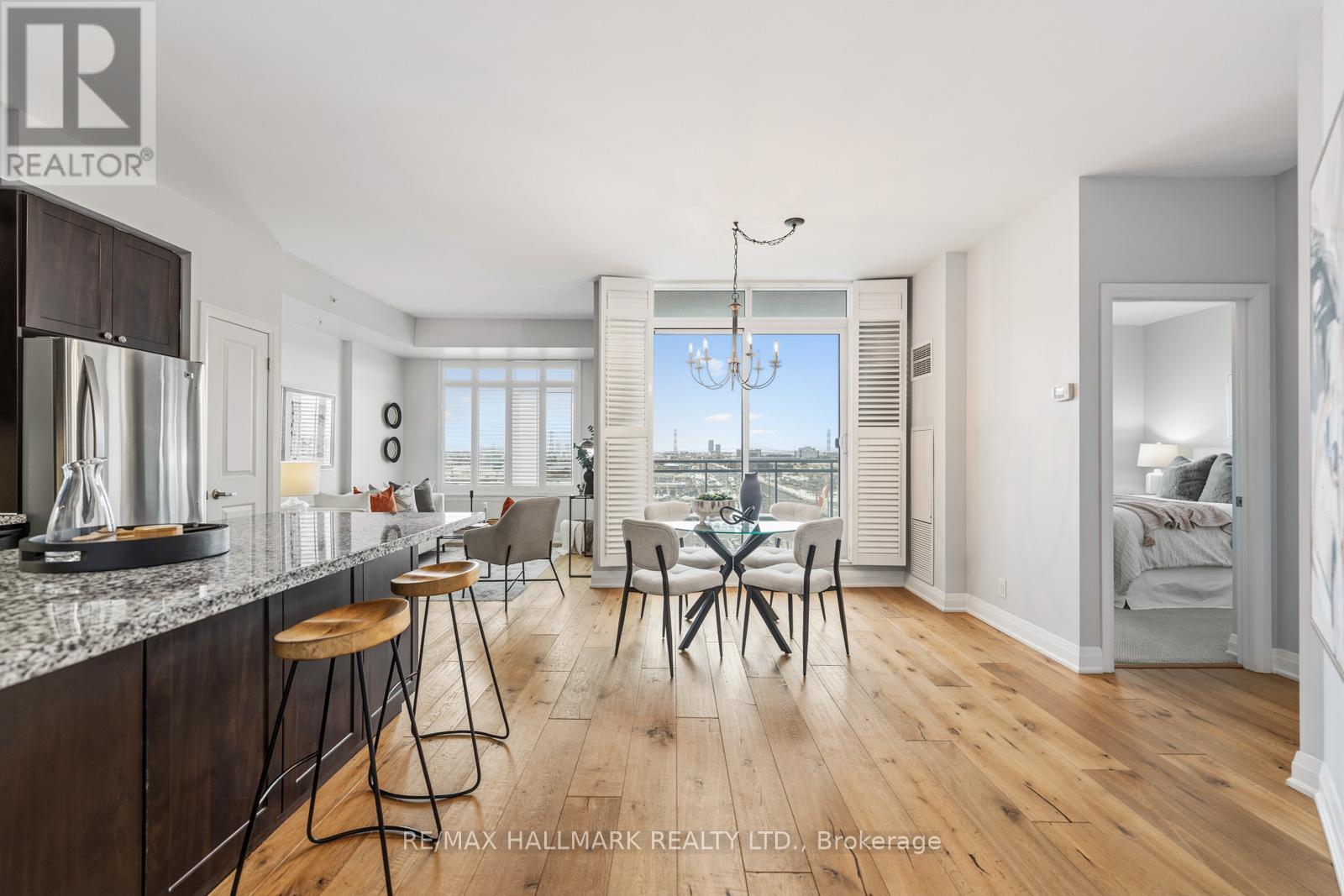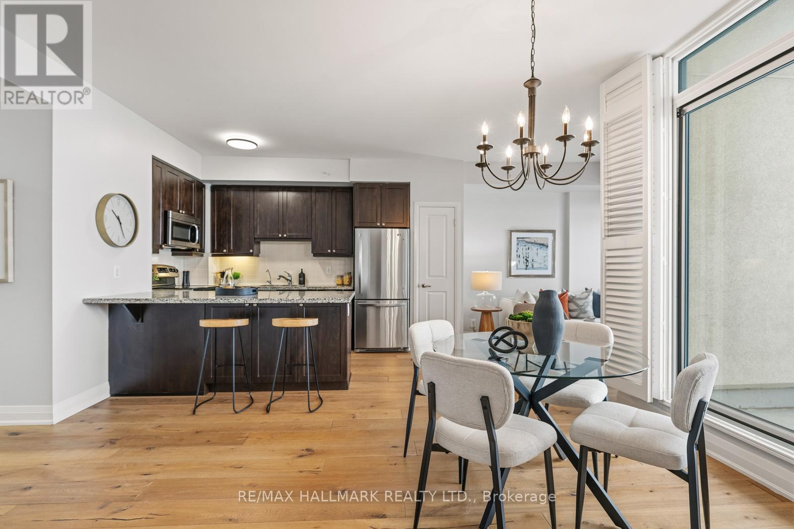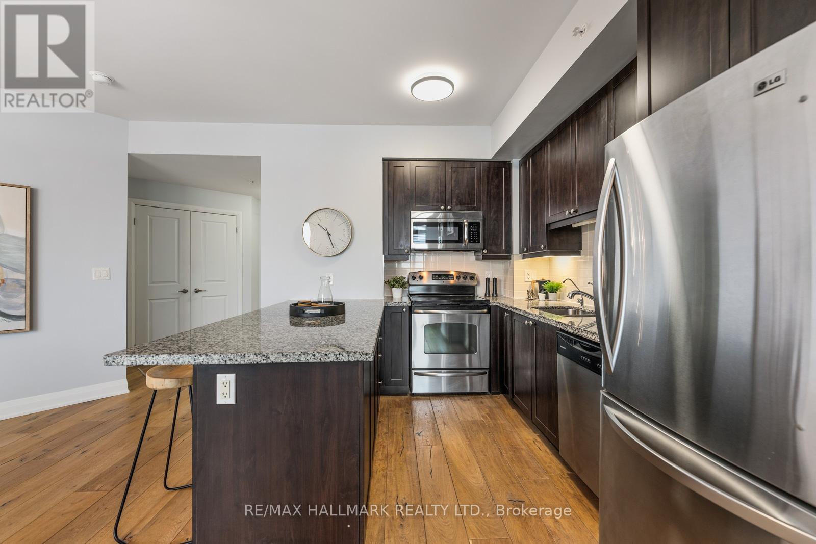 $548.46 MonthlyWelcome to this bright and spacious one bedroom plus den condo in the heart of Woodbridge. The perfect suite for any life stage. Offering 759 square feet of well-designed living space, this suite features an open-concept layout with laminate flooring throughout. The modern kitchen is equipped with stainless steel appliances, stone countertops, and ample cabinetry, flowing seamlessly into the combined living and dining areas-ideal for both everyday living and entertaining.The generous primary bedroom features a walk-in closet and comfortable proportions, while the versatile den is perfect for a home office, guest space, or additional storage. Broadloom in primary bedroom is laid over the laminate flooring. The building offers a full range of amenities including a fitness centre, party/meeting room, and visitor parking, providing added convenience and lifestyle appeal. This unit also includes one parking spot and one locker. Ideally located at 12 Woodstream Blvd with easy access to major highways and transit, making commuting into downtown Toronto simple and efficient. Close to shopping, restaurants, parks, and all that Woodbridge has to offer. An excellent opportunity for first-time buyers or downsizers. (id:51158)