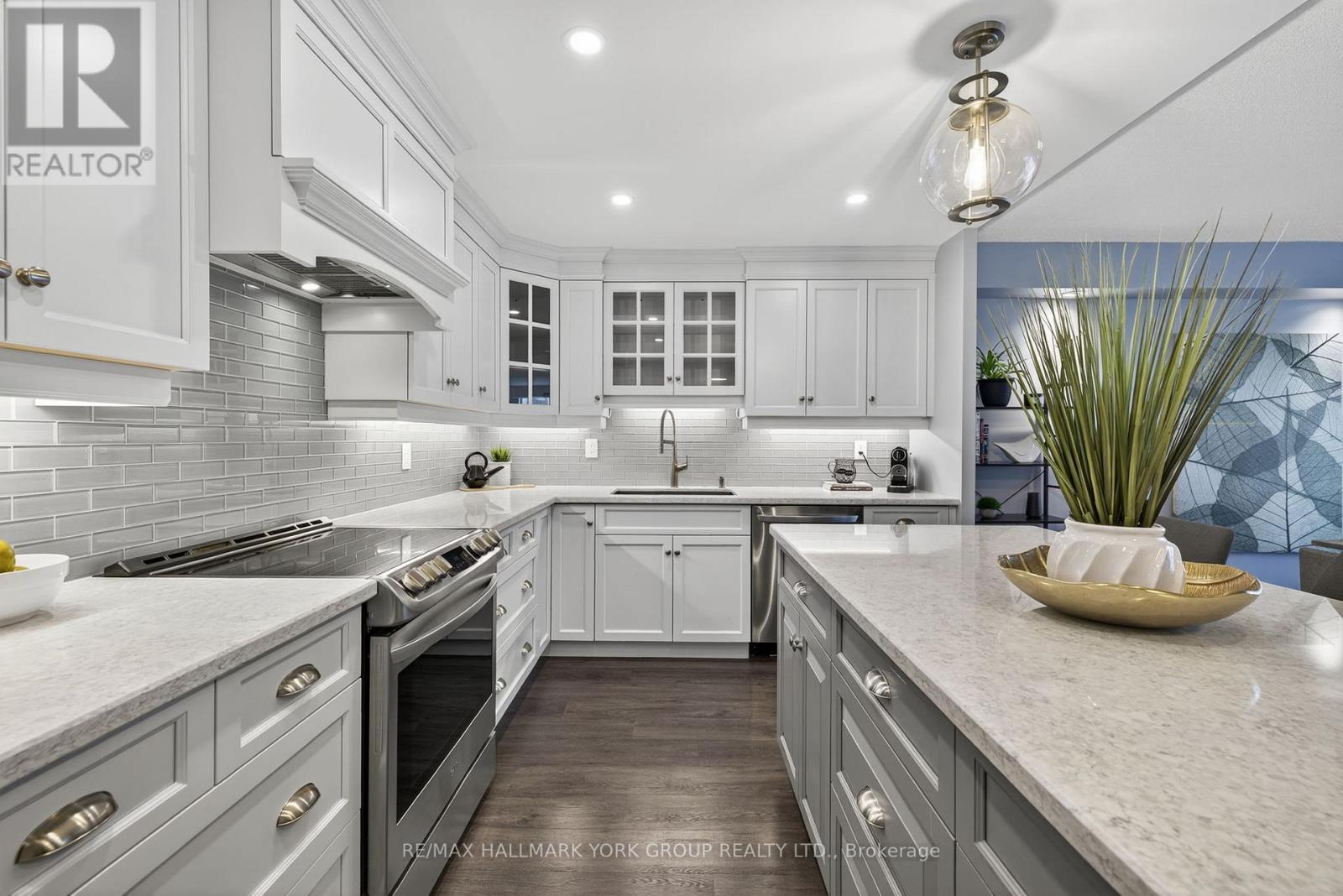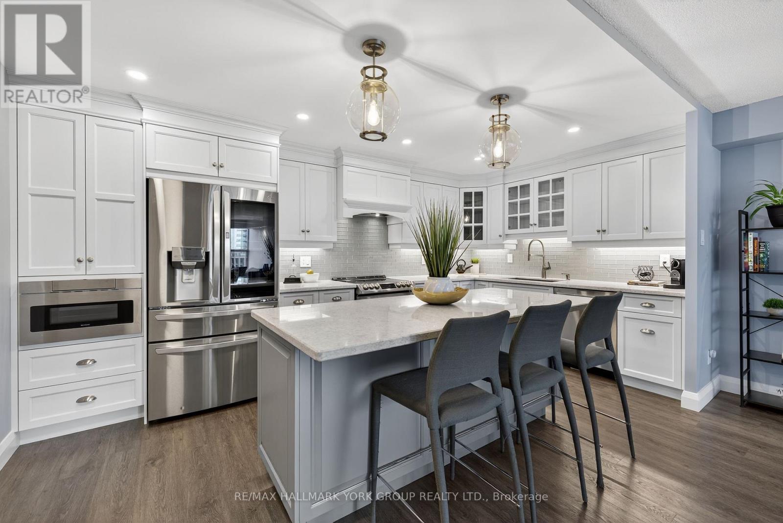 $931.20 MonthlyAbsolutely Stunning 2 + 1 Bed/2 Bath Condo In Central Newmarket! Renovated Throughout, This Fabulous Unit Boasts Over 1100 Square Feet With A Sensational Chef's Kitchen With Quartz Counters, Stainless Steel Appliances, Chic Tile Backsplash & Huge Centre Island/Breakfast Bar. Bright Living/Dining Rooms With Pot Lights. Spacious Bedrooms Including Generously Sized Primary Bedroom With Walk-In Closet & Updated 3-Piece Bathroom Plus Additional Den/Office Space. Other Features Include Updated Main Bath & Light Fixtures Throughout, Ensuite Laundry, Locker & 1 Underground Parking Space. Conveniently Located To All Newmarket Has To Offer Including Main Street, Upper Canada Mall, Transit, Restaurants, Schools, Parks & So Much More! (id:51158)