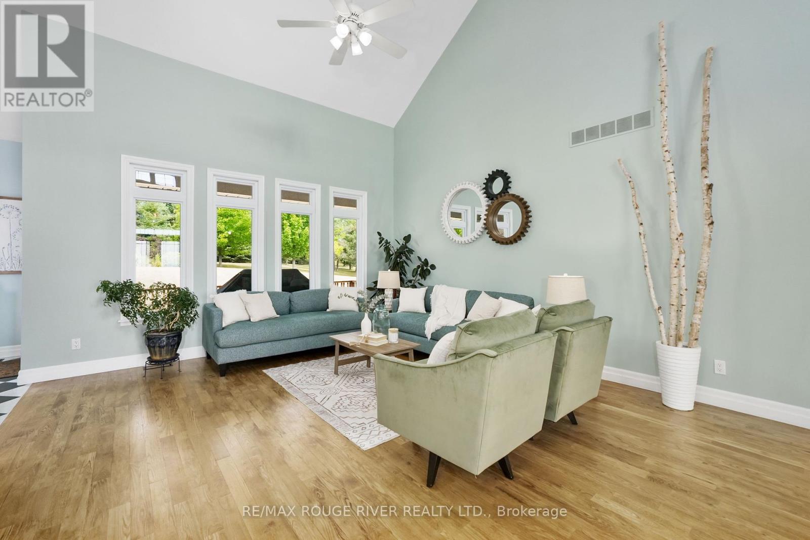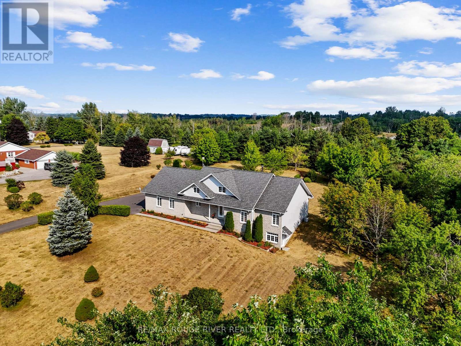 Welcome to this impeccably maintained custom-built 3 bed, 3 bath home nestled on a stunning 1.74-acre retreat boasting breathtaking panoramic views of Lake Ontario and the picturesque Northumberland Hills. This property offers the perfect harmony of functionality and serenity, situated just 5 minutes from Highway 401 and the established Town of Cobourg. Upon entering, you'll be greeted by soaring vaulted ceilings and an open-concept design that showcases beautifully restored hardwood flooring (2024) in a sunlit living area. The newly renovated chefs kitchen is a true masterpiece, featuring elegant marble flooring, quartzite counters and backsplash, custom cabinetry, a spacious island, and premium fixtures (2024). The kitchen seamlessly connects to the dining room, which overlooks the back deck and the tranquil surroundings of mature trees within the beautifully landscaped yard. A conveniently located main-level laundry offers easy access to the sizeable 2-car garage. On the main level, you'll find a primary suite that features impressive vaulted ceilings with a 3-piece ensuite marble flooring and high-end finishes (2024), the sizable walk-in closet completes this space. Two additional well-proportioned bedrooms also showcase amazing views like every corner of this home. Completing this level is a stylish 3-piece bath, featuring exquisite finishes (2024). Ascend to the upper-level loft space overlooking the main level providing versatile options for use. An adjoining bonus room with a window is ready for transformation into your dream space. The lower level features a convenient walk-out entrance located near the main entry and boasts approximately 954 square feet of newly completed living space (2025), including a beautifully finished 3-piece bathroom (2025), presenting the potential for a future separate in-law suite. Don't miss the opportunity to see this full package home; turn key ready, on a beautiful lot, close to amenities and featuring so many more upgrades. (id:51158)
