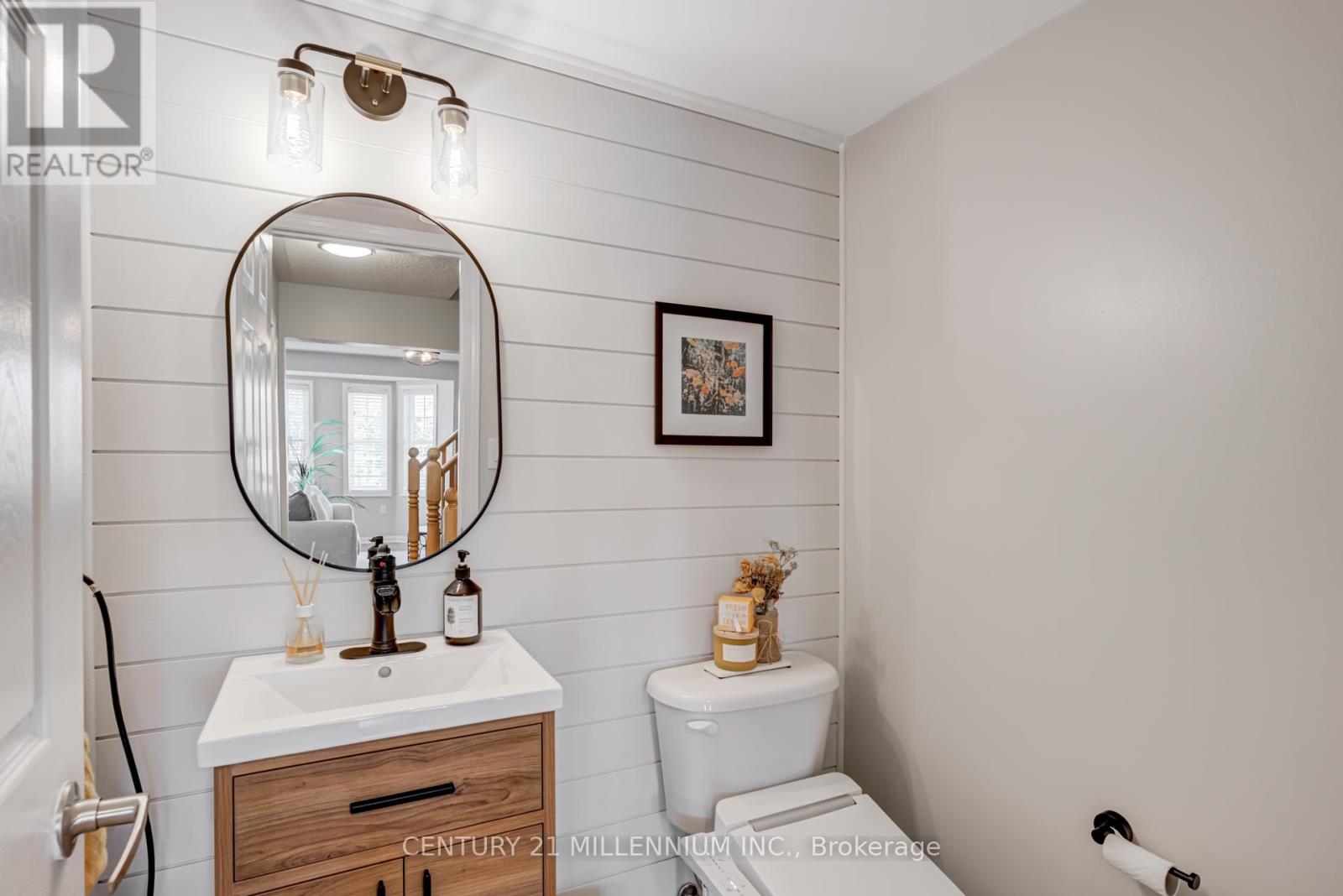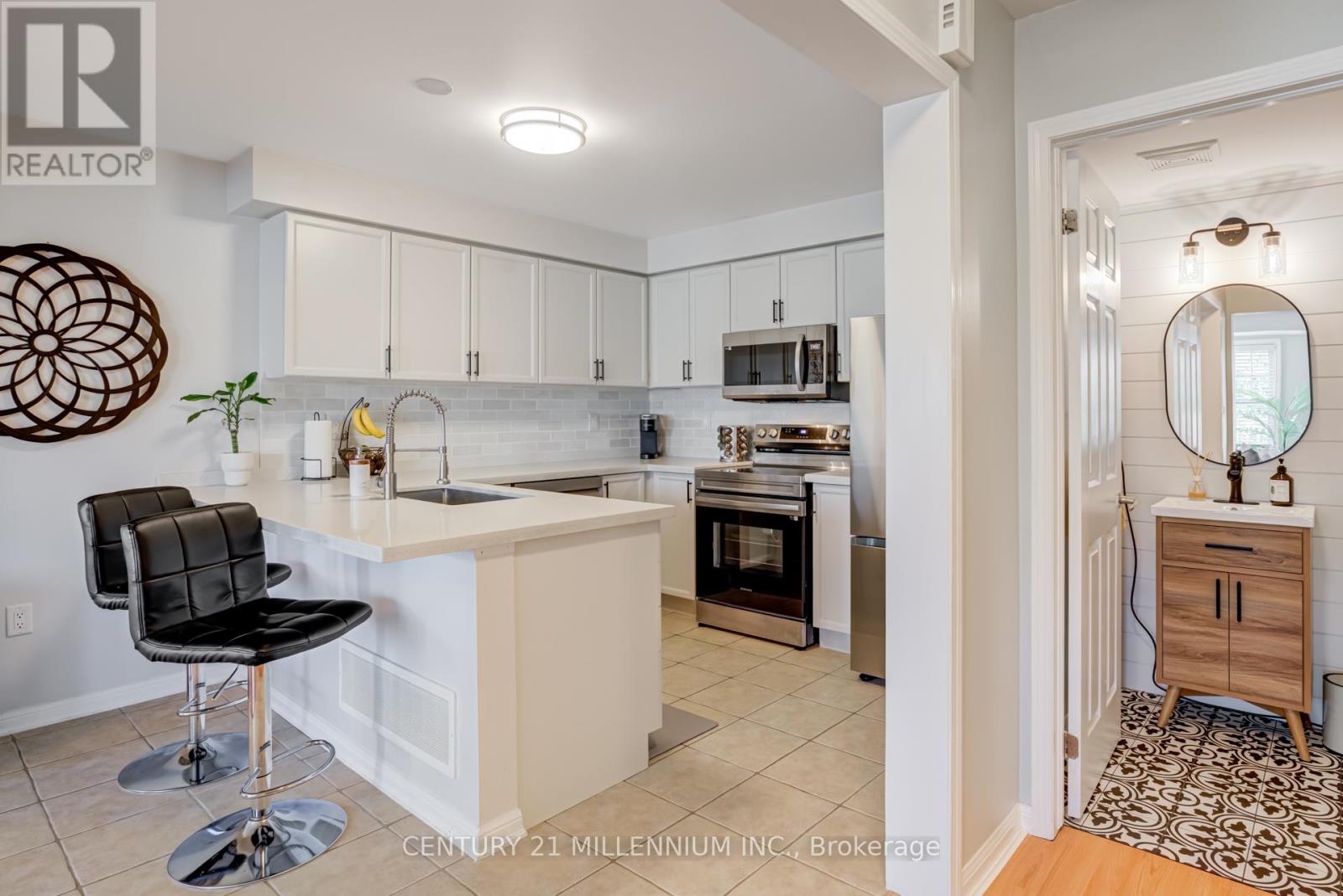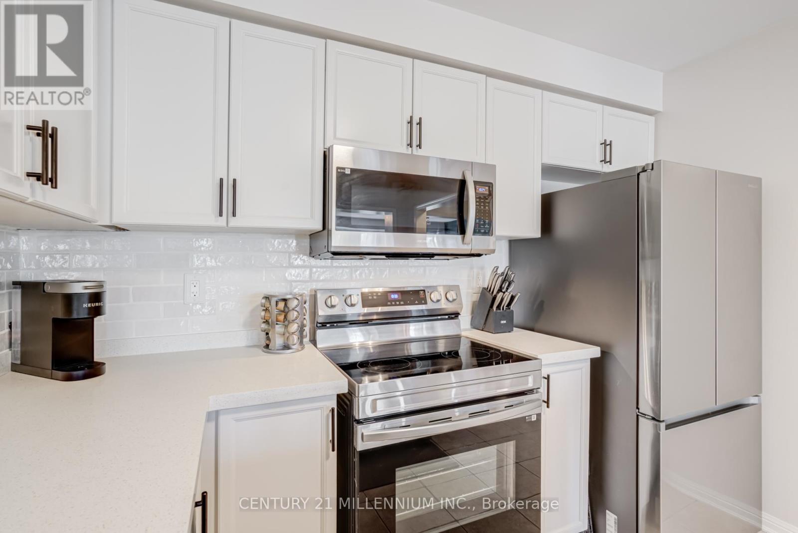 Freehold 3-story town home with all the extras! 2 Beds + den and 3 Baths: main, ensuite, and powder. The primary bedroom fits a king bed with extra space, full size walk-in closet and a 3 piece ensuite bath, 5 windows fill it with sunlight in the morning. The 2nd bedroom is sized with large closet and a charming nook. Stylish main bath has been updated and is in great condition. On the main floor you are welcomed by a full size chef's kitchen filled with upgrades; quartz counter, custom tile back splash, stainless steel appliances, industrial style faucet, oversized sink, modern finishes and an entertainers peninsula to top it all off. Open to the living and dining room, you are flooded by sunlight through the morning. The living room features a large bay window and trendy accent wall. The full size dining walks out to the oversized balcony. The balcony is near double the size of most similar models (over 17 feet long!) enough room for patio furniture, a BBQ and then some! Best of all, the balcony get expansive views of the park immediately in-front of you, no front neighbours for staring in someone's window only feet away, just beautiful greenery. (not to mention all the added street parking). Further on the main floor we have a fully renovated powder room with mosaic tile floor and ship lap feature wall. bonus main floor laundry. Entry floor boasts a full size den, utility room, added storage and interior garage access. Exterior features 3 car parking, 1oversized garage and 2 driveway parking spots, 1 is partially covered. Easy maintenance as the property is fully stone so no lawn to maintain! The full home is only 18 years old and has been loved and cared for. The neighbourhood is family oriented with great neighbours. Nearby is schools, grocery, restaurants, medical, pharmacy, shopping, parks, and more. All of the modern conveniences of a large city without all the crowding and chaos. Easy highway access, go station and public transit near by. Don't miss this! (id:51158)
