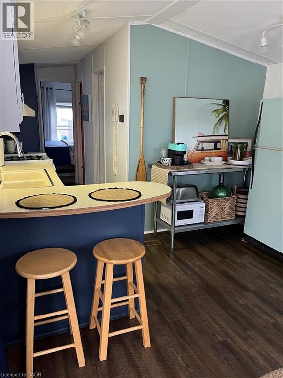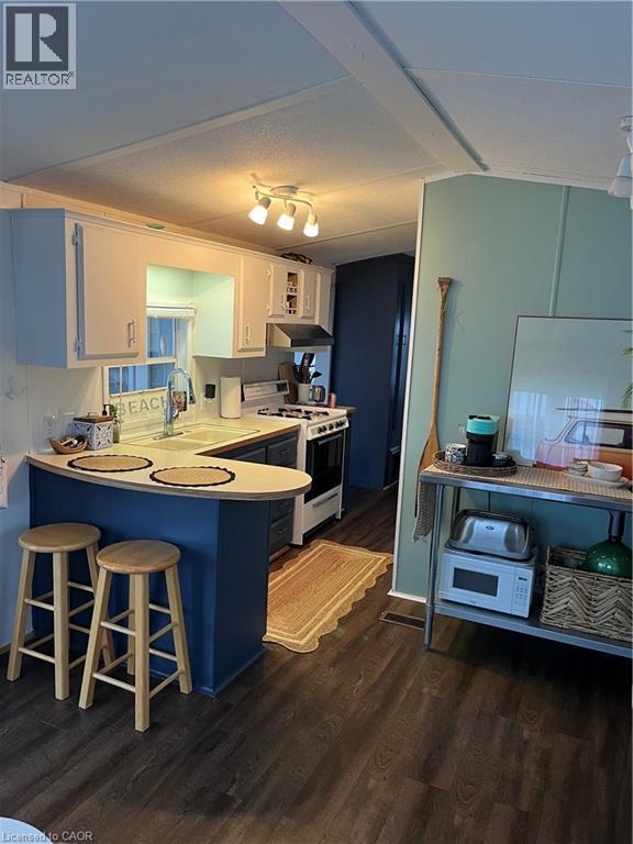 This adorable turn key vacation property is located at the MacDonald Turkey Point Marina minutes away from the beaches of Lake Erie. Amenities in the area include: local grocery store and LCBO. Cafes and Restaurants/Bars. A large park with beach volleyball courts and more. Trails, provincial parks. Wineries and Outdoor Adventures. Also driving distance to Port Dover and Port Rowan. And so much more to explore. Move in ready to start enjoying all your time in a quiet beach community. This vacation property has 2 bedrooms with lots of storage space. 1 full bath with new plumbing done in 2024. 2 new sliding doors installed in 2024. New flooring and paint throughout the whole space and updated kitchen with all appliances included. (Stove, fridge and microwave and all necessities of the kitchen. Pots and pans. Dishes and silverware. Pantry off of kitchen. Side deck and front porch. Bonus sunroom to accommodate what the space needs to be. Tv included as well in sunroom. Also the marina is pet friendly. Outdoor includes: Two sheds and full size outdoor fridge. Gazebo and outdoor furniture. Grass space and front yard with a paved driveway for two large cars. (id:51158)