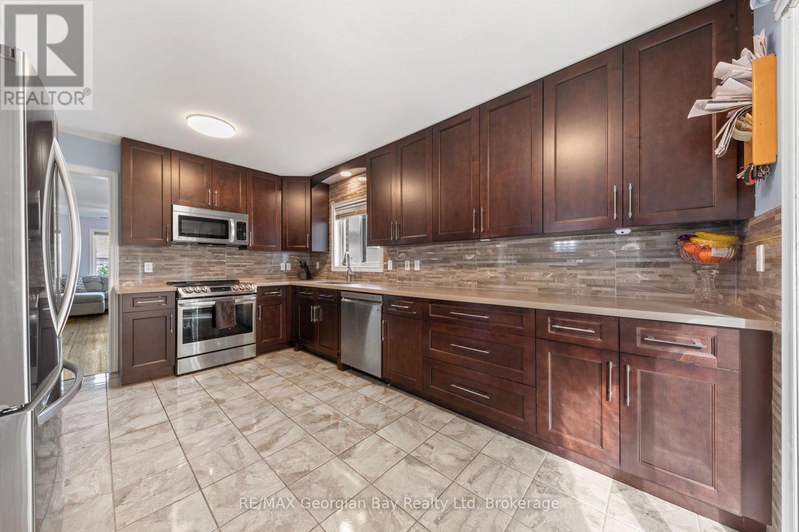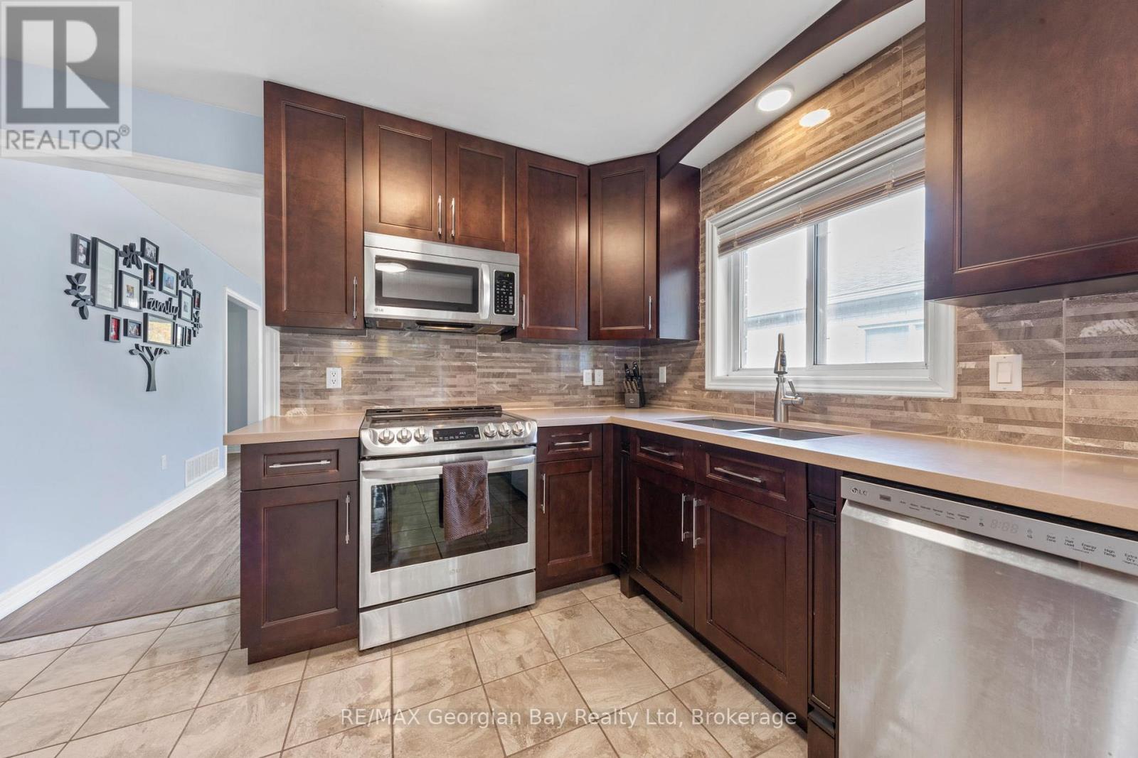 Welcome to the perfect family home, where space, style, and comfort come together! Located in Midlands sought-after west end, this beautifully maintained home offers everything your family needs to live, entertain, and relax. The heart of the home is the newer, large kitchen, complete with sleek quartz countertops and plenty of space for meal prep and casual dining. The open-concept living and dining area is perfect for gatherings next to the gas fireplace, while the oversized rec room downstairs provides the ultimate space for entertaining family and friends. With 2 bedrooms upstairs, including a spacious primary bedroom with a private ensuite, and 2 additional bedrooms downstairs, there's room for everyone. Three full bathrooms ensure convenience for the whole family. Additional features include gas heat, central air, HRV, fenced-in yard and a 2-car garage with a paved driveway for easy living. Nestled in a prime location, you're just a short walk from beautiful Georgian Bay and all the amenities the west end has to offer. This home is truly a place where memories will be made don't - wait to make it yours! (id:51158)