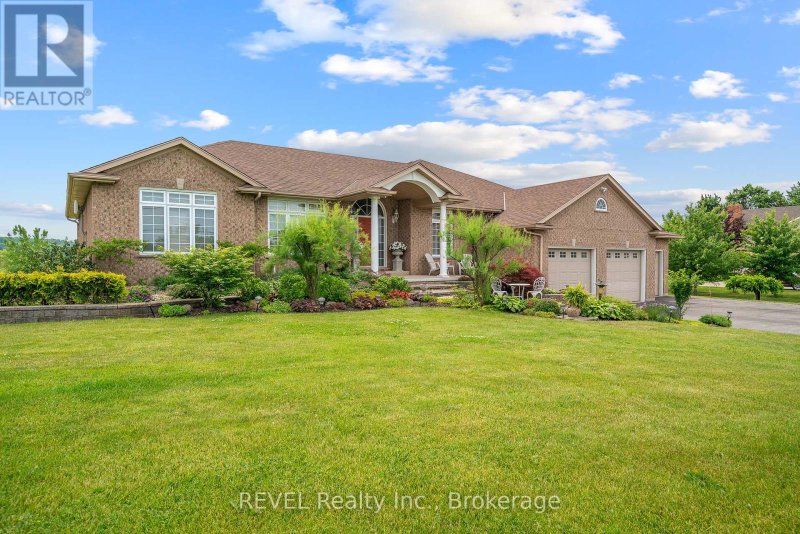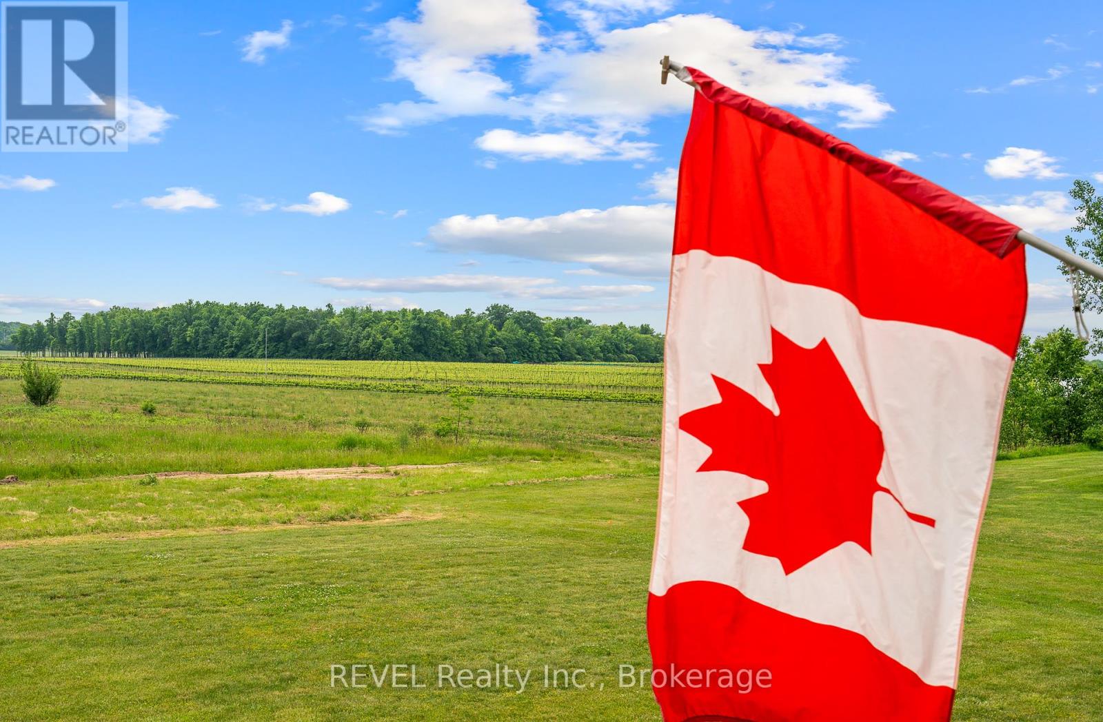 Welcome to wine country living in picturesque Niagara-on-the-Lake. This stunning custom raised bungalow offers 4,334 square feet total living space, 4 bedrooms, 3 full bathrooms. Both main floor bathrooms were completely renovated (2025). Boasting over an acre of land with the most captivating vineyard and escarpment views you will enjoy morning coffee with sounds of singing birds and sights of wildlife and enjoy the sunsets and panoramic vineyard views from your covered porch. You will want for nothing with city water, natural gas and convenient access to Niagara Falls, St. Catharines, QEW, and USA border just minutes away. Country living with city conveniences. Friends and family will love visiting you and experiencing a taste of wine country living. Surprise your guests by walking through your backyard to the serene winery at Queenston Mile Vineyard only steps away where you can enjoy wine tastings and more. This home offers 3 main floor bedrooms including 2 main floor primary suites at opposite wings of the home for additional privacy. The finished basement is self-contained with walk-up to 3 car garage and separate entrance. Boasting a kitchen, bedroom, full bath. The massive open space in basement could serve well as a home business for workshops or fitness classes. Contact the municipality for more information on permitted home businesses. Basement has large storage room and cold cellar with hydro. There is also a 16x21 storage shed with hydro on the property. There is well over 100 feet of frontage for potential future development such as a detached garage or dwelling (offical plan update would be required for secondary dwelling, currently not as of right). This home could accommodate 3 generations of family living if desired. Many updates have been made to the home such as a new A/C /heat pump, gas furnace (Dec 2023). Enjoy all that Niagara region has to offer including award wining wineries, breweries, and top rated culinary adventures. (id:51158)
